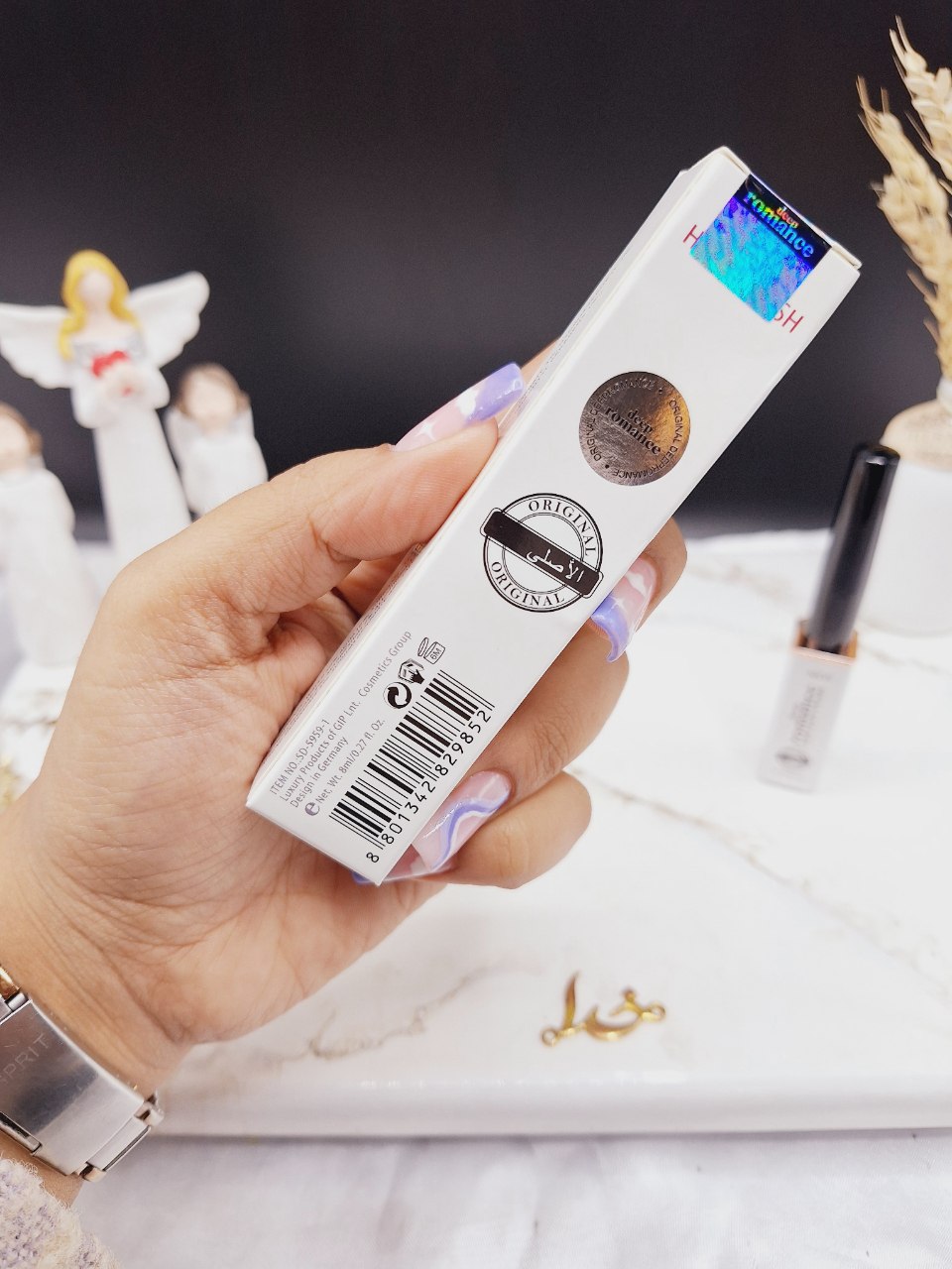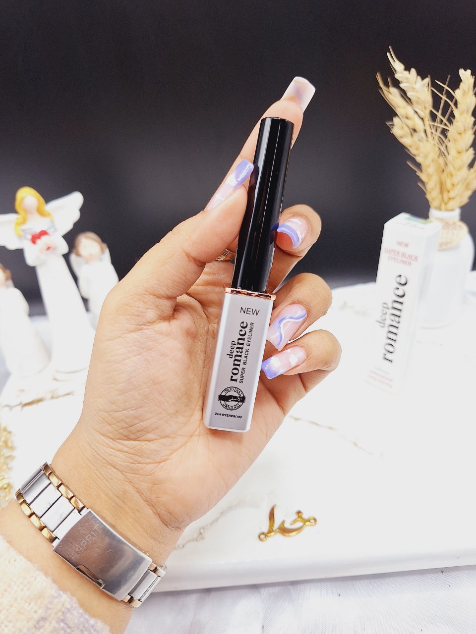 خط چشم مویی رومانس اصلی romance کد SD_5959، از نوع مویی می باشد که به راحتی می توان با استفاده از آن خطوط ظریف و دقیق را طراحی کرد.این محصول با رنگ دانه های غنی فوق مشکی، به سرعت خشک می شود و خط چشمی کاملاً پیوسته و بدون لک بر روی پلک ایجاد می کند. خط چشم مویی رومانس اصلی romance کد SD_5959 در مقابل تعریق بدن و آب مقاوم بوده و ماندگاری طولانی دارد.قلم نرم و نازک خط چشم دیپ رومانس با پخش متناسب مایع مشکی آن، چشمانتان را آنطور که می خواهید شکل می دهد. این محصول با فرمولاسیون قوی و شدت رنگ بالایی که دارد به راحتی خطی بسیار مشکی روی پلکتان ایجاد می کند که به سرعت خشک می شود و ٢٤ ساعت ماندگاری دارد.