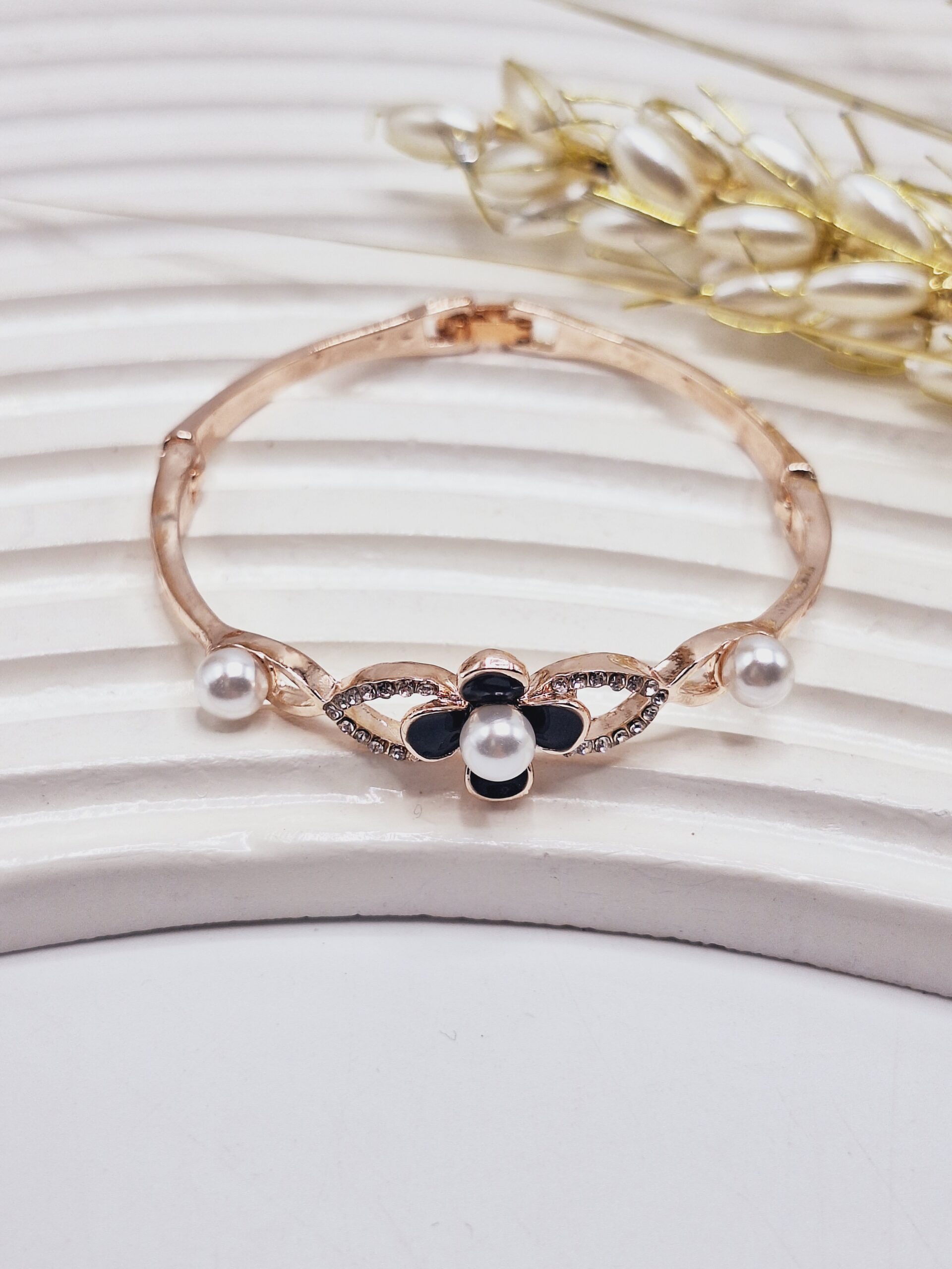 اگه دنبال یه دستبند شیک، دخترانه و ظریف هستی، دستبند گل مرواریدی طلایی دقیقاً همون انتخابیه که استایل تو رو جذاب و رومانتیک میکنه ✨🌸💛💎