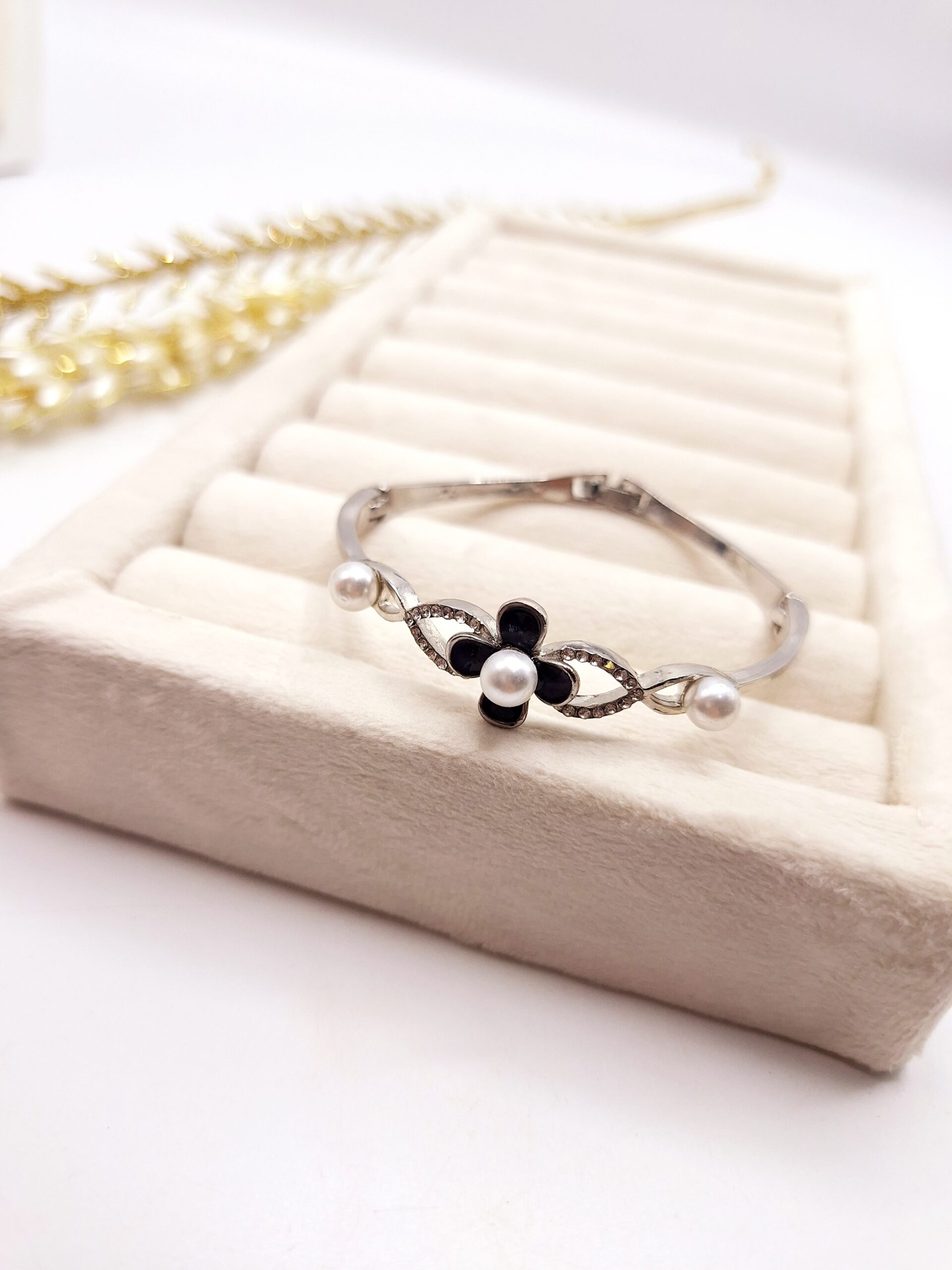 دستبند دخترانه گل مرواریدی نقره ای