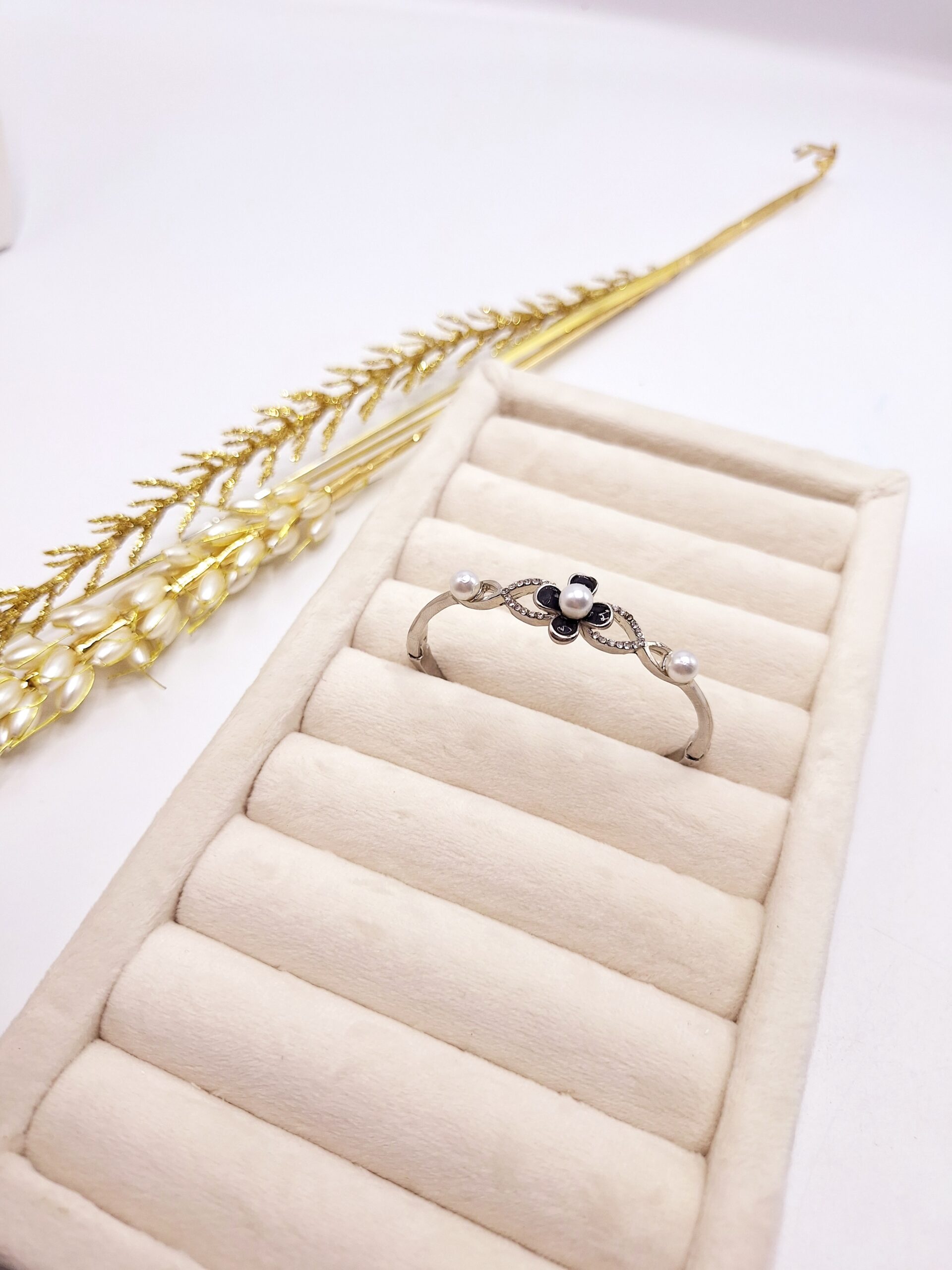 ناموجود دستبند دخترانه گل مرواریدی نقره ای