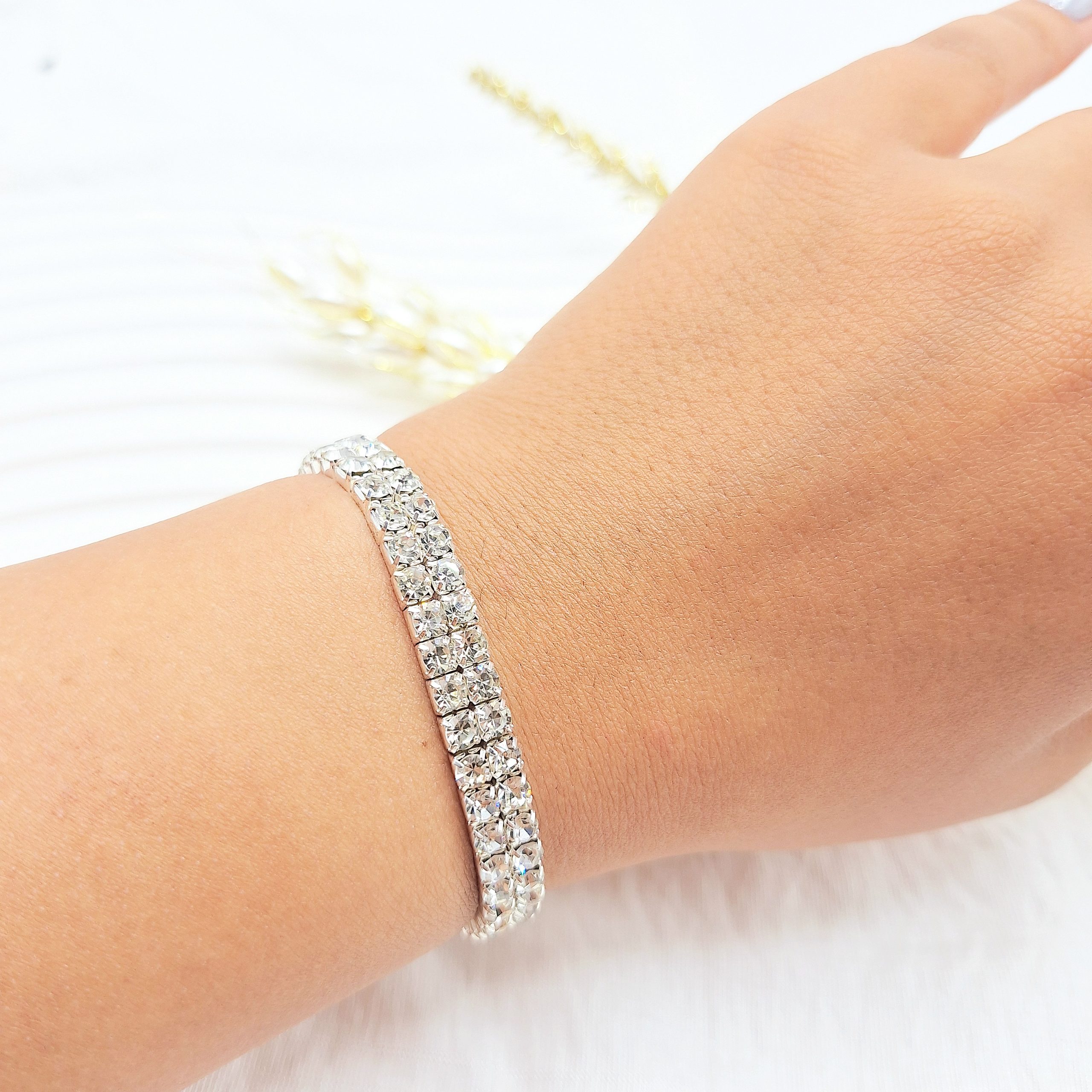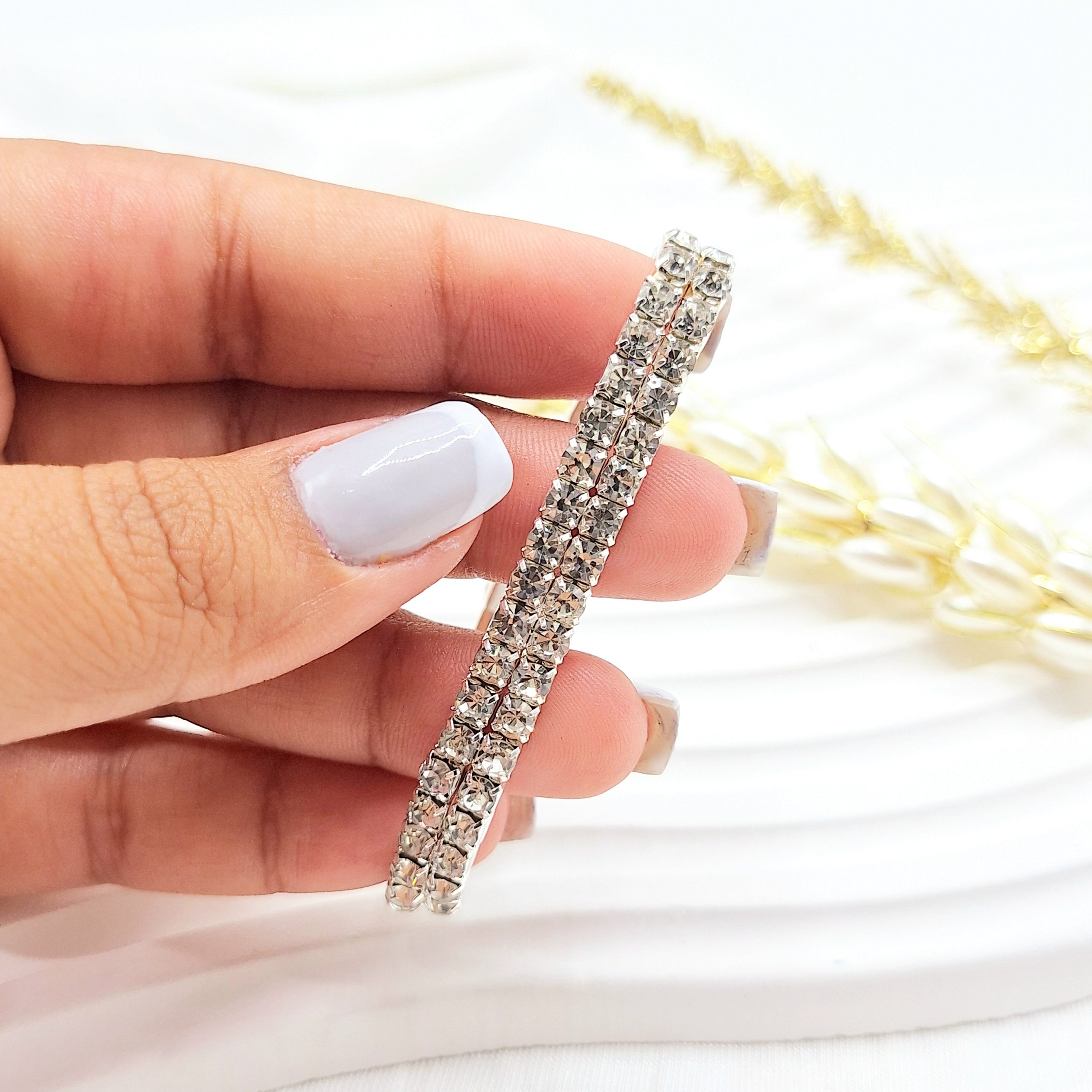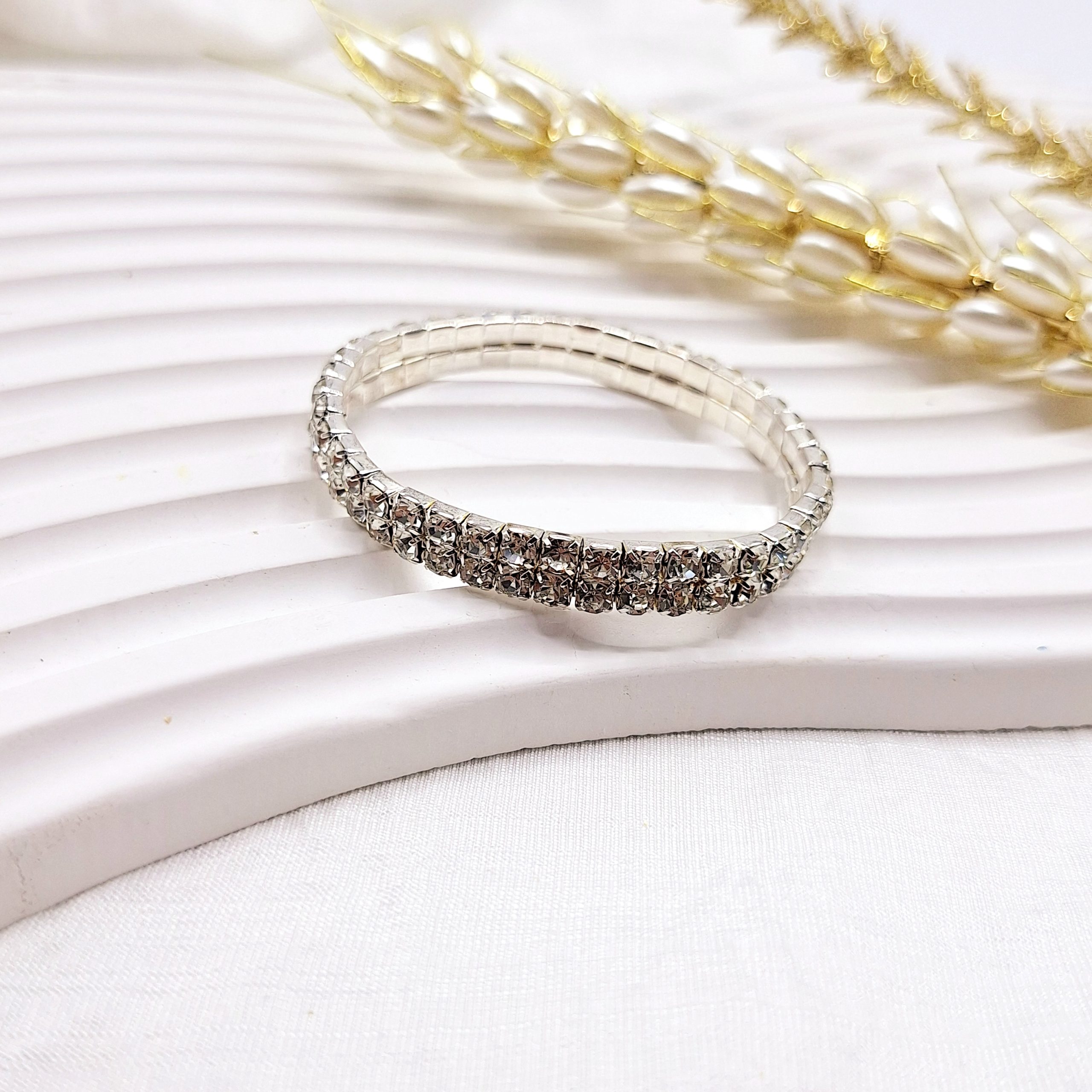 📿 نوع محصول: دستبند زنانه 💎 طراحی: دو ردیف جواهری درخشان 🪢 نوع بسته‌شدن: کشی و قابل انعطاف ✨ جلوه: شیک و لاکچری 🛡 ضدحساسیت و سبک 🎁 مناسب استفاده روزانه و رسمی 📦 بسته‌بندی: شکیل و مناسب هدیه 🆔 مدل: دو ردیف کشی جواهری