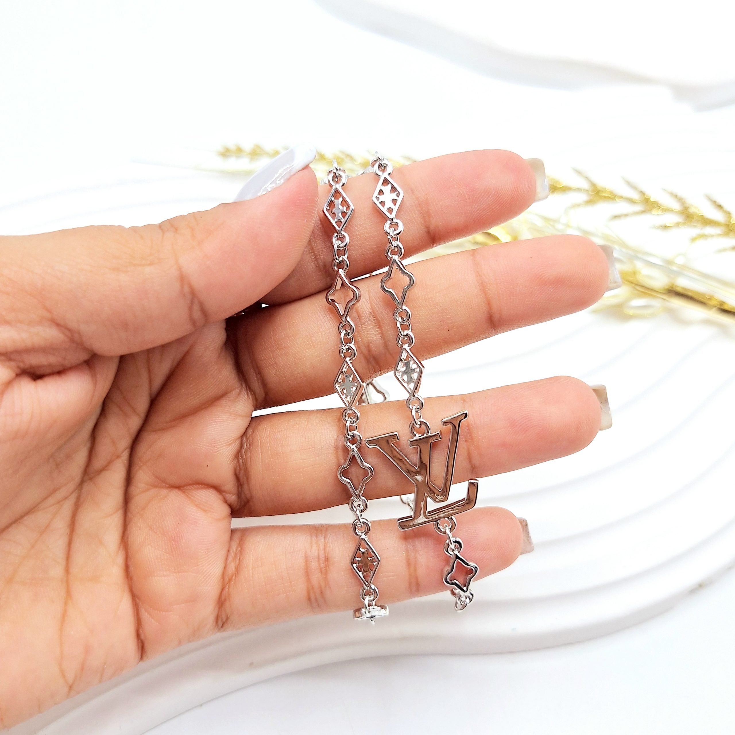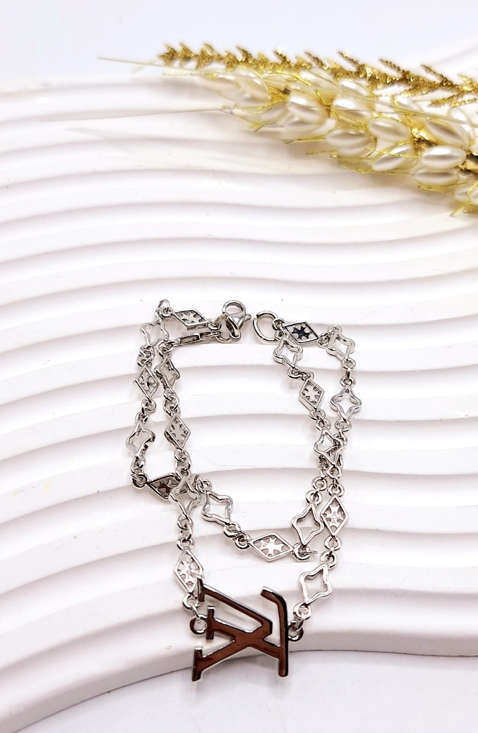 دستبند دو لاین حروف لویی ویتون نقره ای رنگ ثابت استیل