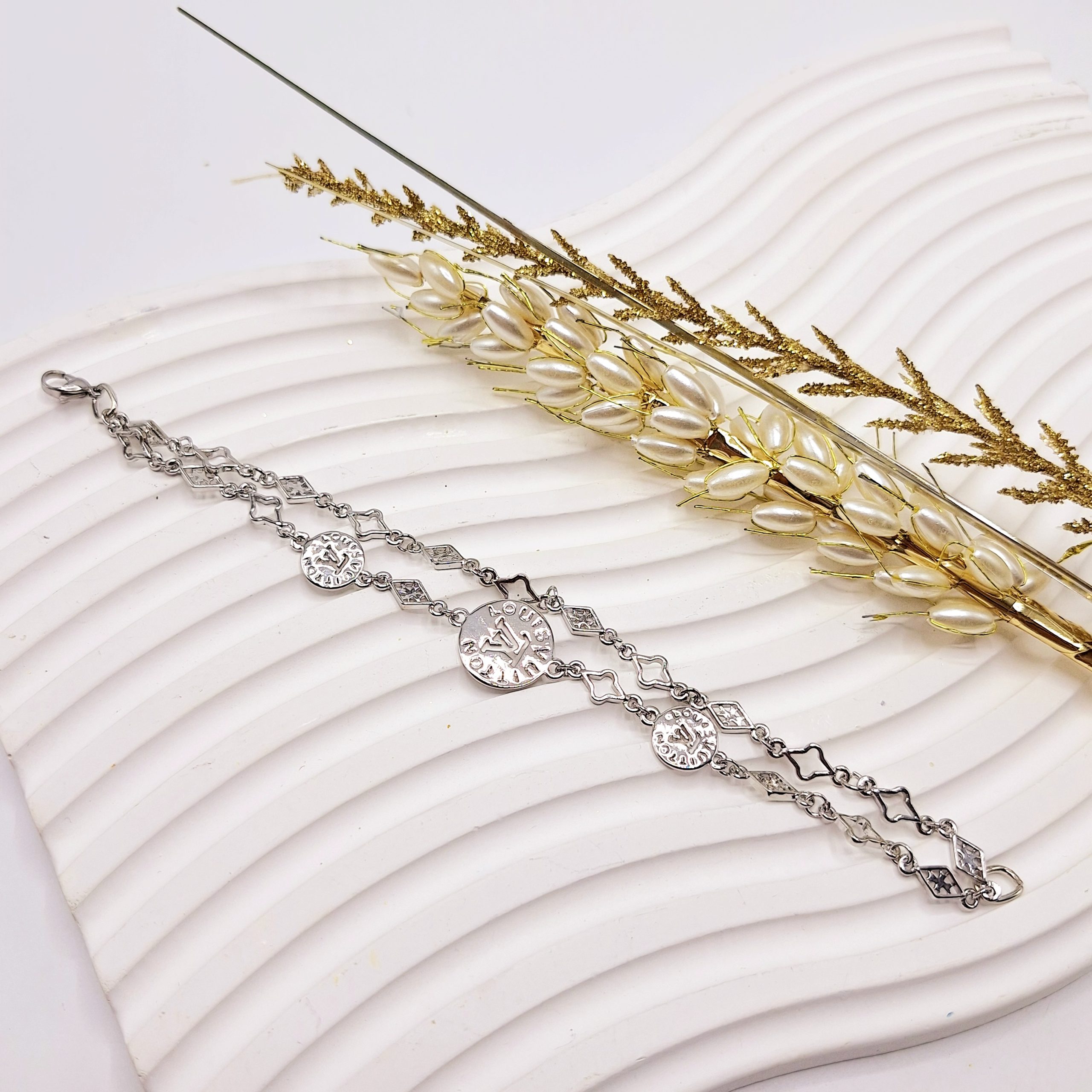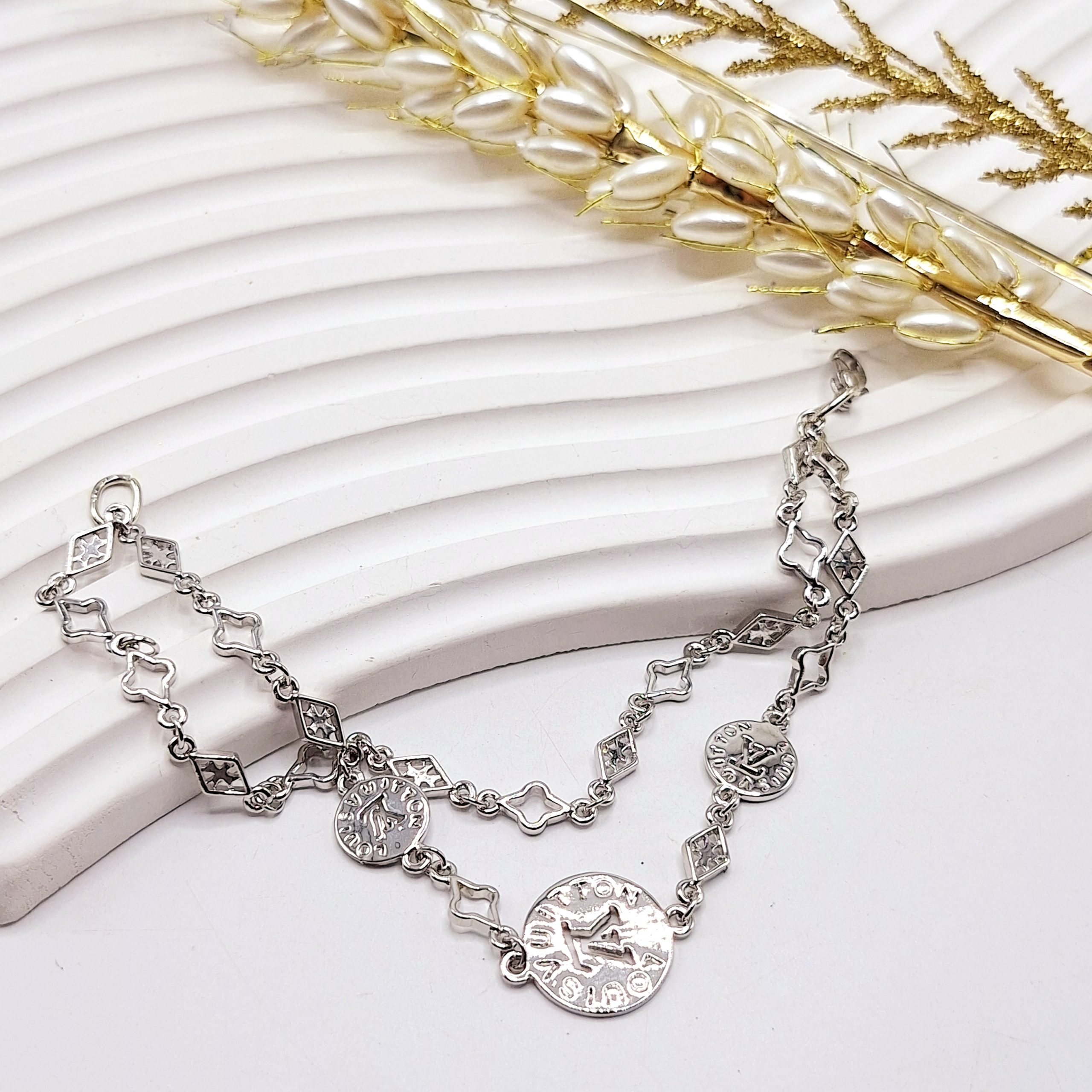 🆔 مدل: دستبند دو لاین سکهای لویی ویتون نقرهای
