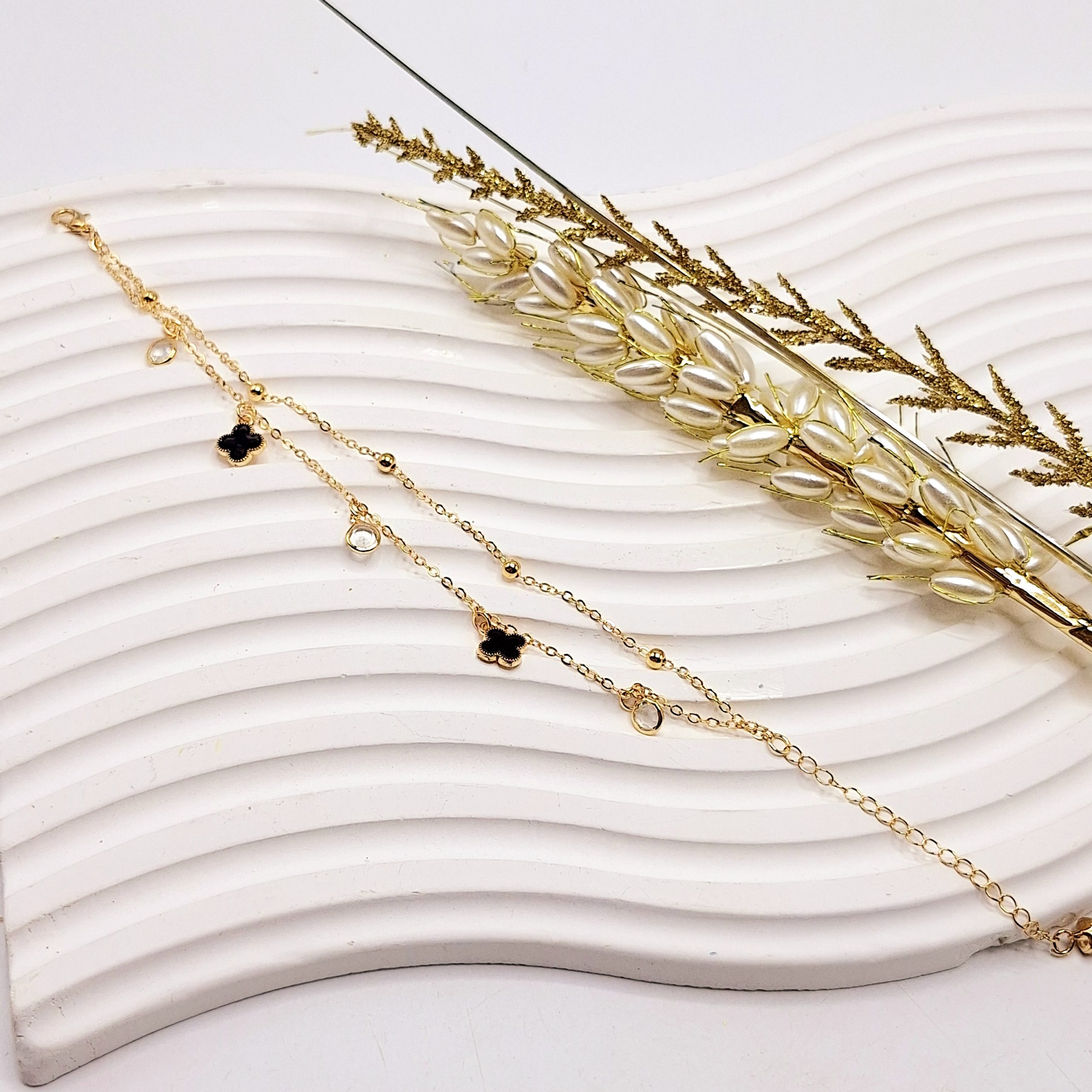 📿 نوع محصول: دستبند زنانه 🖤 طرح: دو لاین با آویز ونکلیف مشکی ⚪ رنگ بدنه: طلایی براق 🛡 جنس: آلیاژ ضدزنگ و ضدحساسیت 💧 مقاوم در برابر تغییر رنگ و رطوبت ✨ جلوه: ظریف و لاکچری 🎁 مناسب استفاده روزانه و رسمی 📦 بسته‌بندی: شکیل و مناسب هدیه 🆔 مدل: دو لاین ونکلیف مشکی | طلایی براق