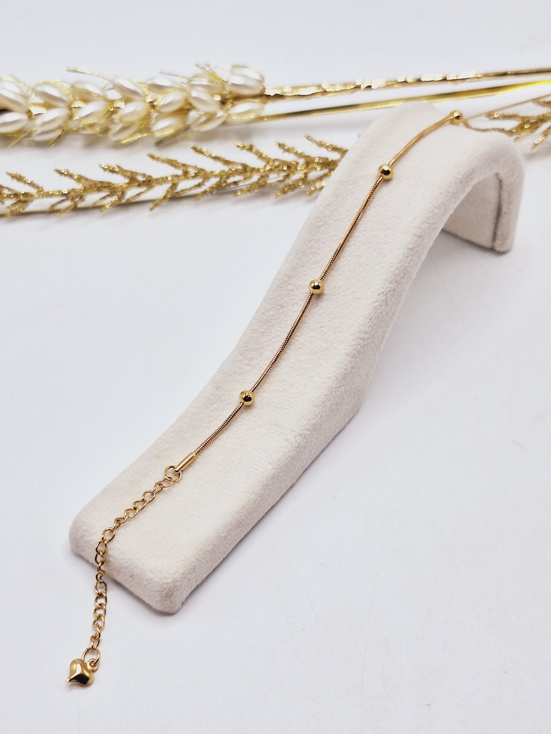 💖 دستبند زنجیری توپی طلایی – الهام گرفته از ✨ درخشش و ظرافت گوی‌های کوچک 🌸 طراحی شیک و دخترونه برای خانم‌هایی که عاشق استایل جذاب و مینیمال هستند 💎 فلز طلایی ضد حساسیت با جلوه لوکس و بادوام 💫 سبک و راحت، مناسب استفاده روزمره و هدیه دادن 🛍 مناسب همه کسانی که عاشق جزئیات دوست‌داشتنی و ظریف هستند 🎀 رطوبت حمام و الکل زیبایی اکسسوری رو از بین میبره ❗️