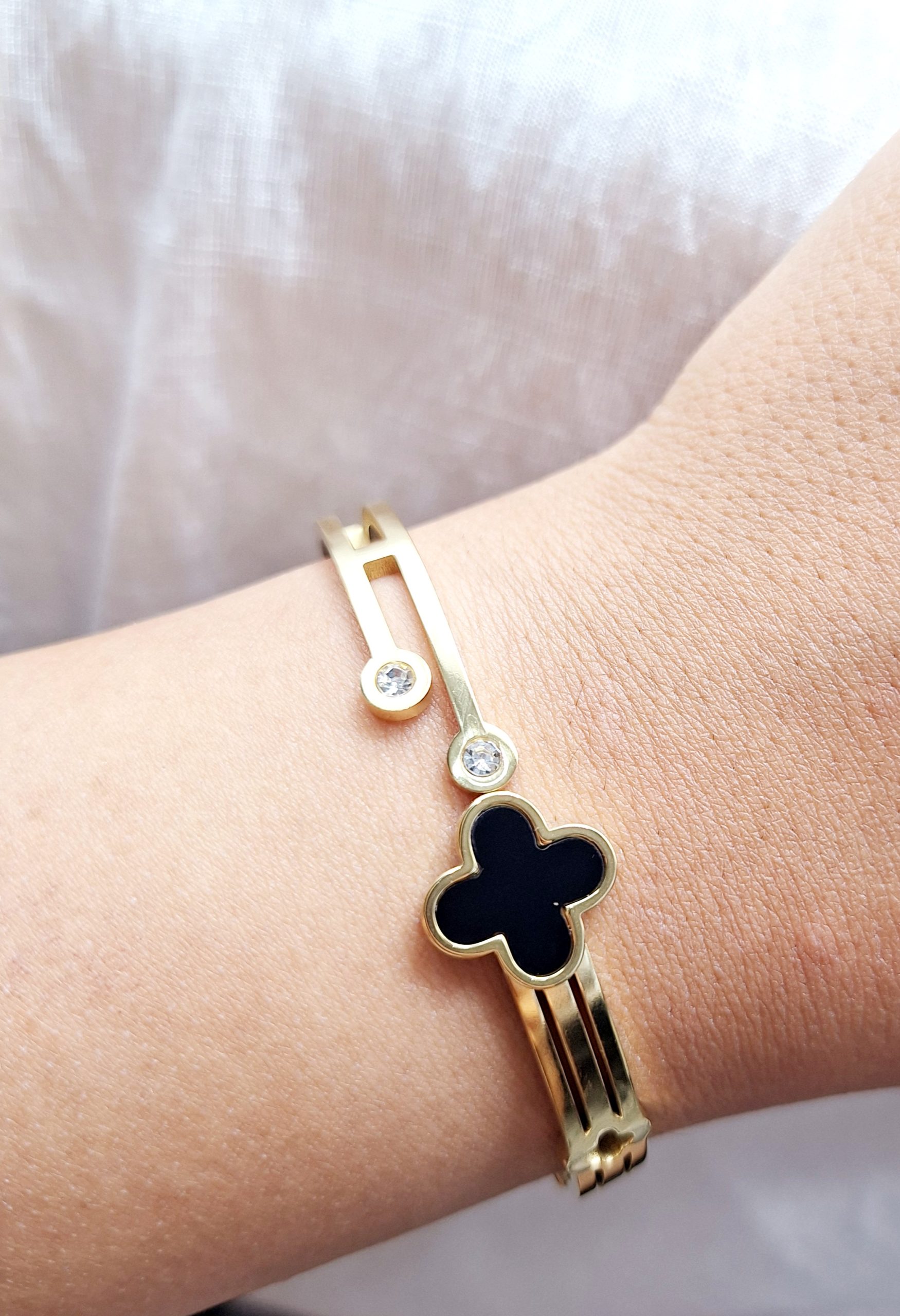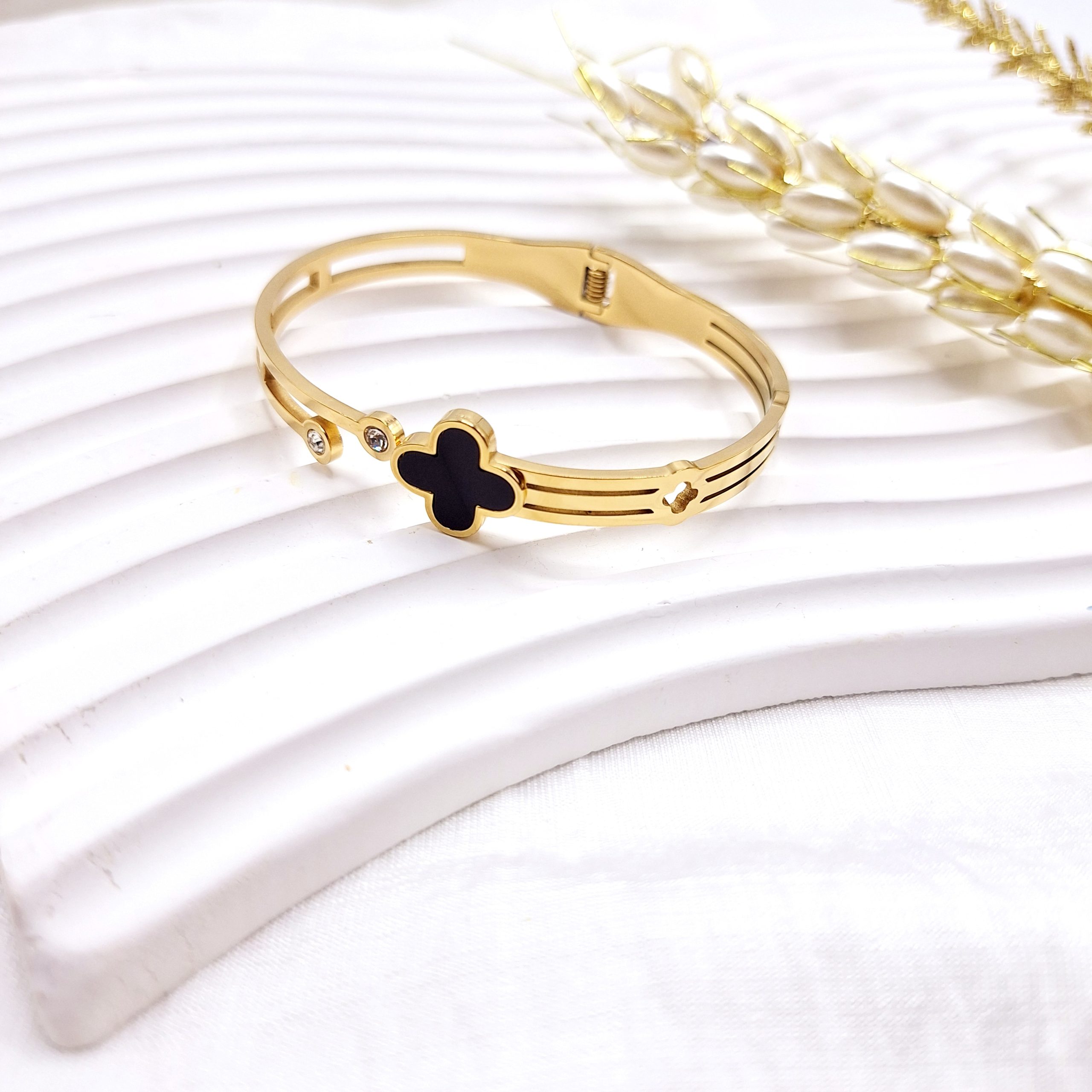 - ۱ عدد دستبند طلایی شاخهای طرح ونکلیف مشکی