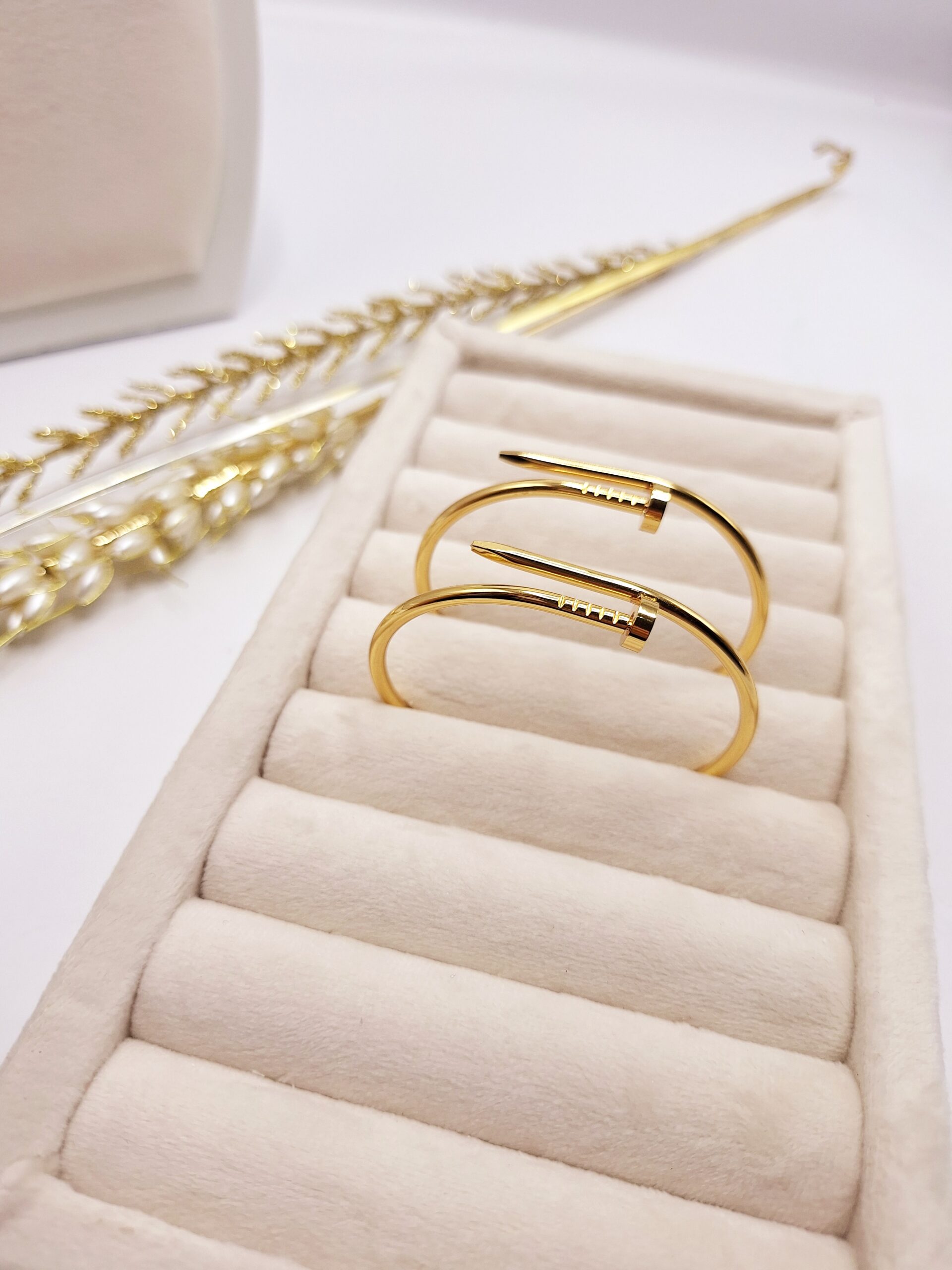 دستبند پرطرفدار میخی ✨ یکی از اون اکسسوریهای لاکچری و جذابه که هر دختری رو یاد استایلهای خاص و مد روز میندازه 😍🖤 طراحی این دستبند الهام گرفته از جسارت و قدرت زنونهست و برای خانمهایی ساخته شده که عاشق متفاوت بودن هستن.