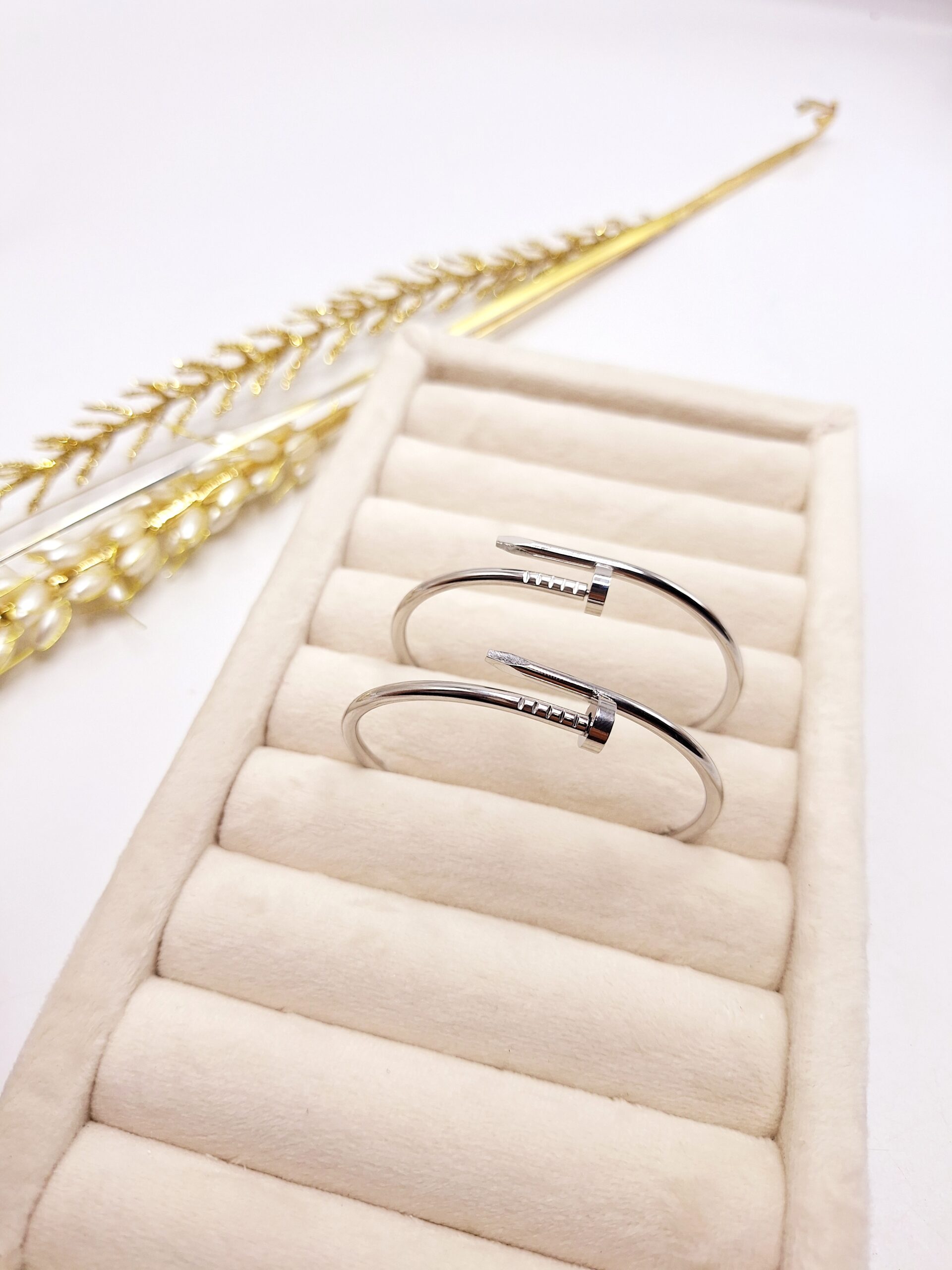 دستبند پرطرفدار میخی 😍✨ یه اکسسوری خاص و خفن که همیشه توی ترند بوده و برای دخترها و خانم‌های استایل‌دوست یه انتخاب بی‌نظیره 🥺💖 الهام گرفته از طراحی جسورانه و مدرن، پر از حس قدرت و خاص بودن. - 🌟 طراحی: میخی شیک و پینترستی - 🎨 رنگ: نقره ای - ✨ سبک: لاکچری و مدرن - 🎁 مناسب هدیه و استفاده روزمره - ⚠️ نیاز به مراقبت دارد (از تماس با مواد شوینده و مایع ظرفشویی جلوگیری شود)