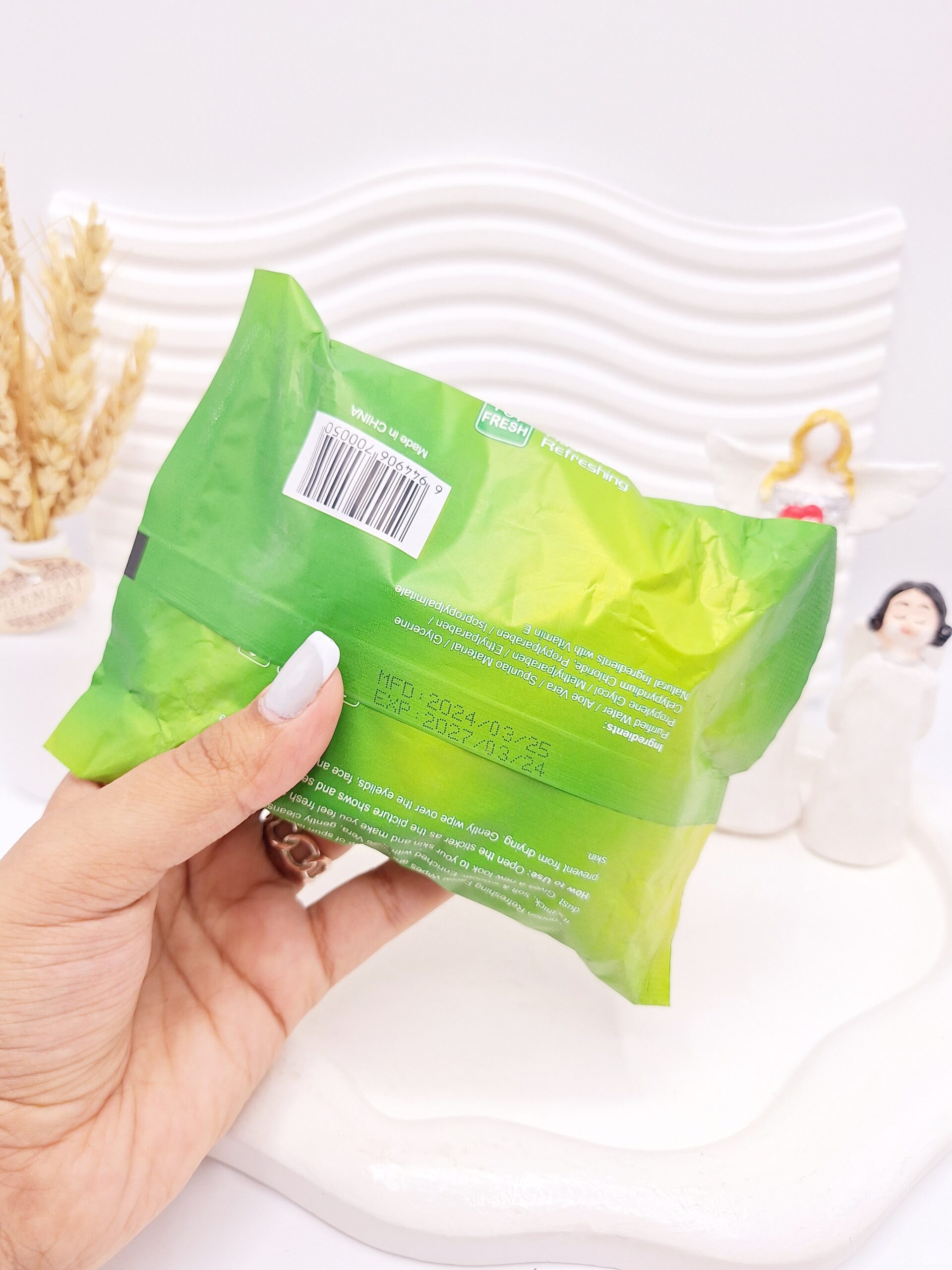 2. نحوه استفاده: دستمال را به آرامی روی پوست خود بکشید تا آلودگی‌ها و چربی‌های اضافی پاک شوند.