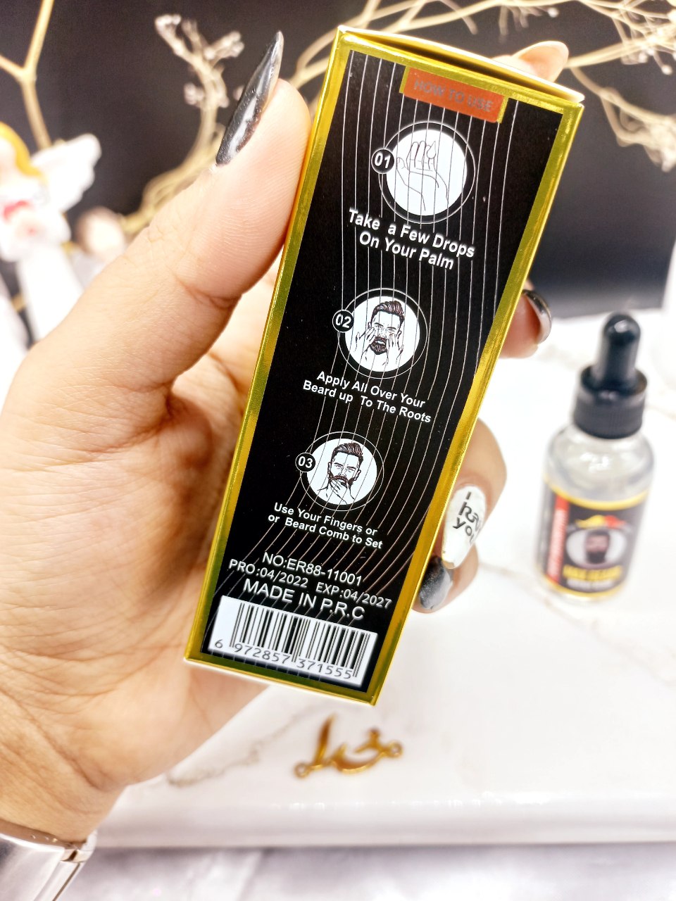 روغن تقویت ریش و سبیل علاوه بر کمک به رویش در قسمت هایی که دچار کم مویی هست در خوش حالت تر شدن نیز موثر است. روش مصرف : قبل از مصرف صورت رو با محلول شستشو و آب ولرم شستشو دهید و با حوله نخی خشک کنید و بعد مقداری از روغن رو به ریشه و ساقه ریش خود بزنید بعد از 2 تا 3 ساعت با محلول شستشو و آب ولرم شستشو دهید.