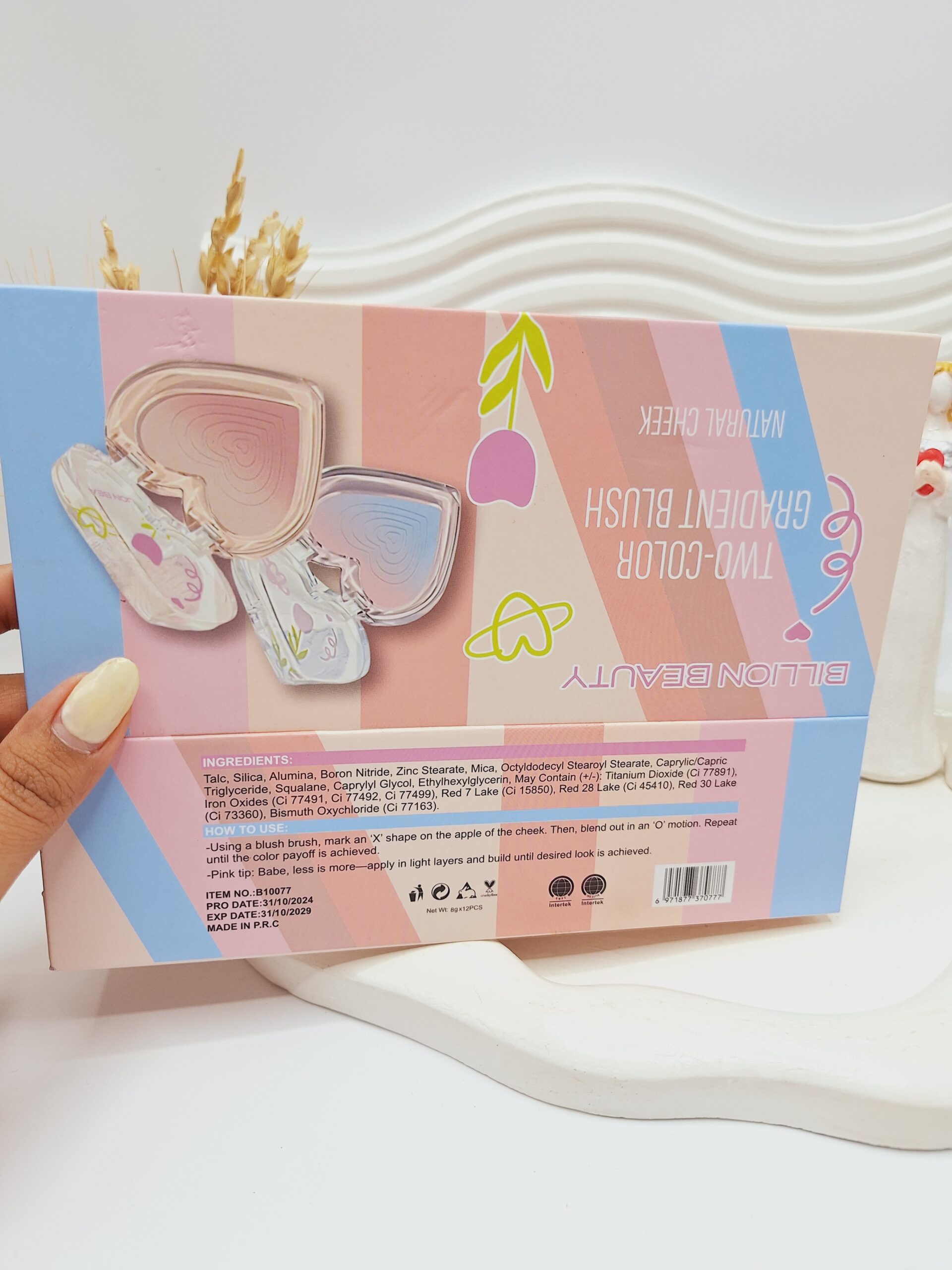 رژگونه دو رنگ طرح قلبی برند BILLION BEAUTY کد 1777 یک محصول فوقالعاده زیبا و کاربردی است که علاوه بر طراحی خاص قلبی، کیفیتی عالی برای آرایش روزانه و حرفهای ارائه میدهد. این رژگونه با ترکیب دو رنگ هماهنگ، جلوهای طبیعی و جذاب به چهره بخشیده و گونهها را شادابتر و برجستهتر نشان میدهد.
