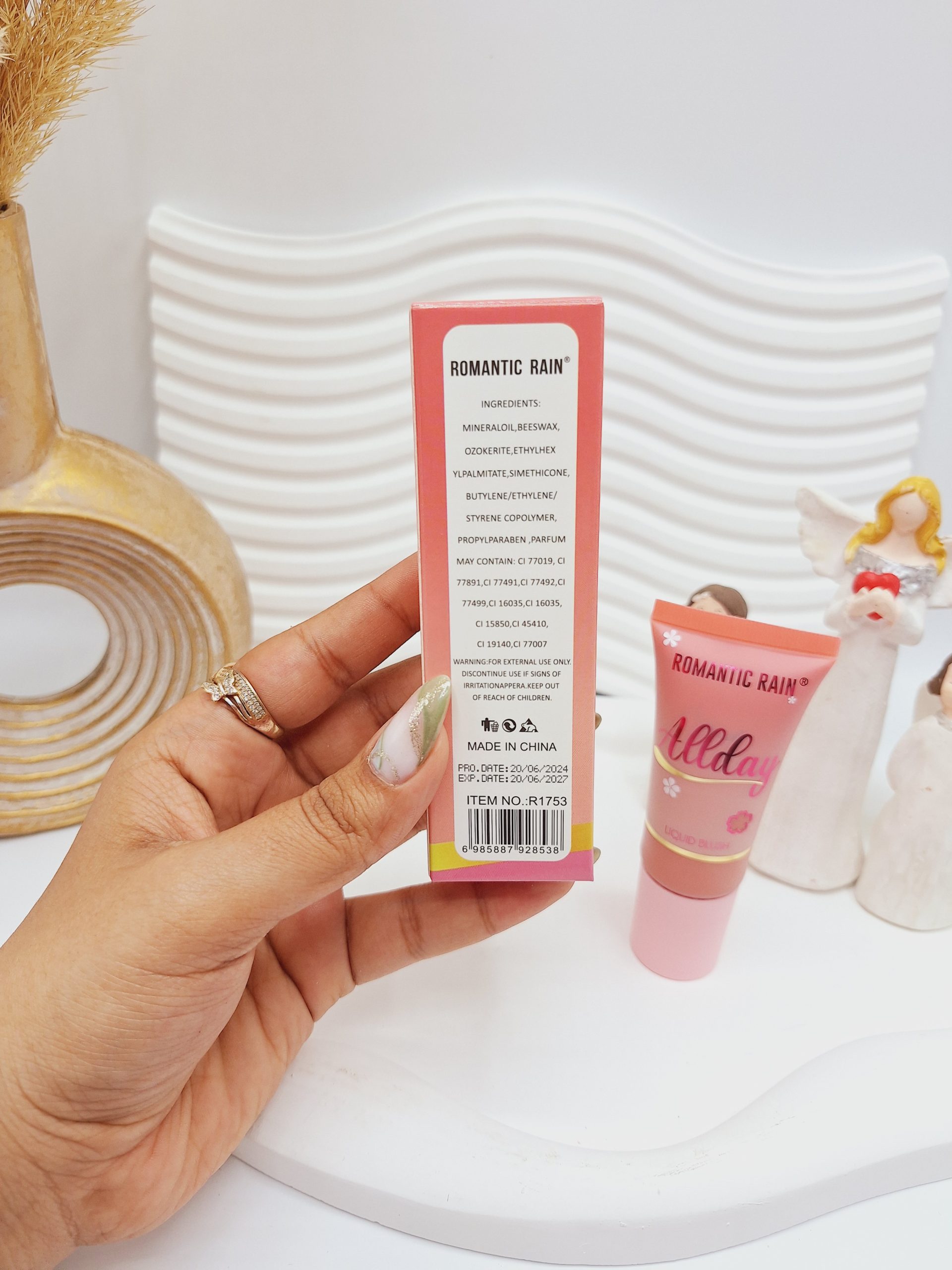 رژگونه مایع پرطرفدار پد دار تیوپی اورجینال برند Romantic rain کد 1753