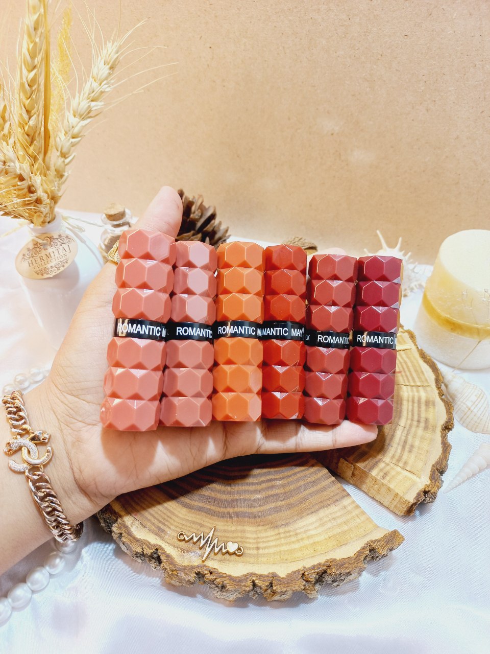 رمانتیک می برندی باکیفیت و ارزان قیمت است. رژلب رمانتیک می یک رژ لب با بافت ویژه‌ و نرم است که با روغن‌ها غنی شده است تا لب‌های شما را صاف کند و فینیش رنگی درخشان و رنگارنگی را ارائه دهد. پیگمنت این رژلب غنی است و رنگ های بسیار جذاب و متنوعی دارد. رنگ بندی این رژلب به قدری زیبا است که انتخاب را برای شما سخت می‌کند!