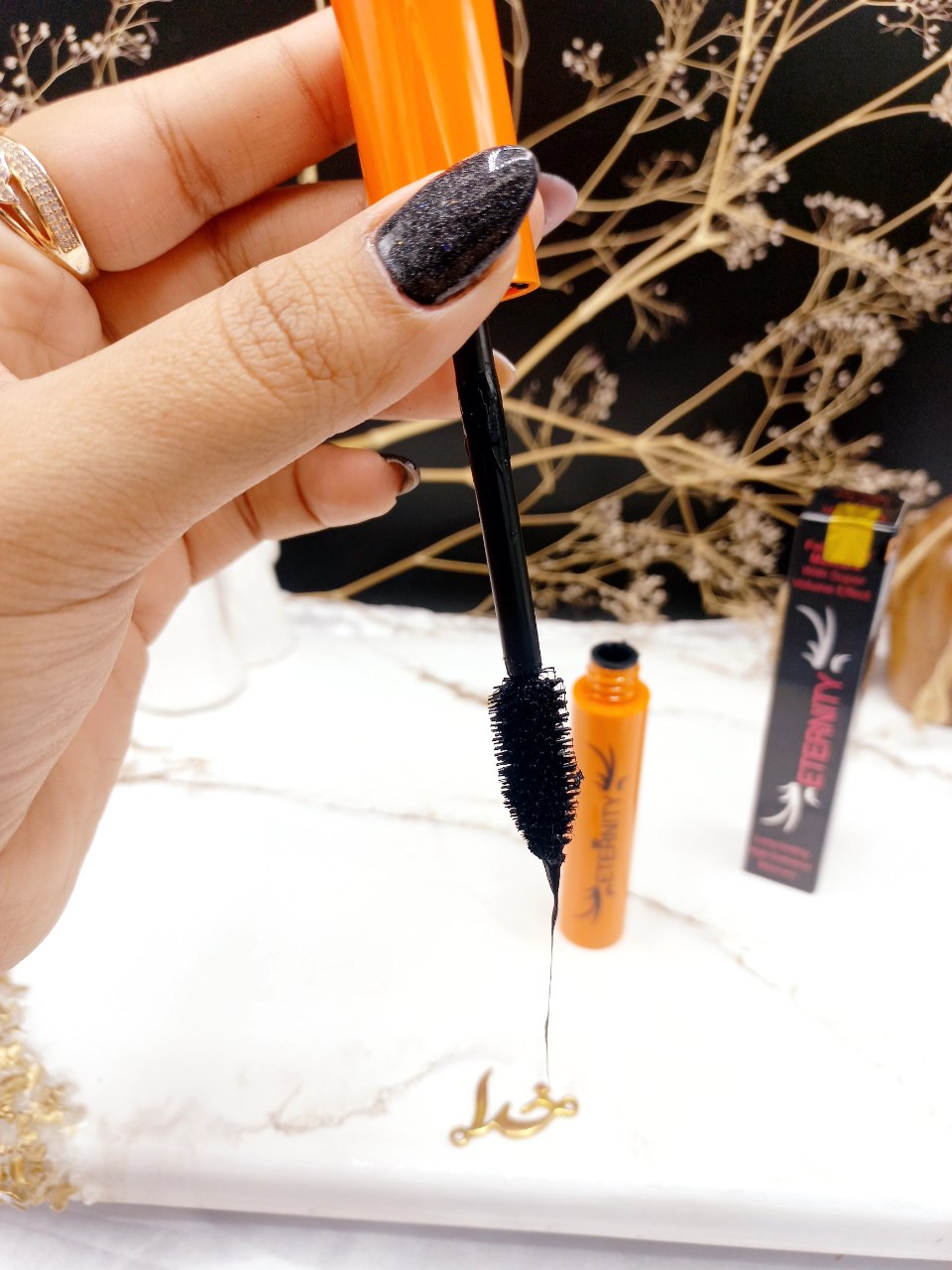 ریمل حجم دهنده رویال اترنیتی نارنجی ETERNITY به هیچ عنوان زیر چشم هایتان نمی ریزد و آرایش شما را سیاه نمی کند. پس می توان گفت این ریمل ماندگاری بسیار بالایی دارد و شما برای آرایش روزانه و یا حتی آرایش های مجلسی و خاص هم می توانید از آن استفاده کنید. یکی دیگر از ویژگی های خوب اترنتی نچسباندن مژه ها در حین آرایش است و دلیل آن داشتن فرچه بزرگ و پر می باشد که همهٔ موها را پوشش می دهند و آنها را دانه دانه بلند و پر رنگ می کنند. به همین خاطر مژه هایتان حالت طبیعی تر و زیباتری خواهند داشت. ریمل رویال اترنتی از موم طبیعی و الیاف ابریشمی باکیفیت درست شده است. به همین خاطر به مژه هایتان آسیبی نمی رساند و شما به راحتی می توانید با محلول های آرایش پاک کن آن را از روی مژه هایتان پاک کنید.