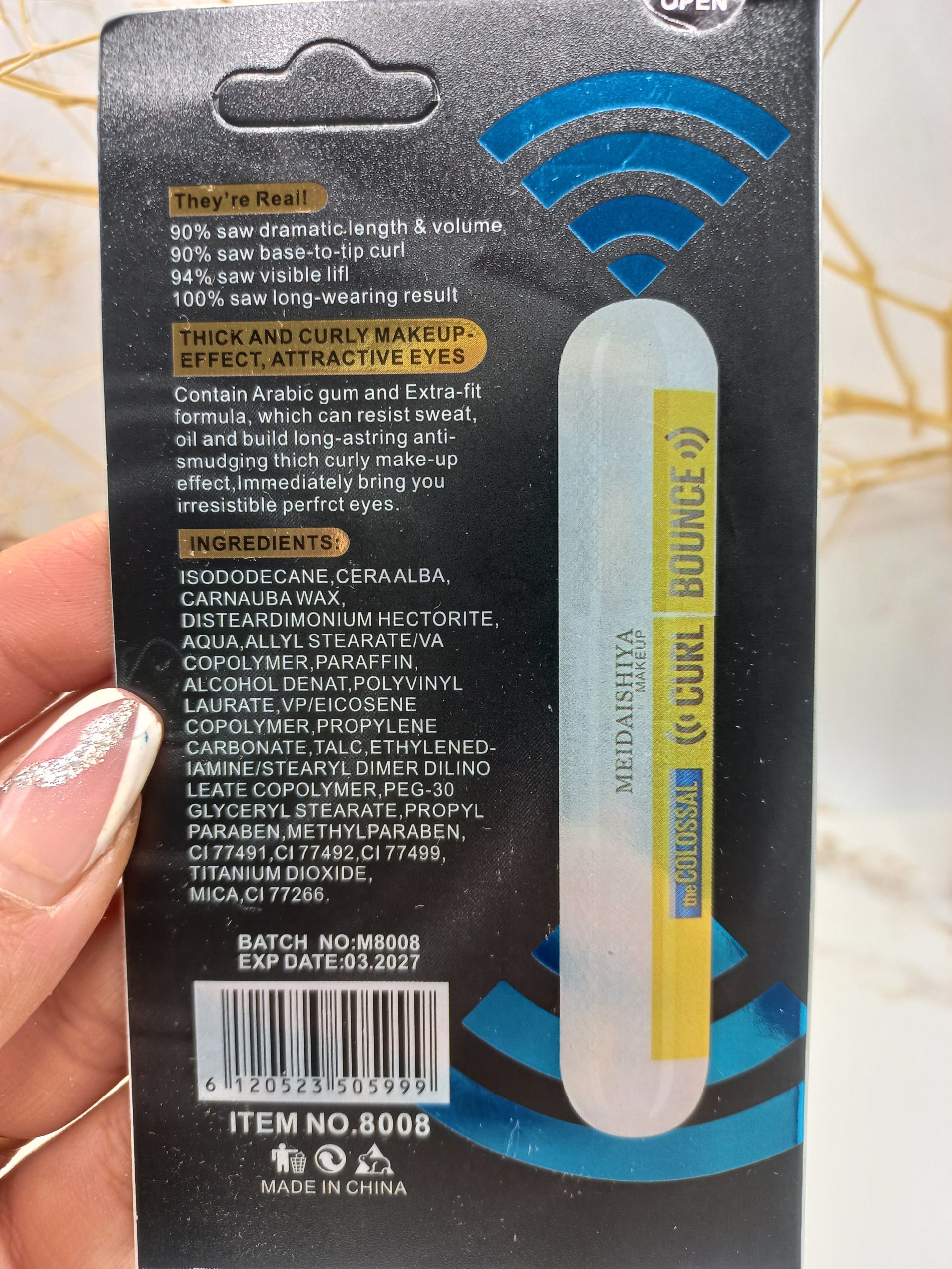 ریمل ضد آب برند کرل بونس CURL BOUNCE کد M8008 بخوبی مژه ها را حالت داده و برای کسانی که مژه فر دوست دارند، انتخابی عالی است. این ریمل بدون ایجاد لک و گلوله شدن، مژهها را از هم جدا میکند و رنگدانه فوق مشکی آن زیبایی خاصی به چشمان شما میدهد.