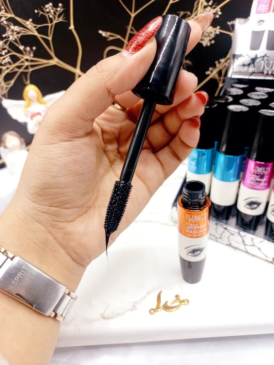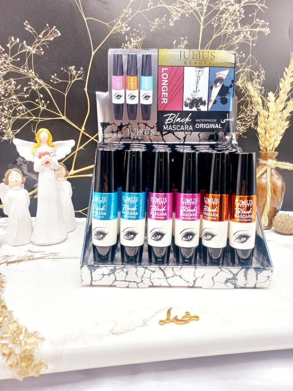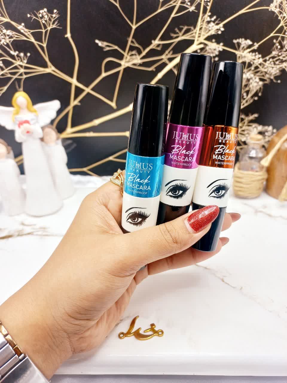 ریمل مشکی چشمی ضد آب جولیوس JULIUS اصلی کد 8280 دارای سه فرچه با کارایی متفاوت می باشد این ریمل بلند کننده و حجم دهنده قوی مژه است.