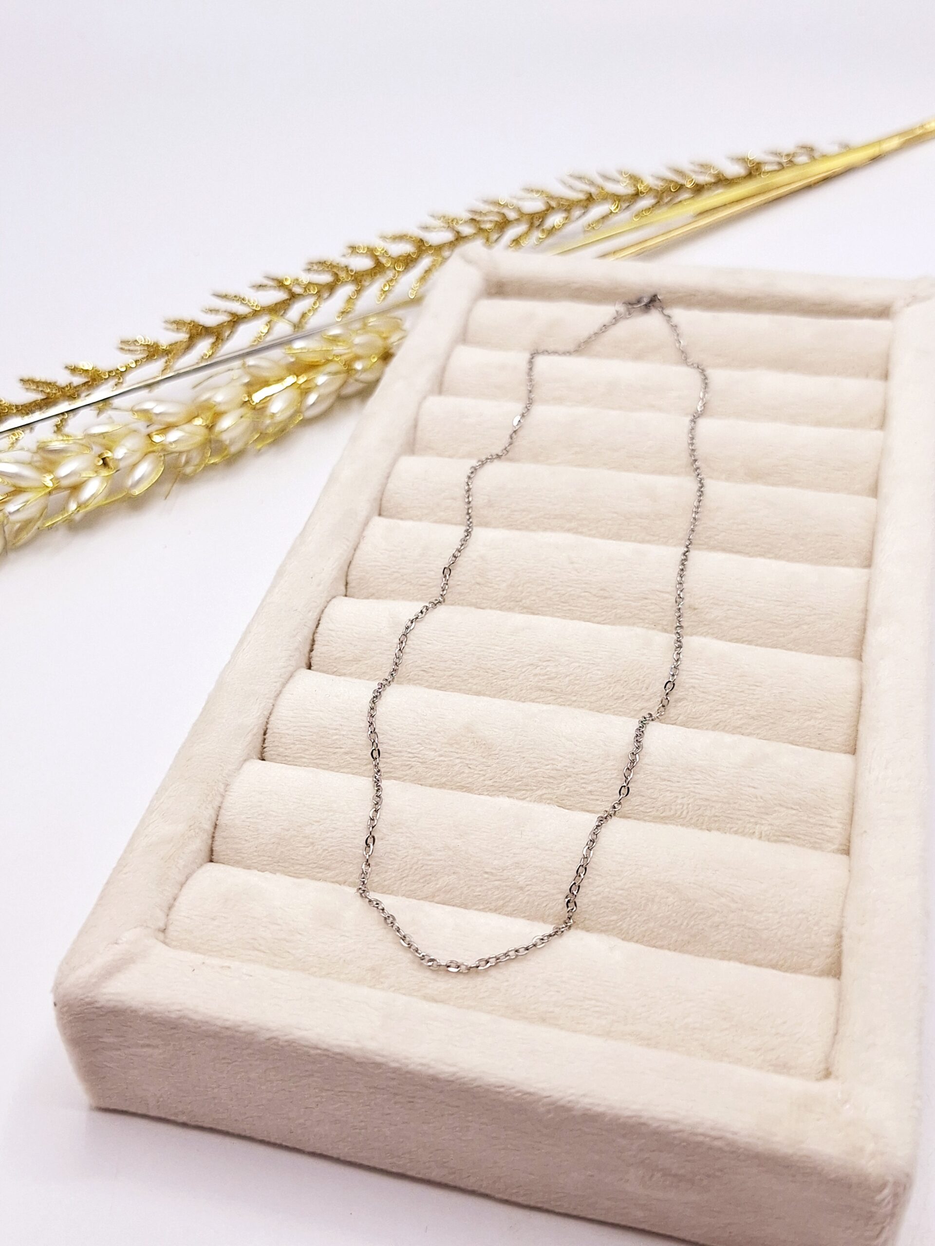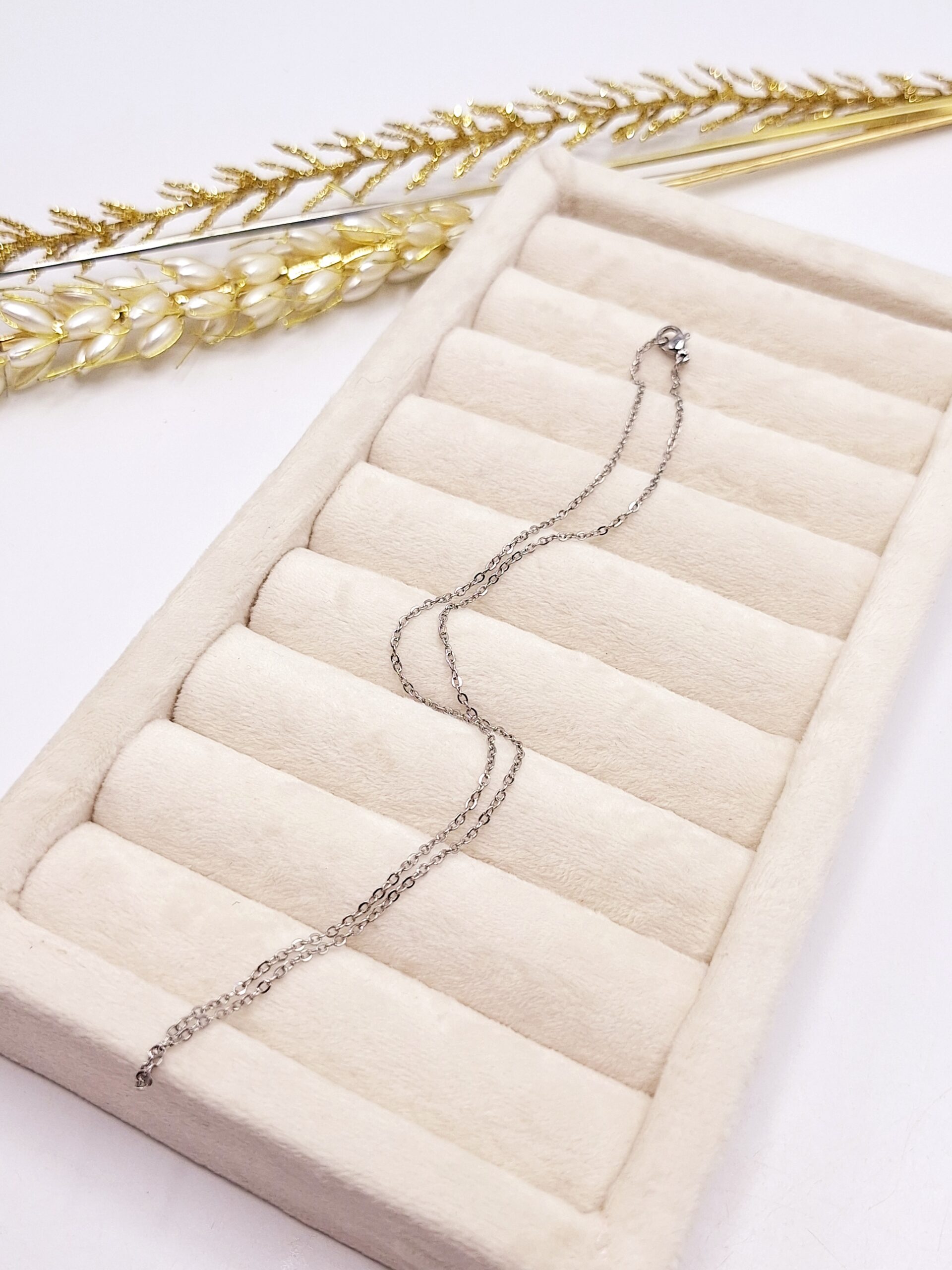 زنجیر استیل نقره‌ای ✨ یه انتخاب ساده، شیک و همه‌پسند که می‌تونه پایه‌ی استایل هر دختری باشه 😍💖 - ⛓ طراحی: زنجیر مینیمال کلاسیک - 🎨 رنگ: نقره‌ای براق - ✨ سبک: مینمال، مدرن و همه‌کاره - 🎁 مناسب هدیه و استفاده روزمره - ⚠️ نیاز به مراقبت دارد (از تماس با مواد شوینده و مایع ظرفشویی جلوگیری شود)