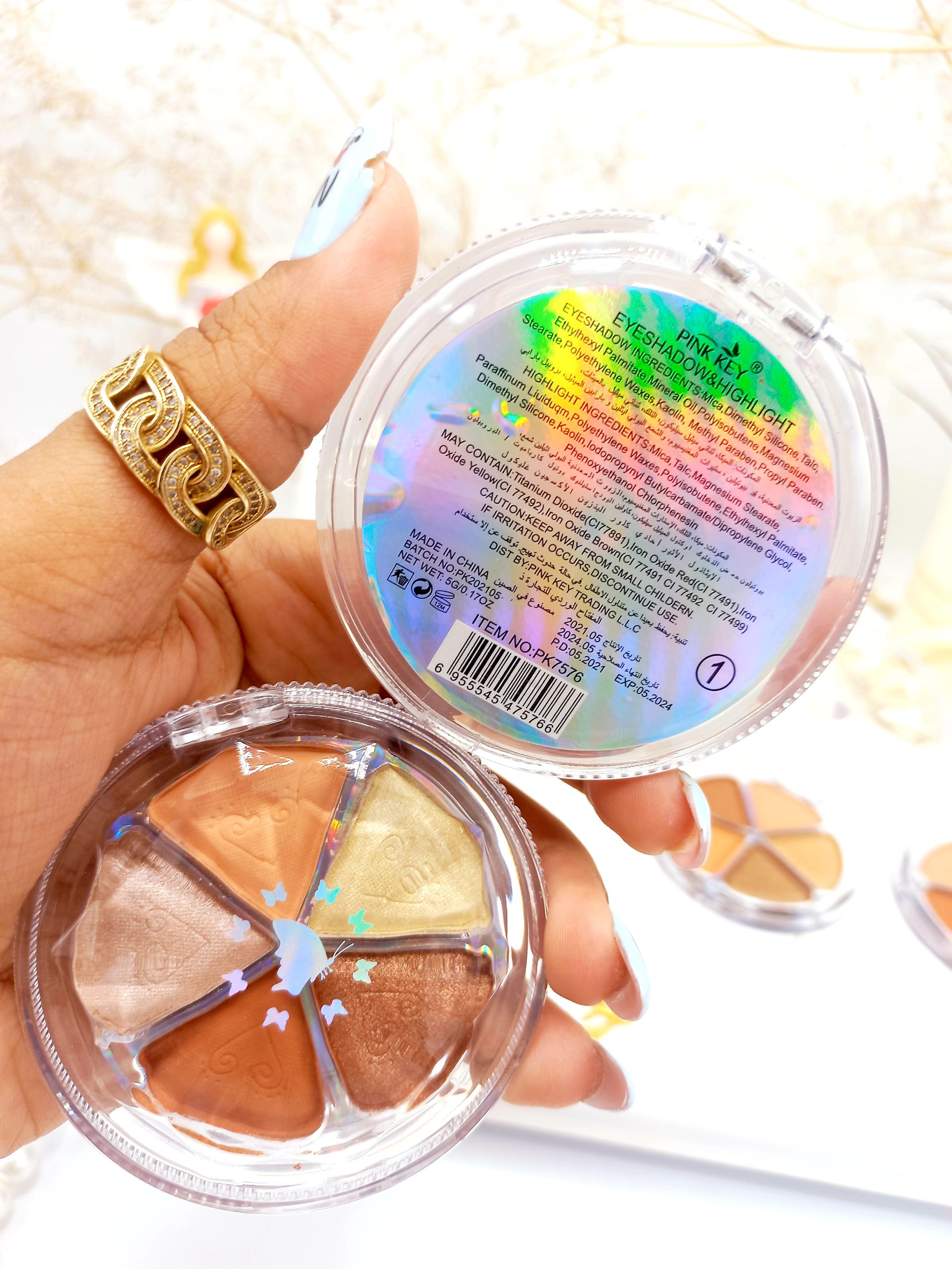 سایه چشم 5 قلو طرح گل برند پینک کی PINK KEI کد PK7576 که رنگ های مات و براق را شامل می شود و متناسب با هر سلیقه ای یک رنگ پیشنهادی دارد که می توانید از آن استفاده نمایید . این پالت سایه دارای پیگمنت های قوی و فشرده می باشد که ماندگاری ان بالا بوده و به راحتی و آسانی پخش می شود و به صورت یکسان و یکدست روی پوست شما می نشیند . بافت رنگی بسیار نرم و سبک و مخملی دارد که احساس سنگینی رو چشم خود احساس نمی کنید و بدون ریزش و انباشته شدن زیر چشم روی چشم شما می نشیند . این پالت سایه هیچ گونه حساسیتی برای چشم شما ایجاد نمی کند و شما با خیال راحت می توانید از آن استفاده کنید . این پالت سایه چشم با تنوع رنگ بندی که دارد برای آرایش روز و شب مناسب بوده و کیفیت وماندگاری آن بالا می باشد