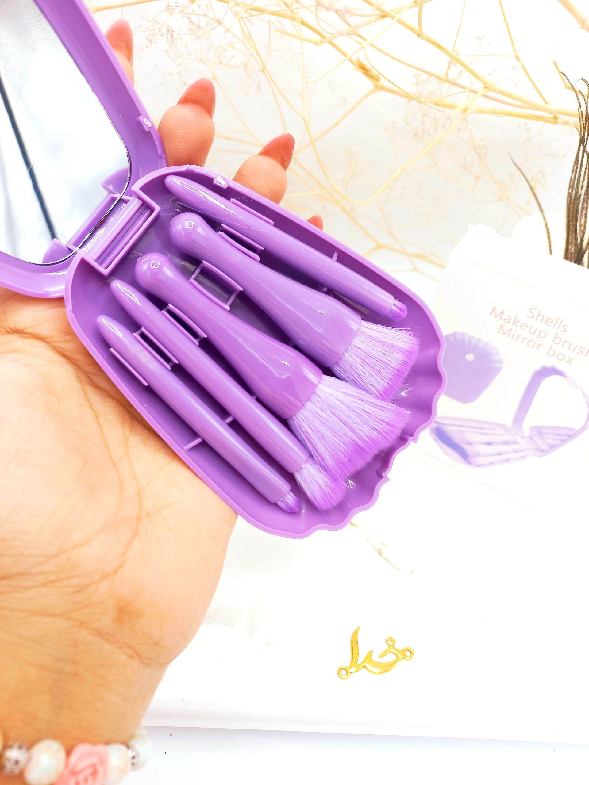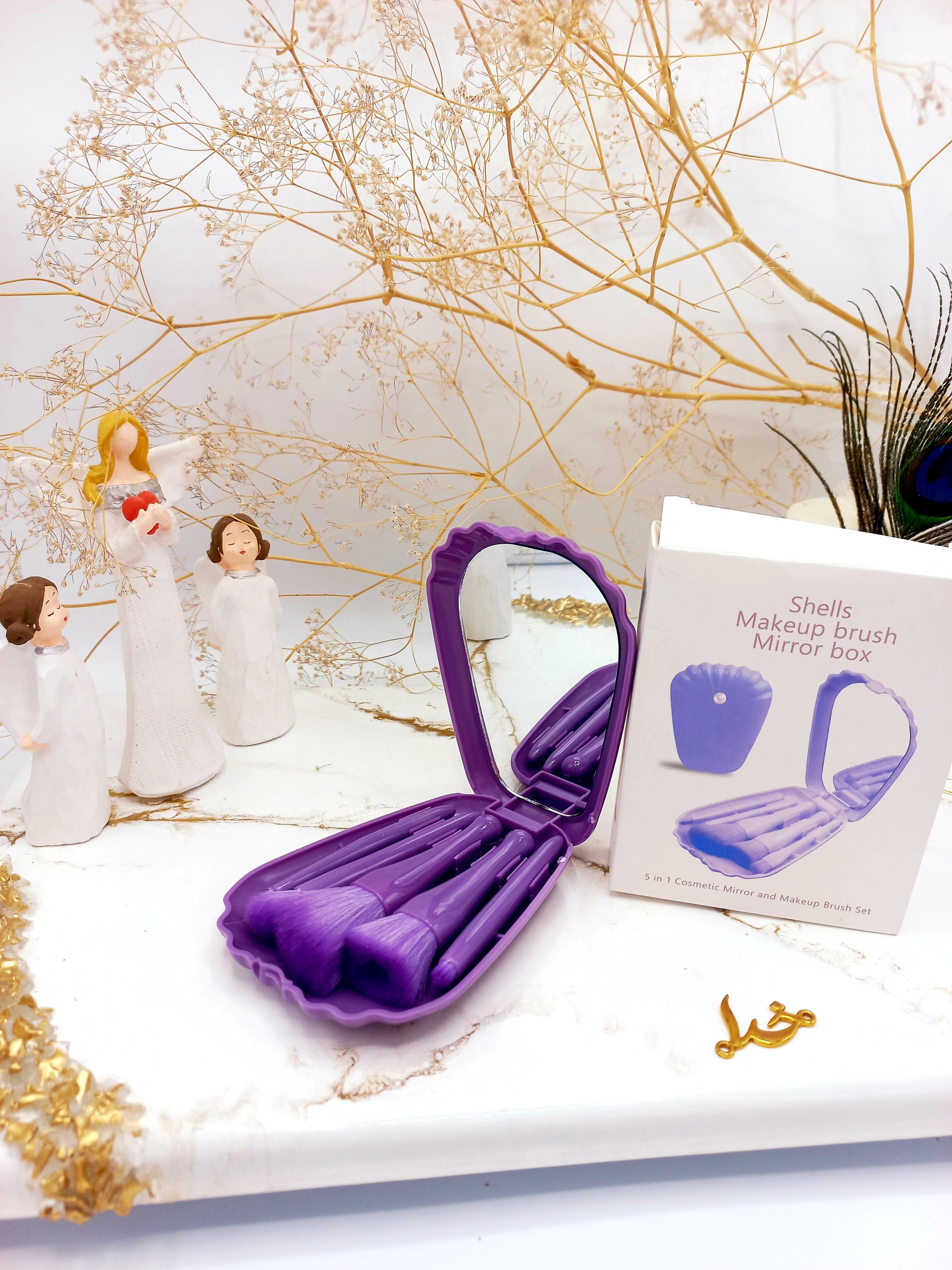 ست براش 5 تیکه باکس دار صدفی آینه دار بنفش