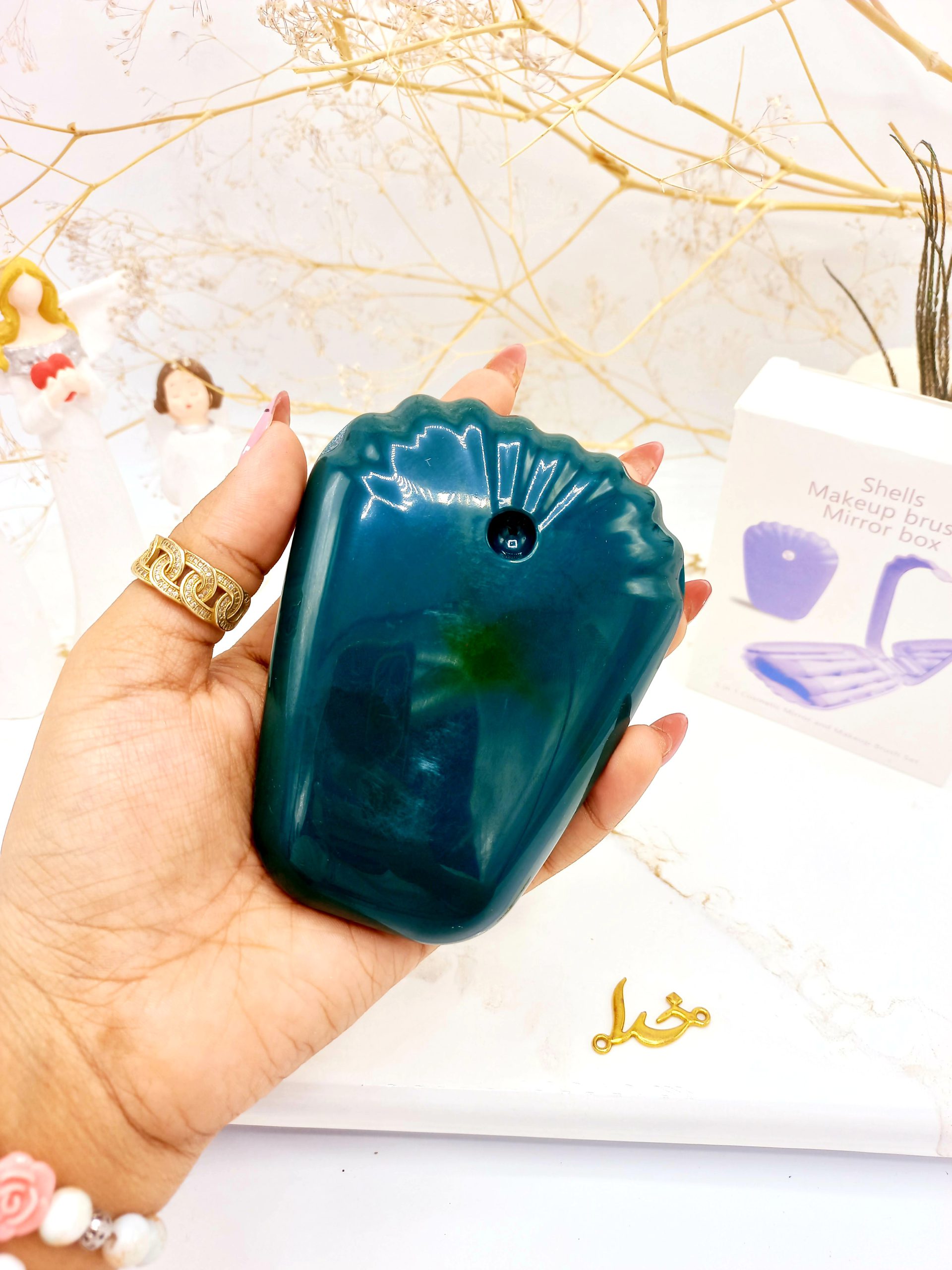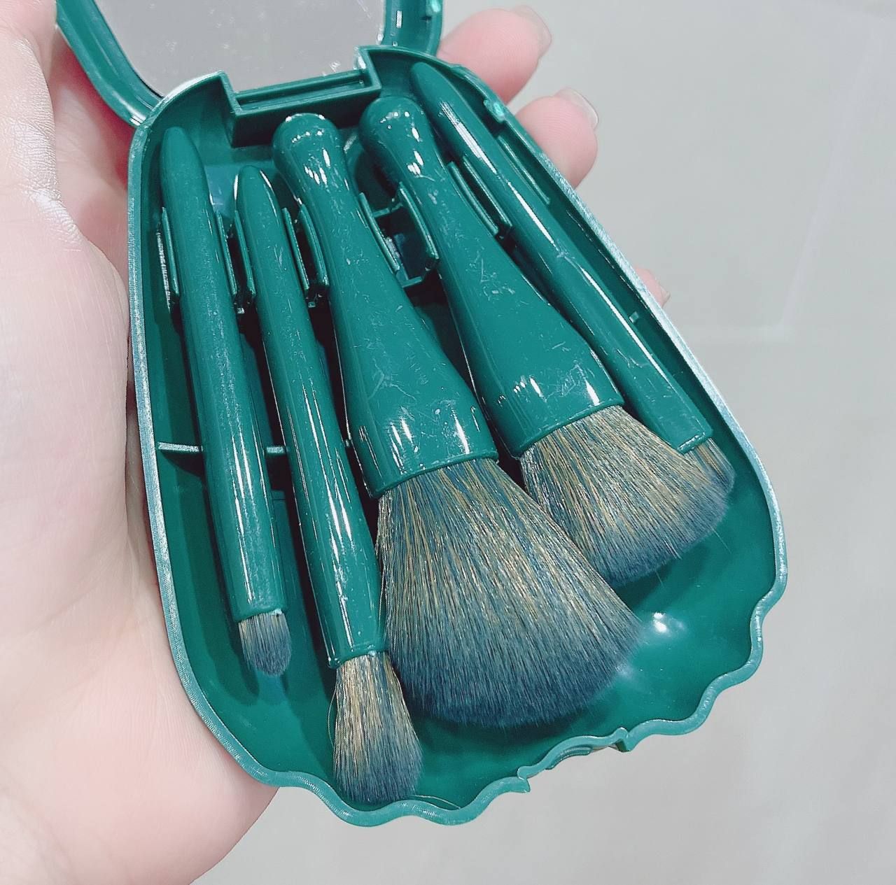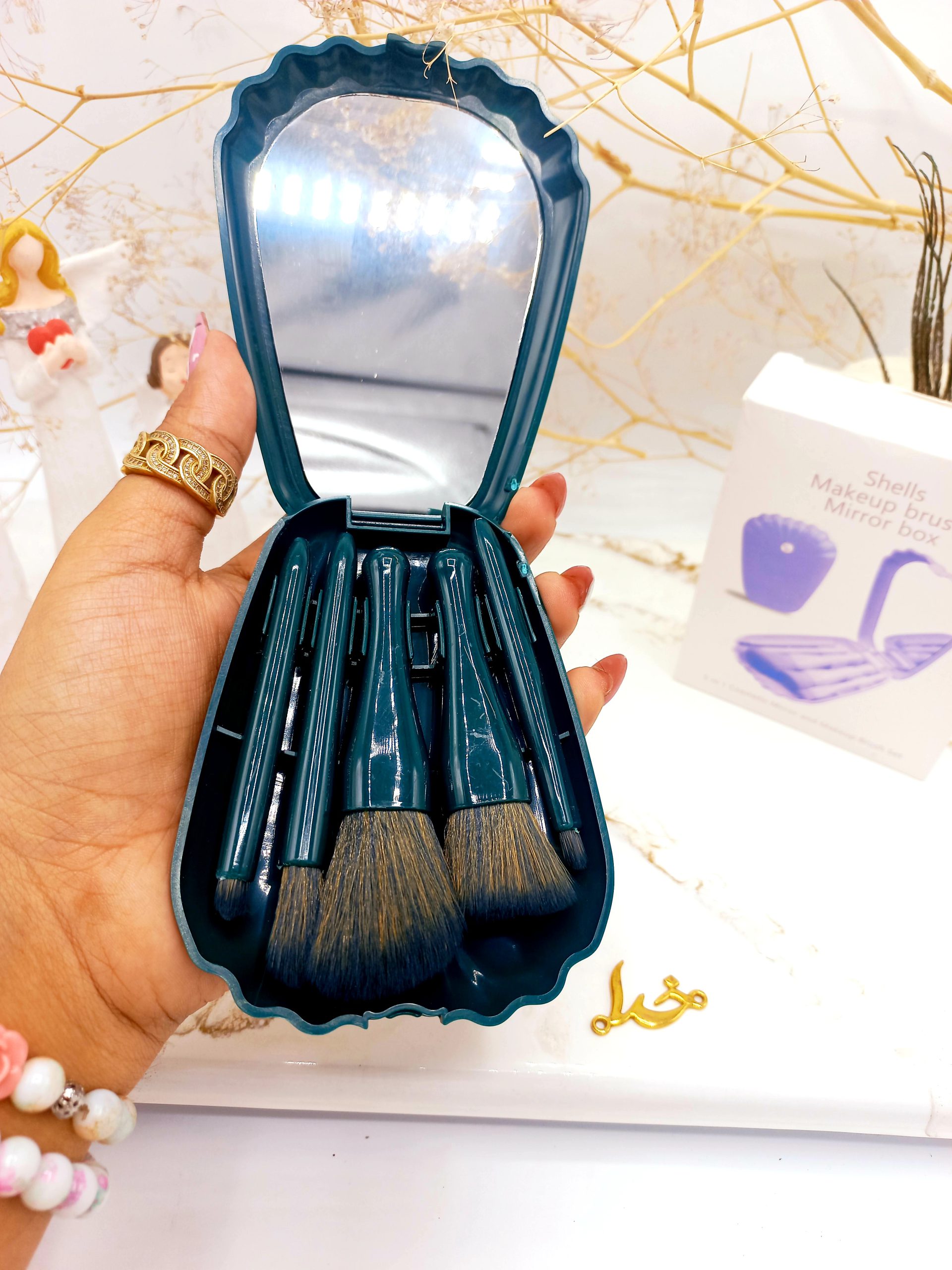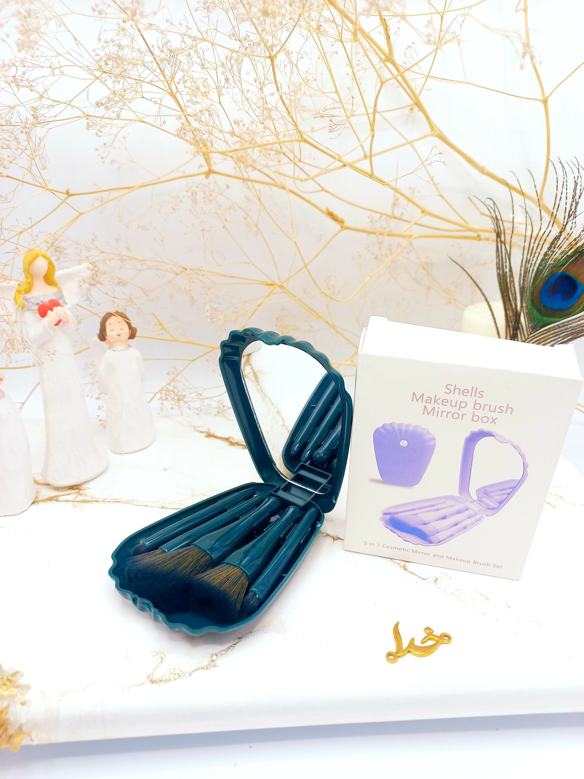 ست براش 5 تیکه باکس دار صدفی آینه دار سبز