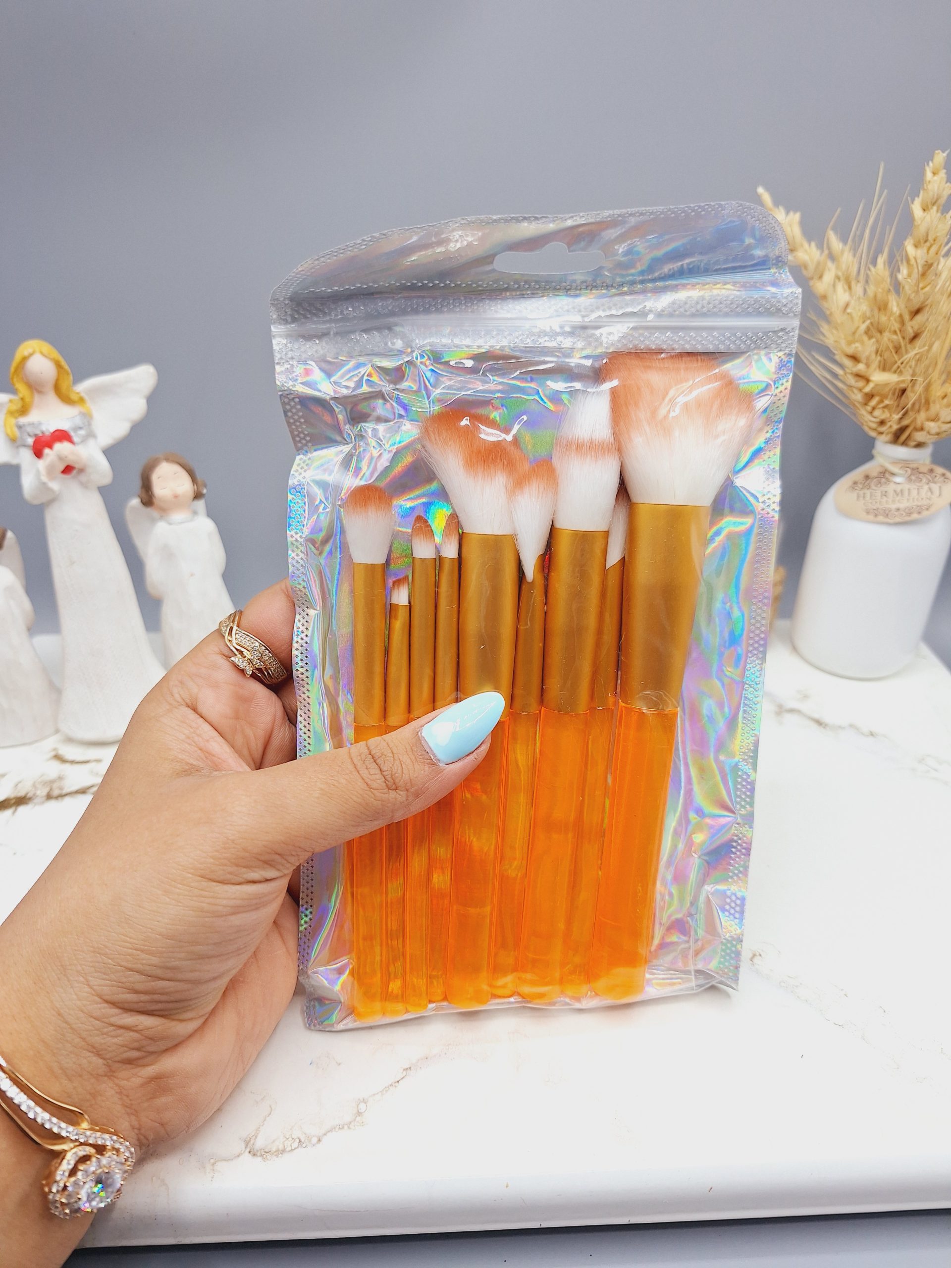 براش های آرایشی در انواع مختلفی طراحی و تولید می‌شوند و هر کدام از آن ها برای نقاط مختلف صورت کاربرد دارند.در واقع انواع براش آرایشی به ما کمک می کنند که کرم پودر، رژگونه، سایه چشم، پنکک و حتی خط چشم را به خوبی روی صورت خود به نمایش در آوریم. برای داشتن یک آرایش بی عیب‌ و نقص علاوه بر استفاده از مواد آرایشی با کیفیت می‌بایست از ابزار مناسب هم استفاده کرد، یکی از این ابزار‌ها استفاده از براش ها و قلم‌مو‌های آرایشی است. محصول فوق یک ست از براش های کاربردی می باشد که دارای تراکم بالایی بوده و برس های موجود در این ست همگی قابل شستشو هستند.حمل و نگهداری آنها به دلیل سایز کوچک بسیار آسان می باشد. این محصول به دلیل طراحی جذاب و رنگبندی شیک آن مناسب هدیه دادن به افرادی است که آنها را دوست می دارید.