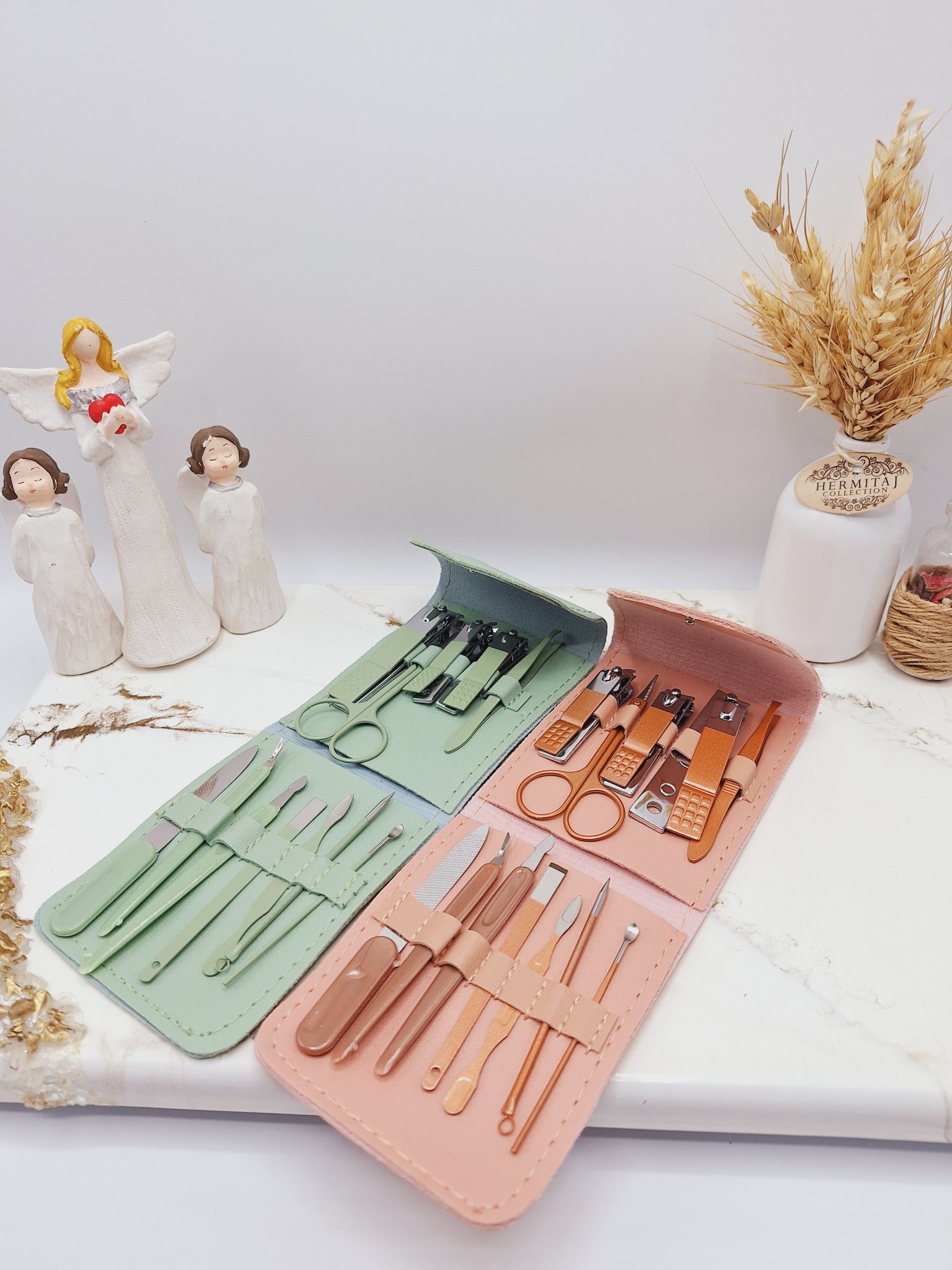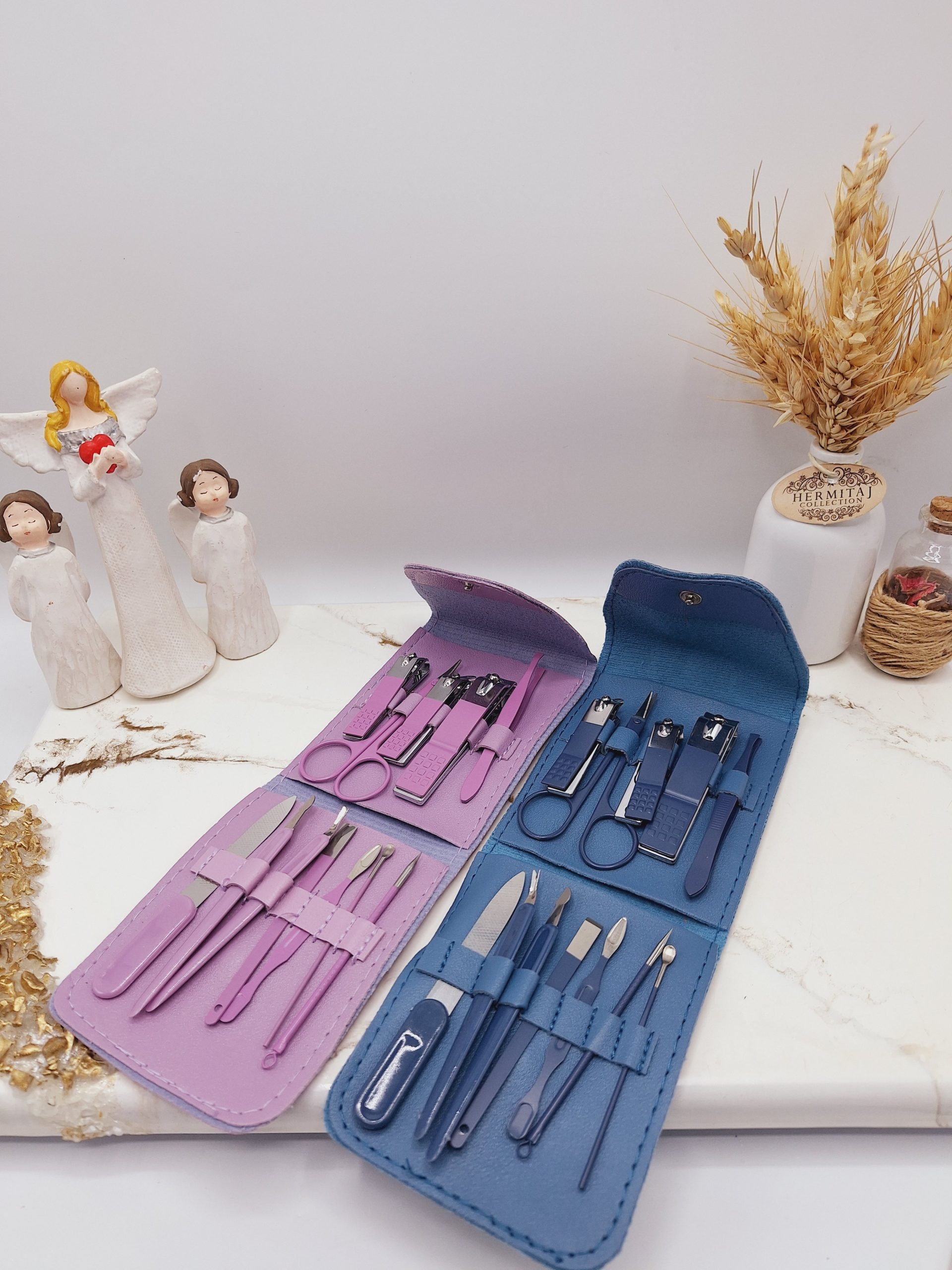 ست ۱۲ تکه جنس استیل قابلیت حمل آسان همراه با کیف چرمی کیفیت بسیار عالی بسیار شیک و زیبا مناسب برای ناخن های دست ناخن های پا مناسب برای استفاده: سالن، شخصی وزن سبک و حمل راحت وسیله ای زیبا ، کوچک و بسیار کاربردی ۲ عدد ناخن گیر ،گوشت گیر ، موچین ، ابزار تمیز کردن زیر ناخن ، پوشر ، ابزار تمیز کردن گوشت ها و پوسته های دور ناخن ، سوهان ناخن و قیچی