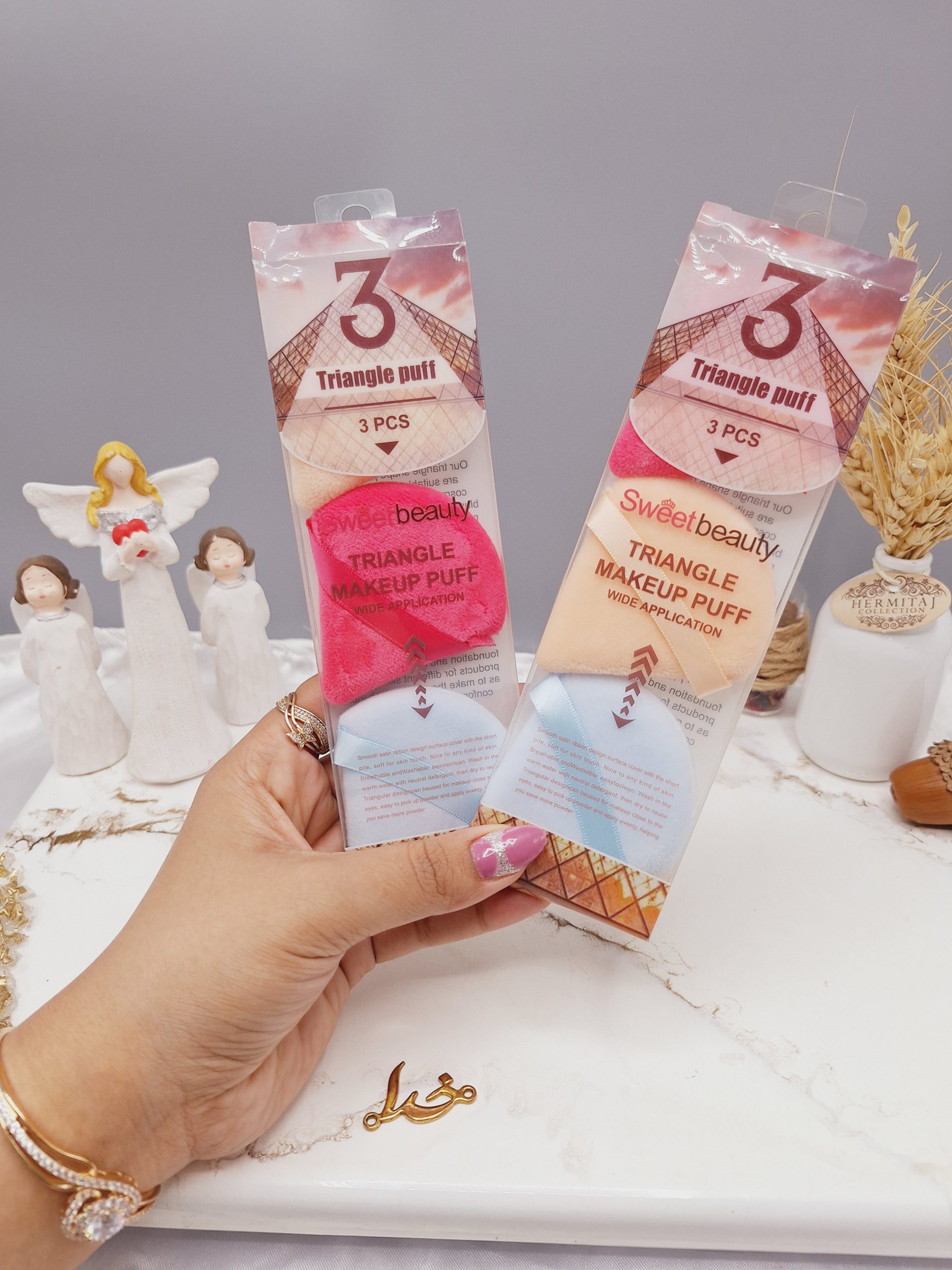 بافت ست پد 3 عددی طرح مثلثی برند SWeet beauty کد FP3053 مخملی نرم و لطیف بوده که برای پخش کردن کرم پودر و کانسیلر مناسب است. با کمک این پد می توان، عیوب و نقایص پوست را پوشاند و یکدست نمود. این پد آرایشی مقدار اضافه کرم پودر را از روی پوست برداشته و جلوه طبیعی و بدون اثر ماسیدگی ایجاد می کند.