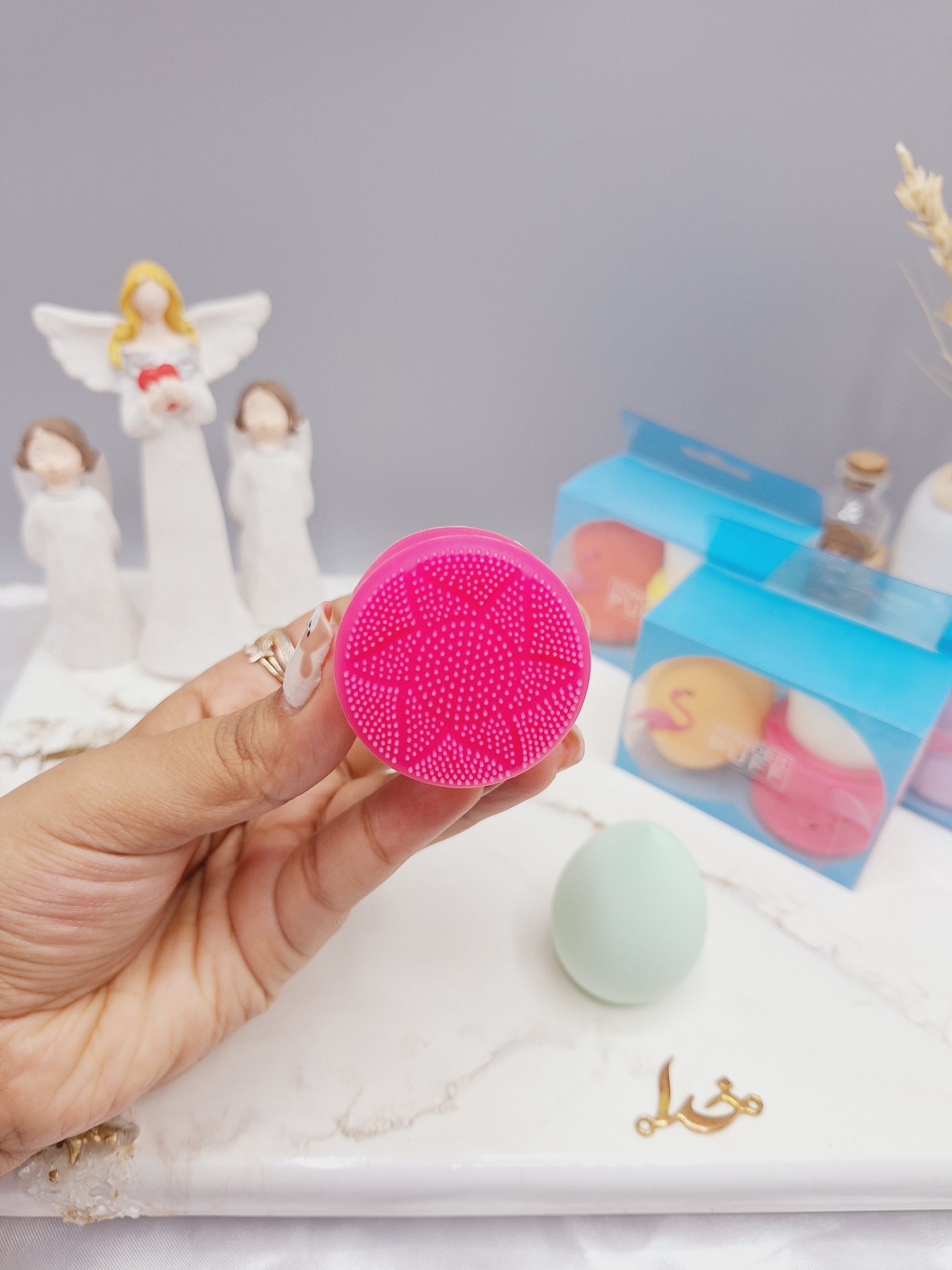 ست پک دوتایی فیس براش صورت و پد تخم مرغی POWDER PU PUFF کد 4822