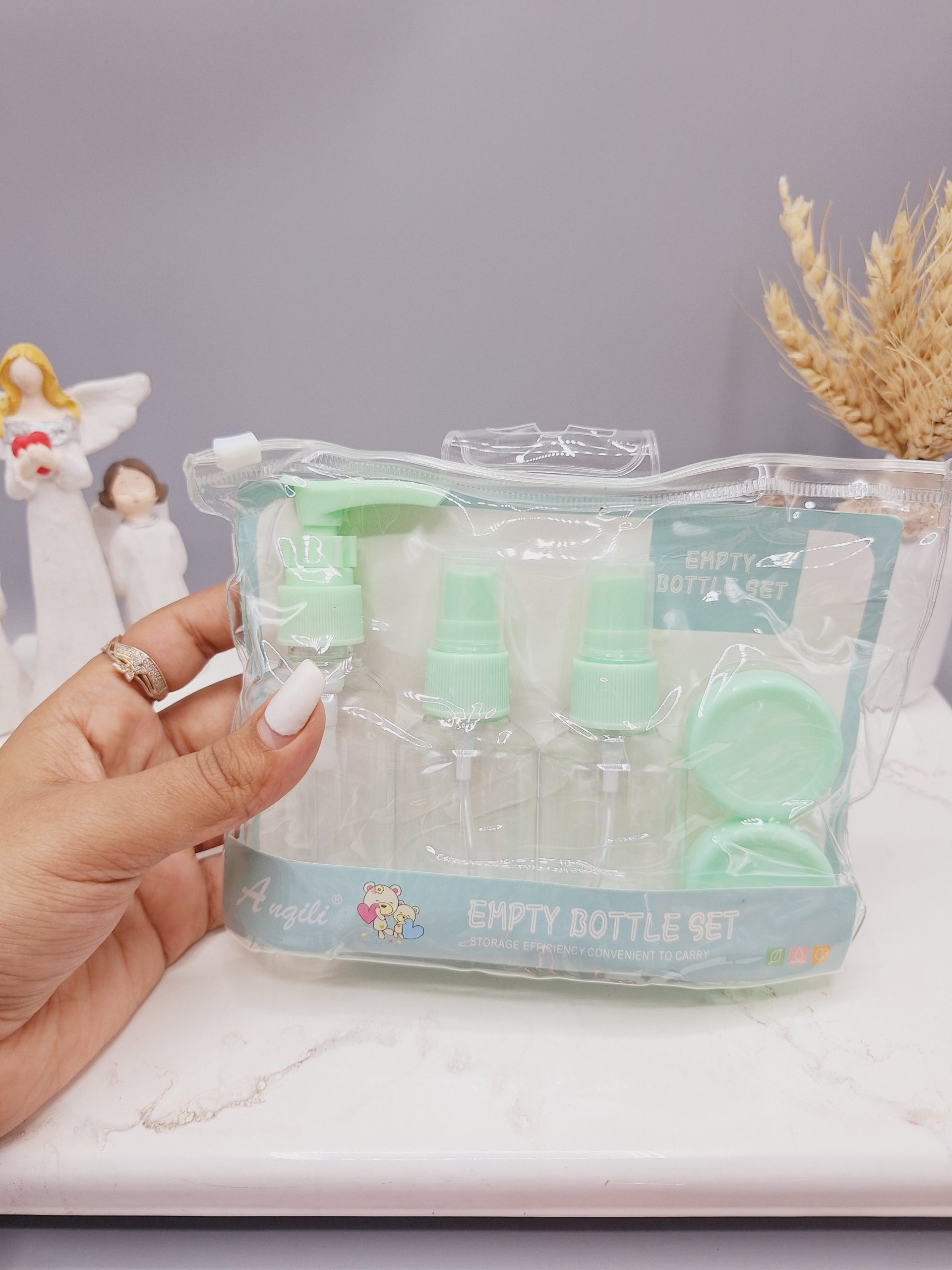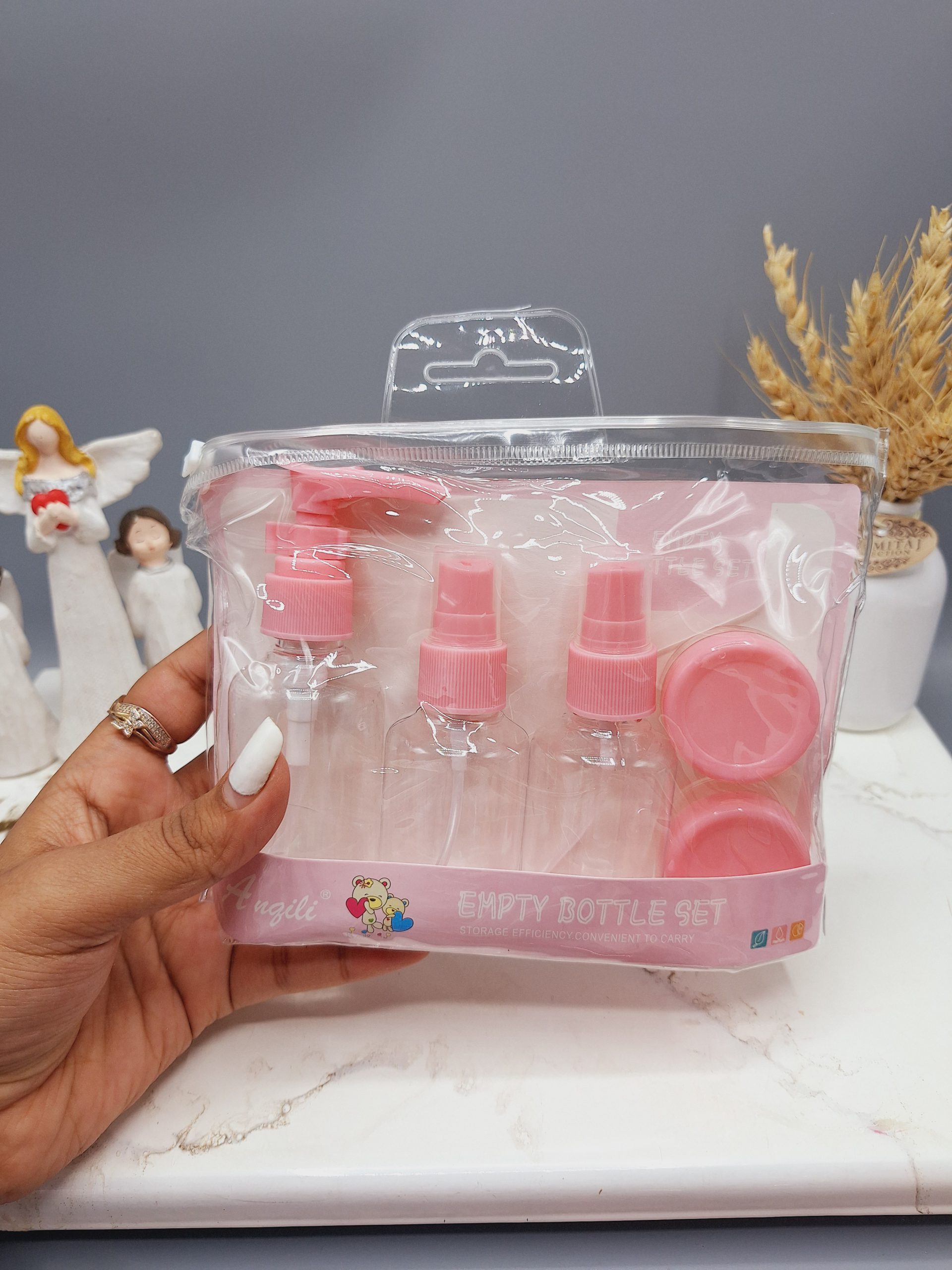 ست مسافرتی آرایشی 5 تکه محصولی مناسب برای نگهداری محصولات مراقبتی پوست همچون تونر، ماسک مو، شامپو، شوینده، مرطوب کننده، میسلارواتر، ضدآفتاب، لوسیون و … است. اندازه این قاب و بطری های این محصول سایز کوچک هستند و به راحتی داخل کیف آرایشی جا می شوند. همچنین این محصول قابل استفاده در سفر، کمپینگ، استخر و باشگاه ورزشی است.