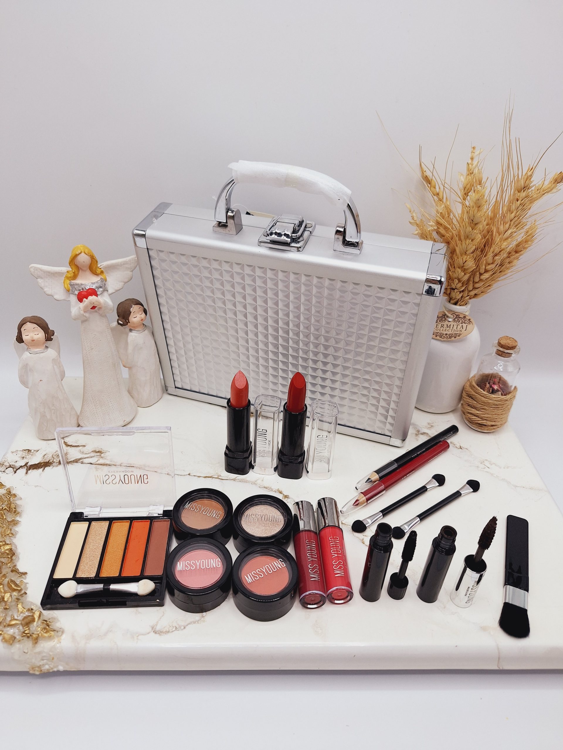 ست کامل آرایشی حرفه ای 🥰😍 5 رنگ سایه چشم 2عدد رژگونه خوش رنگ 2 عدد هایلایتر 2عدد رژ مایع خوش رنگ 2 عدد رژ لب جامد کهکشانی 1 عدد ریمل دو طرفه مشکی و قهوه ای 1 عدد خط لب قرمز 1 عدد مداد چشم مشکی 2 عدد پد اپلیکاتور سایه 1عدد آینه 1 عدد برس رژ گونه