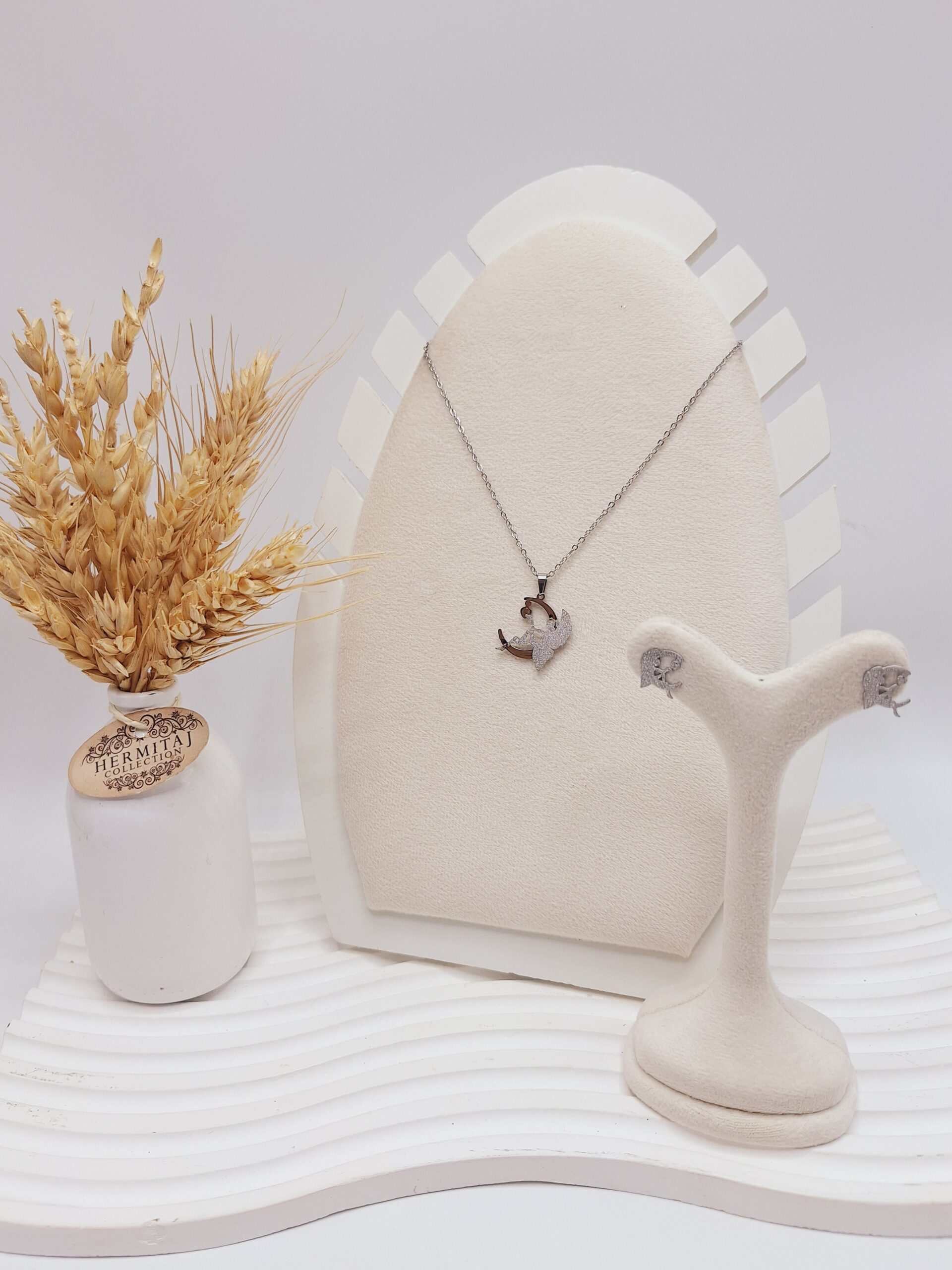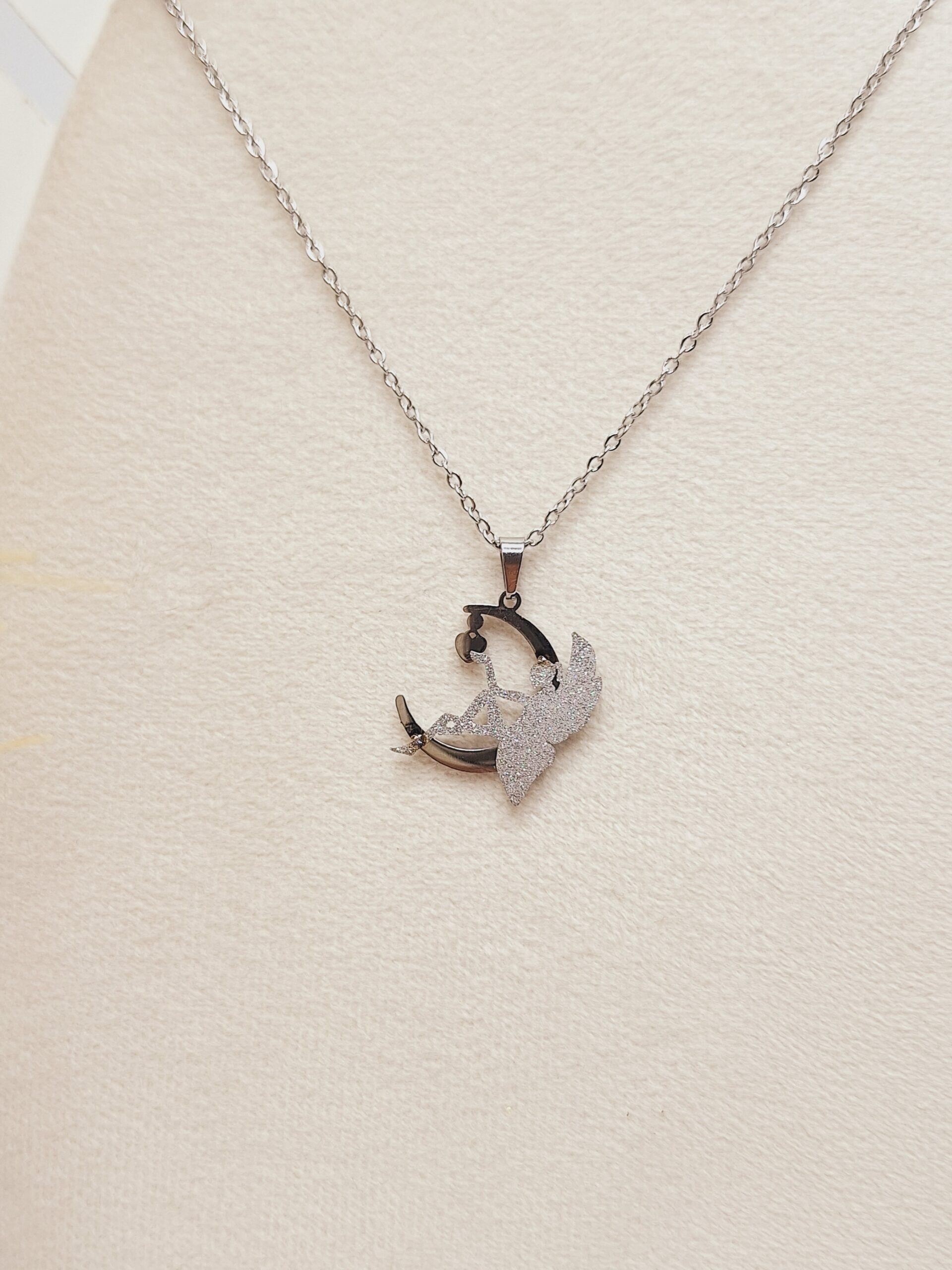 اگر به دنبال ست زیورآلات ظریف و شیک با طراحی فرشته و ماه و رنگ نقرهای هستید، ست گوشواره و گردنبند طرح فرشته و ماه نقرهای استیل بهترین انتخاب شماست 🌿💖