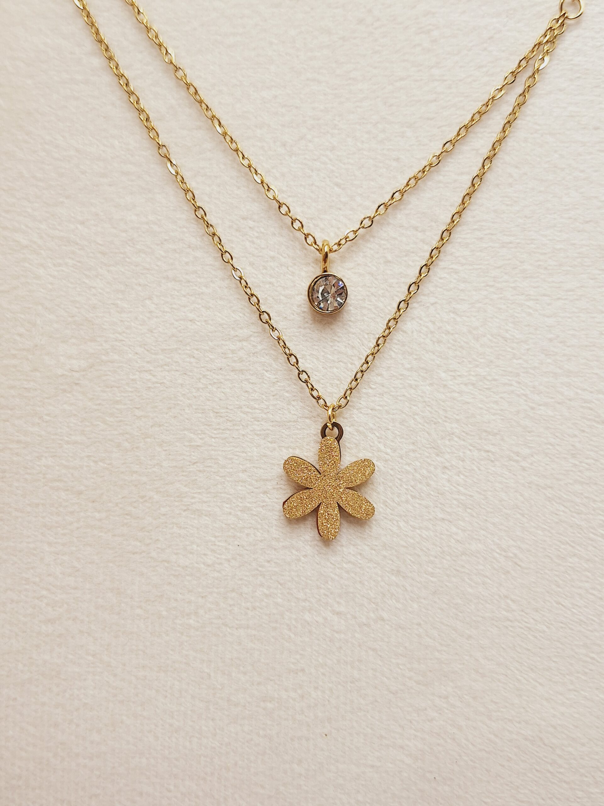 ست گوشواره و گردنبند طرح گل رنگ طلایی از جنس استیل، محصولی شیک و لوکس برای تکمیل استایل روزانه و مجالس است ✨💍