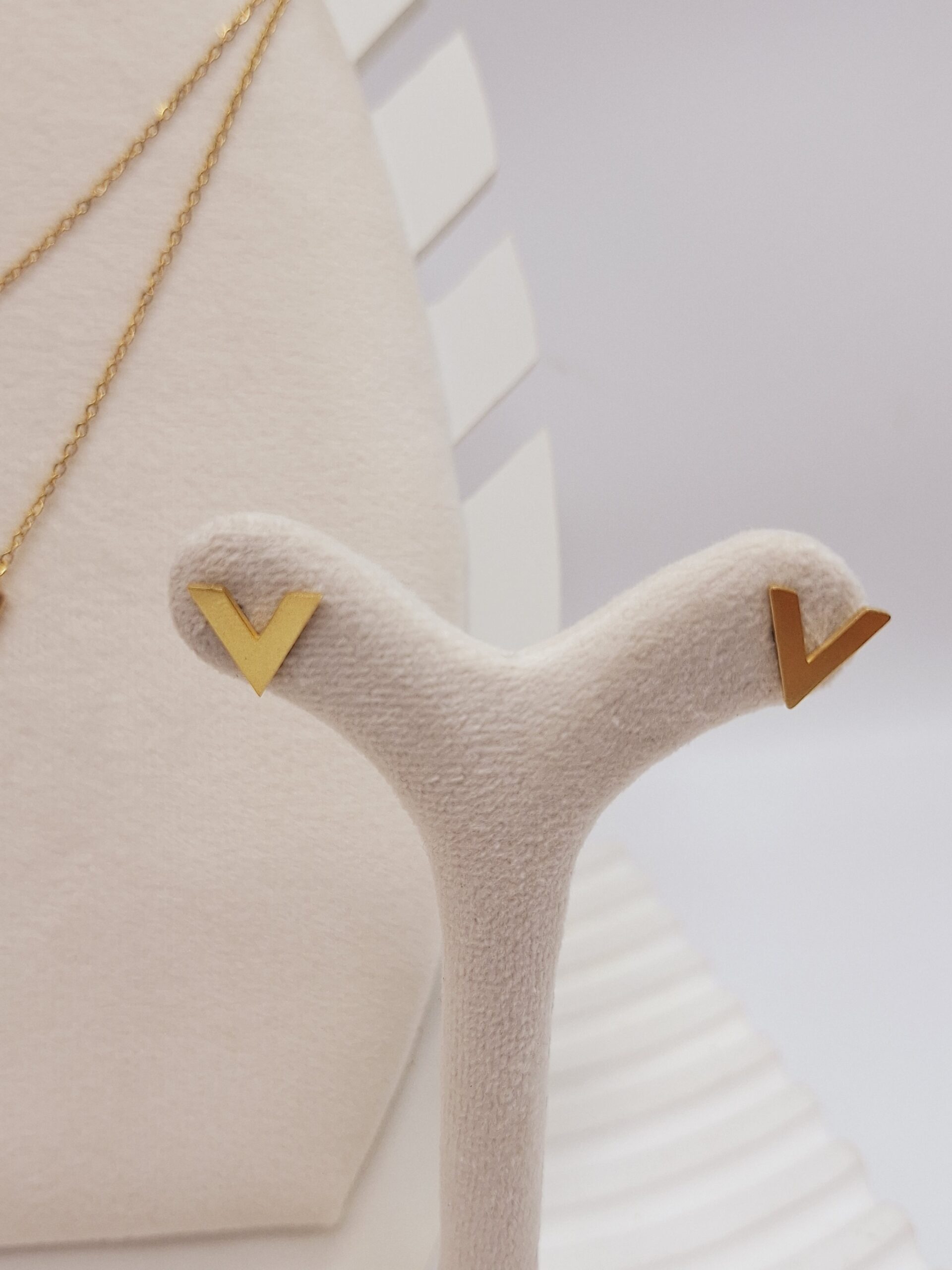 ست گوشواره و گردنبند طرح V طلایی استیل، محصولی حرفهای برای افزودن جلوهای مدرن و شیک به استایل شما است 💖🌿