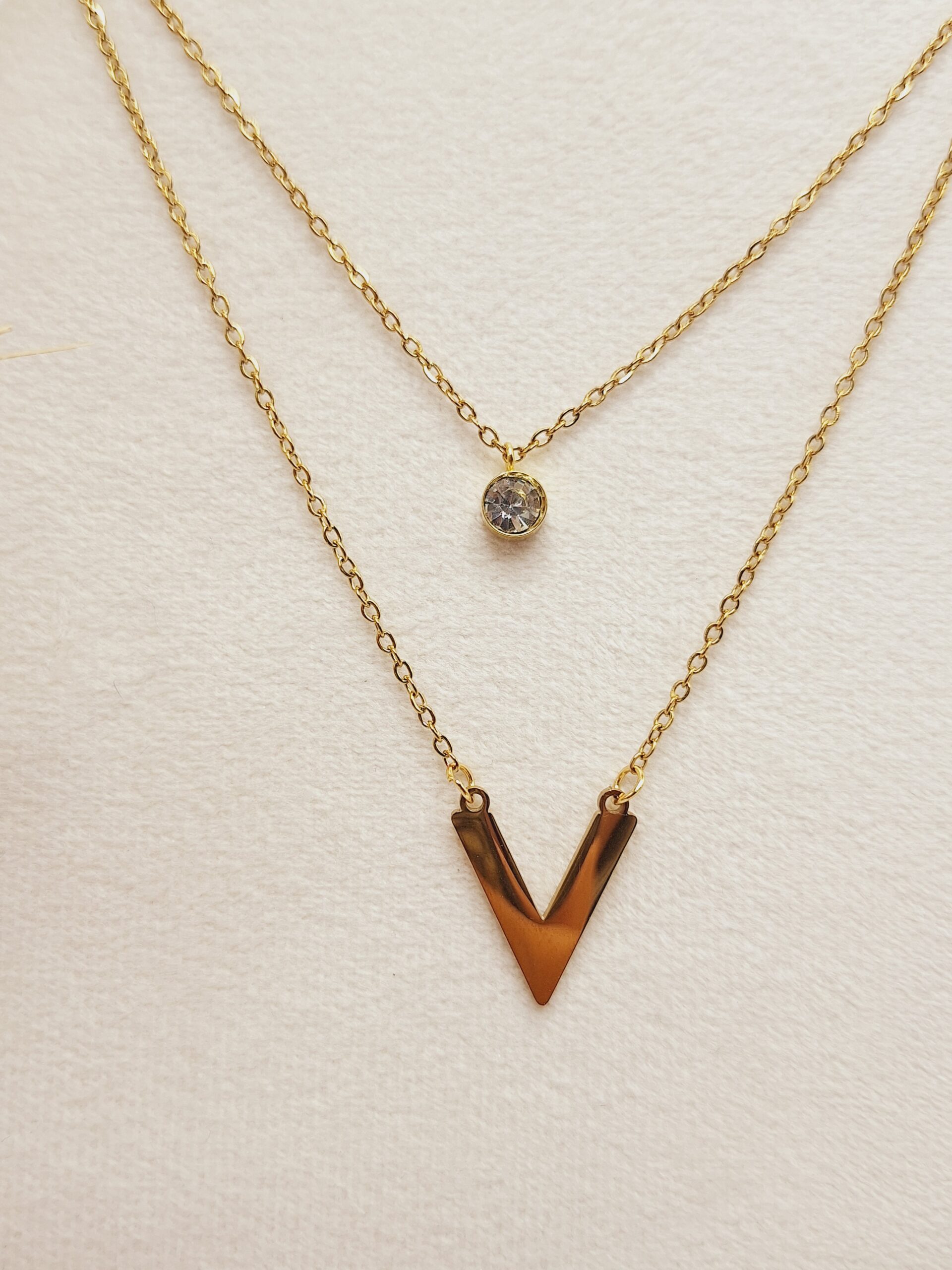 اگر به دنبال ست زیورآلات مدرن و مینیمال با طراحی V و رنگ طلایی هستید، ست گوشواره و گردنبند طرح V طلایی استیل بهترین انتخاب شماست 🌿💖