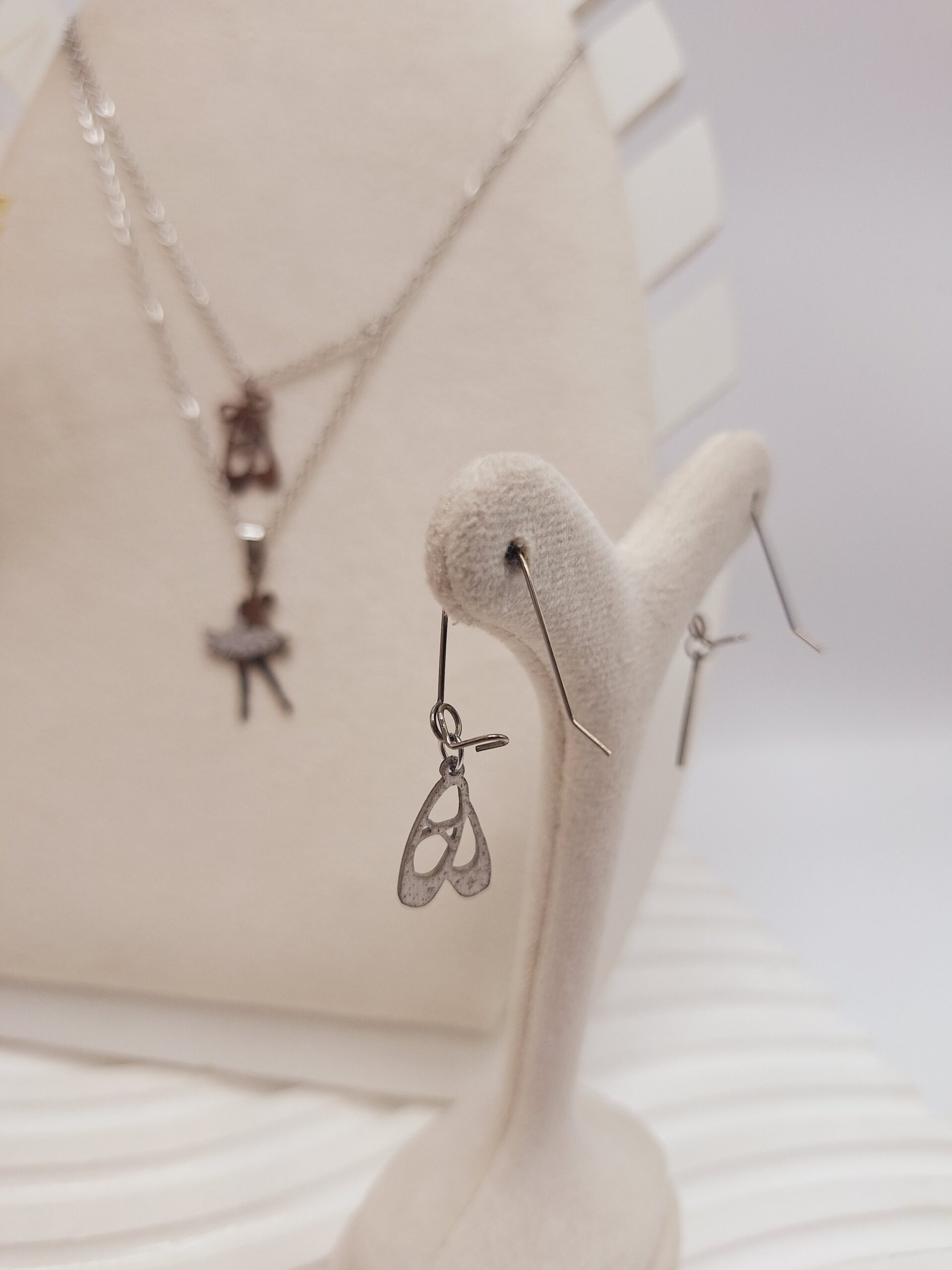 اگه دنبال یه ست شیک، فانتزی و ظریف هستی که استایلت رو خاص و دلنشین کنه، ست گوشواره و گردنبند ۲ لاین طرح بالرین نقرهای استیل دقیقاً همون انتخابیه که میخوای ✨🩰💎