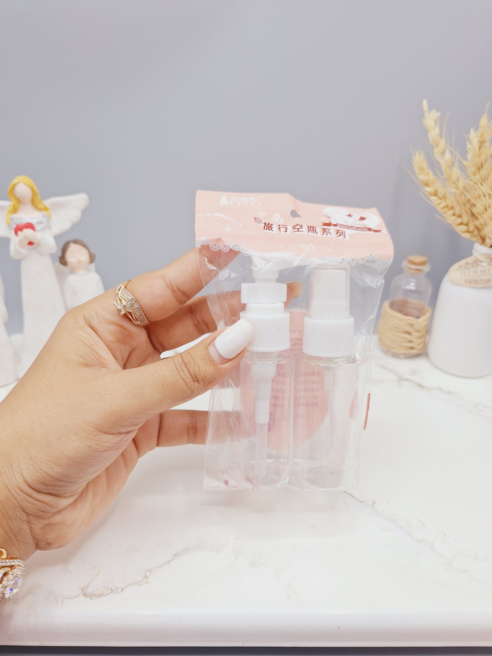 ست مسافرتی دو تیکه کد 1620 شامل 2 عدد بطری ظرف اسپری مناسب استفاده برای تونر و الکل و بطری مناسب استفاده برای شامپو و ماسک مو با کیفیت عالی می باشد.