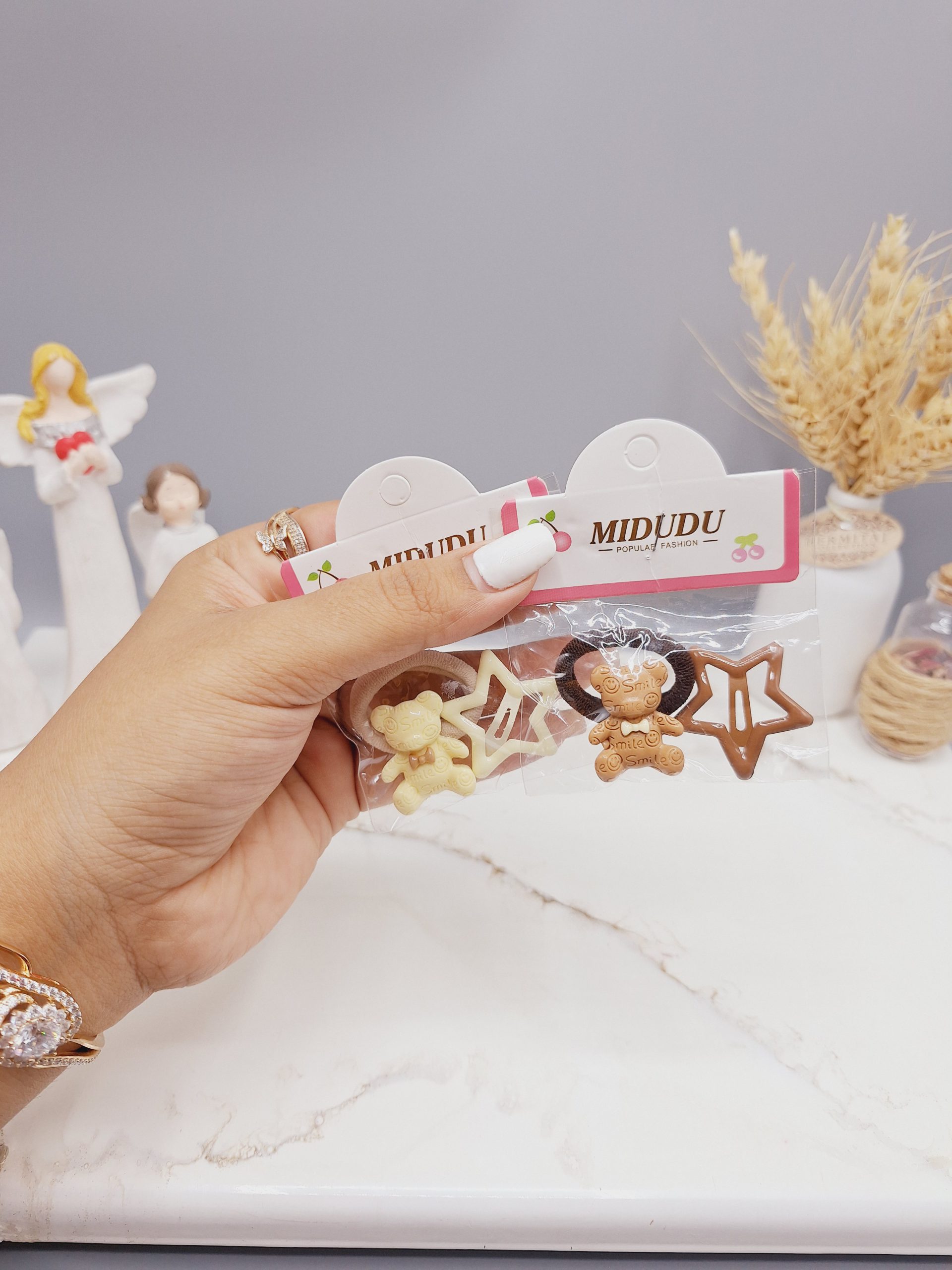 ست 2 تایی کش مو و پنس ستاره ای تکی طرح خرس و ستاره نود