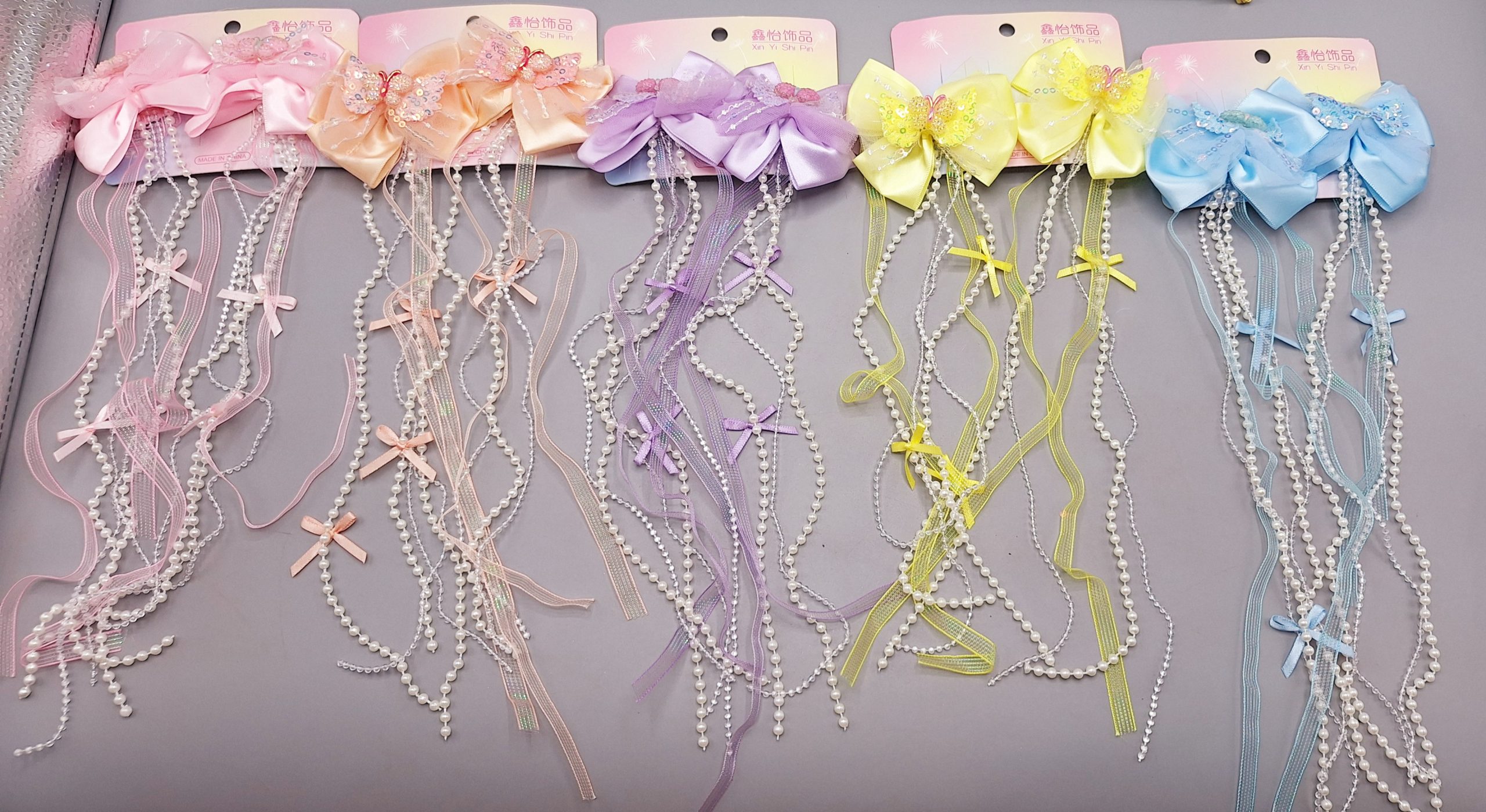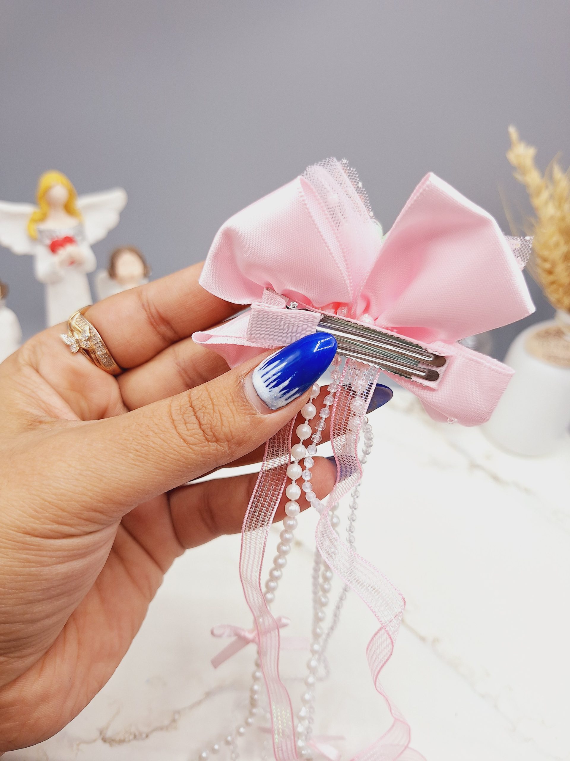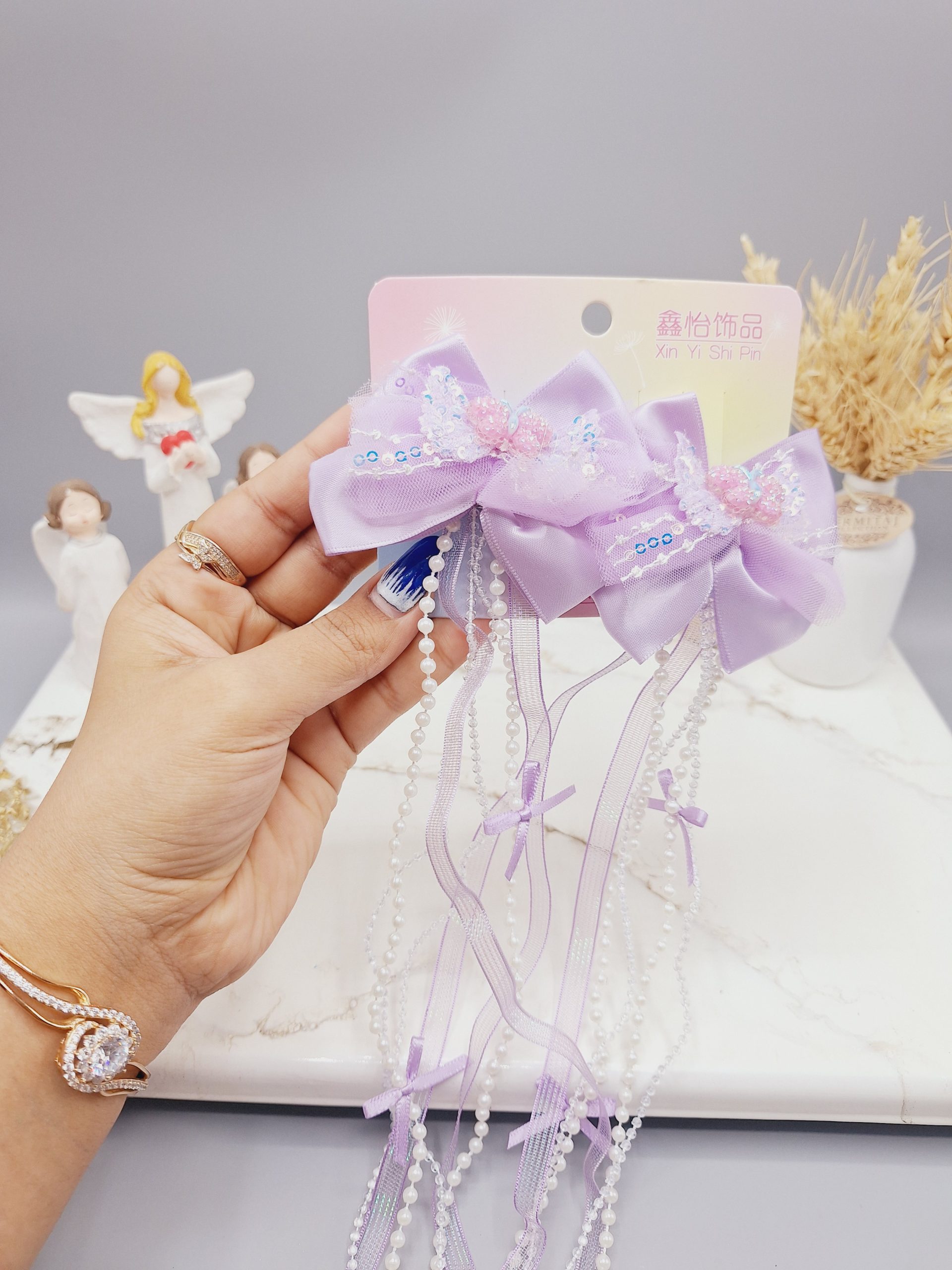 ست 2 تایی گیره مو پاپیونی پولک دار همراه با آویز نواری و نگین دار