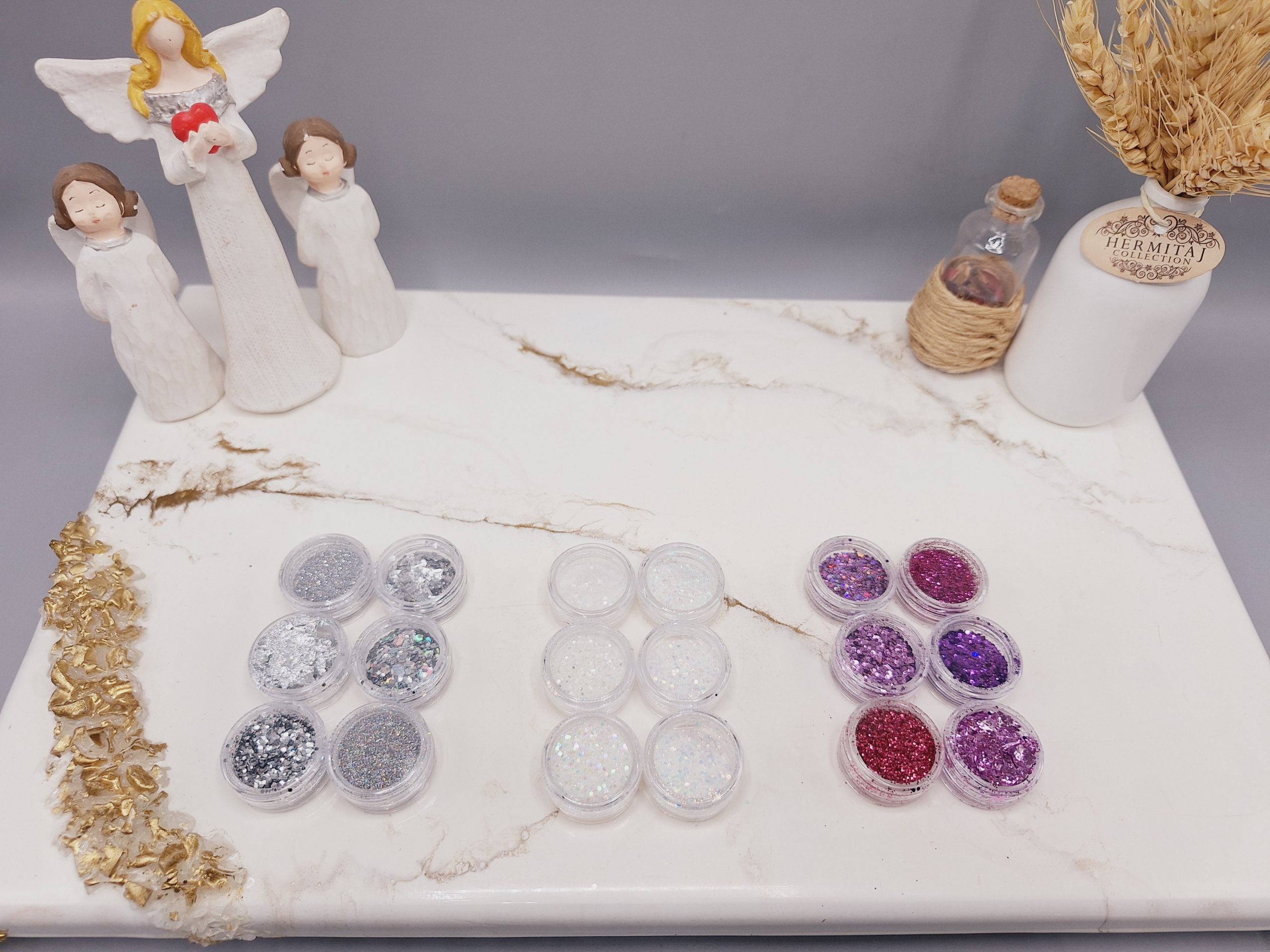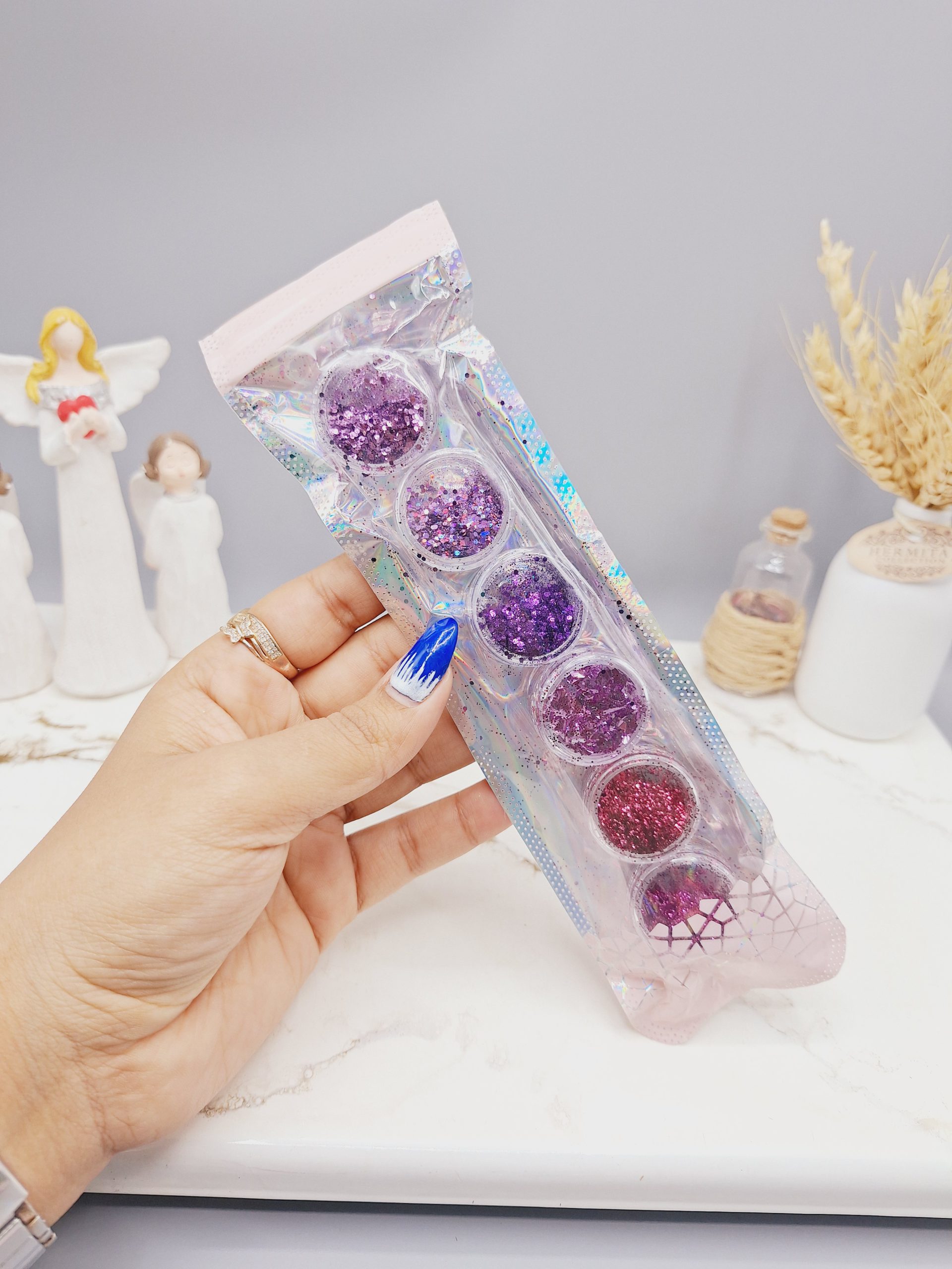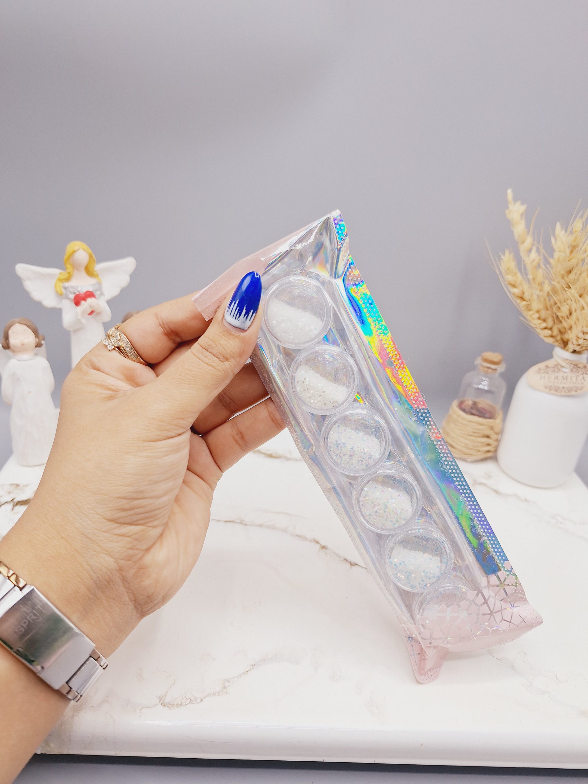 پودر های کروم رنگ ها و شکل های مختلفی دارد و این تنوع باعث می شود که خانم ها با هر سلیقه ای بتوانند از کروم روی ناخن های خود استفاده نمایند. پودر کروم به ناخن ها حالت براقی می دهد که همین امر سبب خاص شدن این محصول می باشد. این پک شامل 2 بسته پودر با تم مشکی، دو بسته با تم سفید با سایه 7 رنگ، یک بسته پلاتینی و یک بسته خاکستری است.