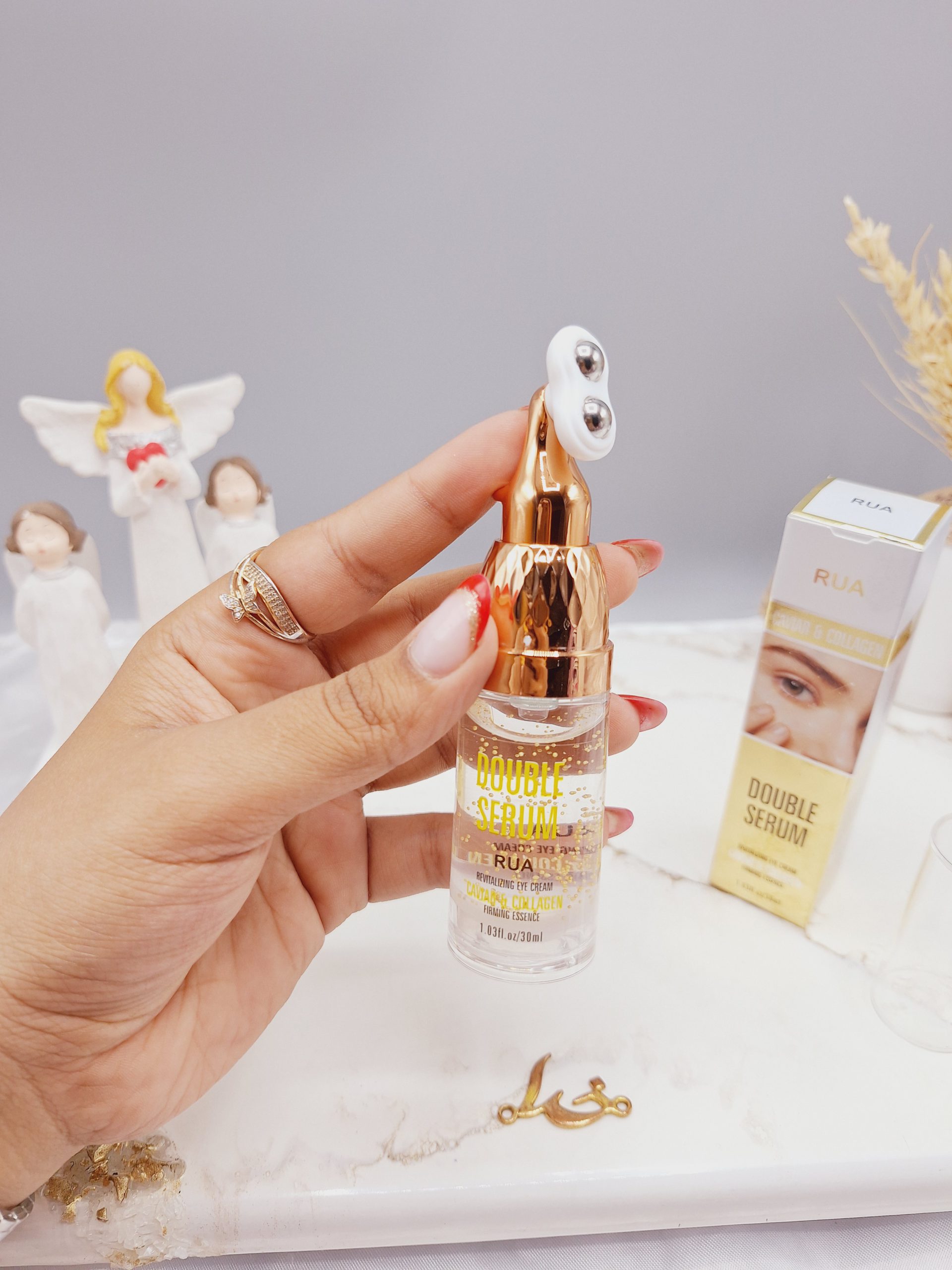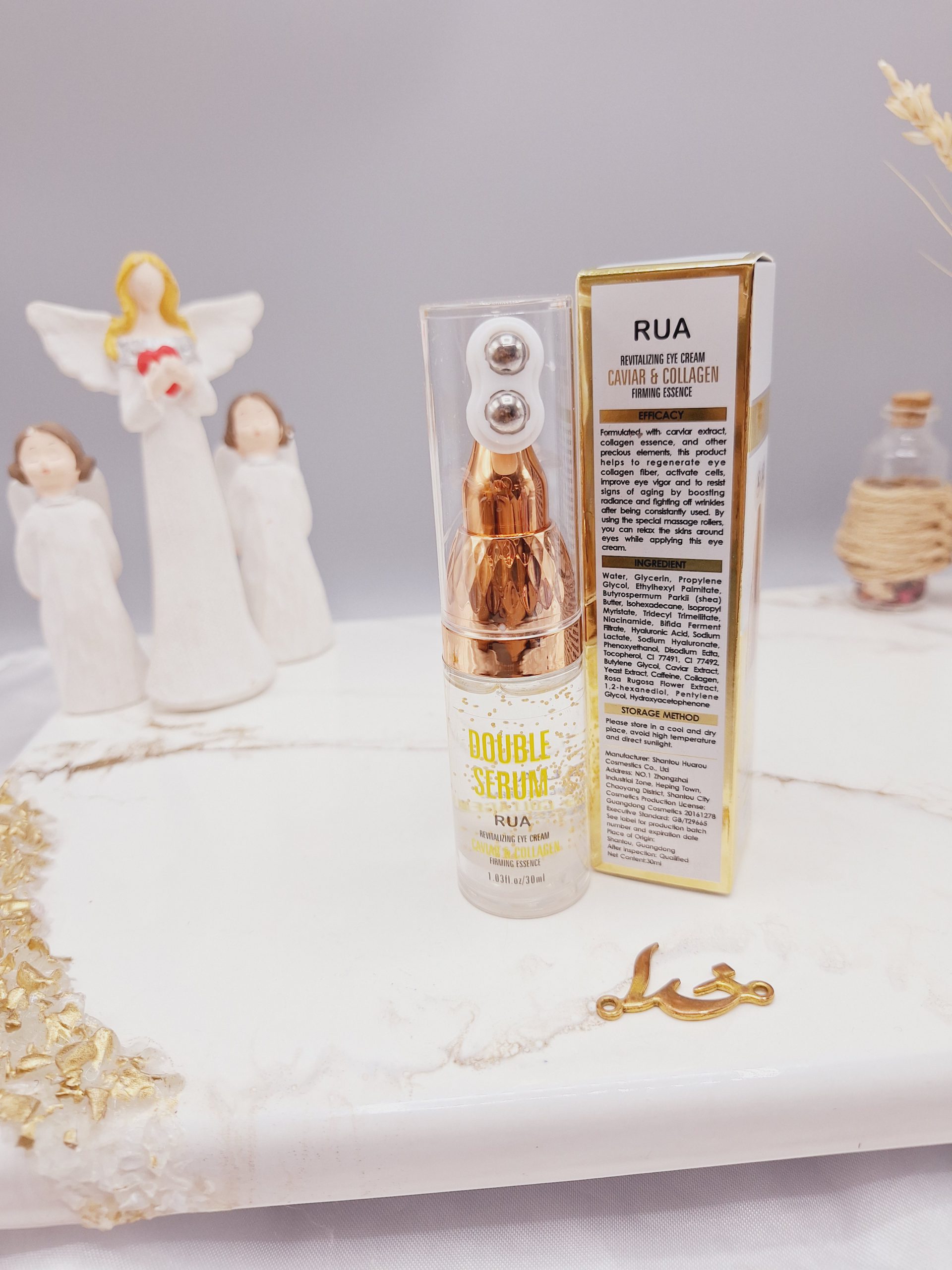 سرم دور چشم 2 غلطتکی حاوی خاویار برند RUA ضد پیری کد 60381، سرم حاوی خاویار و کلاژن است که چین و چروک های سطحی دور چشم را از بین برده به کلاژن سازی و بهبود فیبر اطراف چشم کمک کرده و با افزایش خون رسانی و جذب سریع مواد مغذی مانع از پیری پوست دور چشم میشود، پوست را عمیقا آبرسانی کرده و بهبود میبخشد.