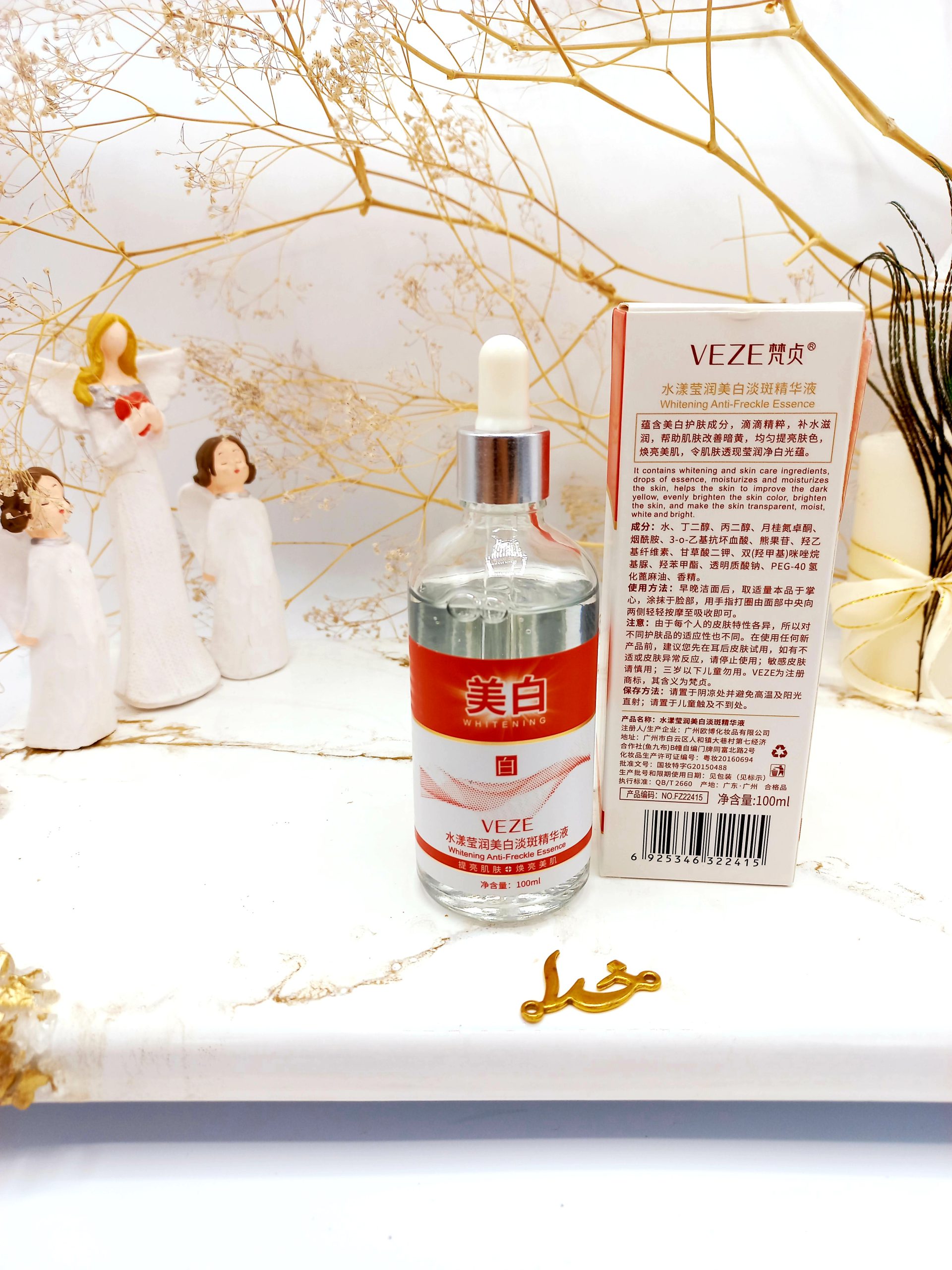 سرم سفید کننده وضدلک قوی وز VEZE کد FZ22415 مرطوب کننده و سفید کننده ی صورت است. این سرم به کمرنگ شدن لکه های پوستی کمک کرده و پوست شمارا سفید و درخشان میکند.این سرم علاوه بر روشن کردن لکه ها، پوست را آبرسانی کرده و باعث جلوگیری از خشکی میشود.