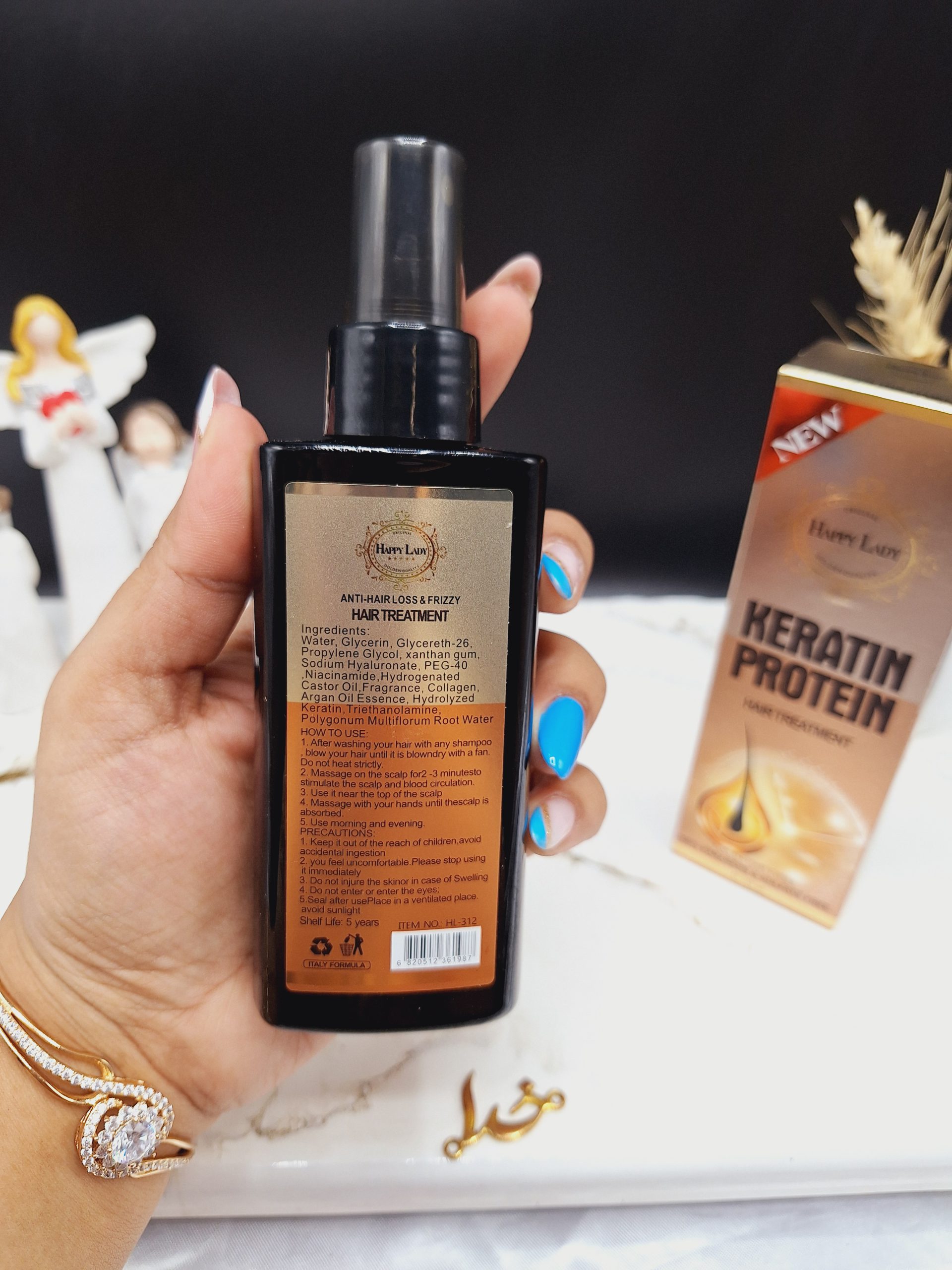 سرم ضد ریزش و درمان کننده مو کراتین و پروتئین هپی لیدی HAPPY LADY کد HL_312 با بهره گیری از کراتین، پروتئین و روغن آرگان، خشکی، وزی و شکنندگی تار های مو که در اثر وسایل حرارتی اتو و سشوار به وجود آمده را رفع کرده و با ترمیم آسیب های مو، از خرد شدن آن ها جلوگیری می کند. این سرم مو موها را صاف و درخشان کرده و حالت دهی و شانه پذیری آن را بهبود می بخشد. همچنین، ریشه مو را تقویت کرده و با محافظت از مو و افزایش استحکام آن، از ریزش موها جلوگیری می کند.