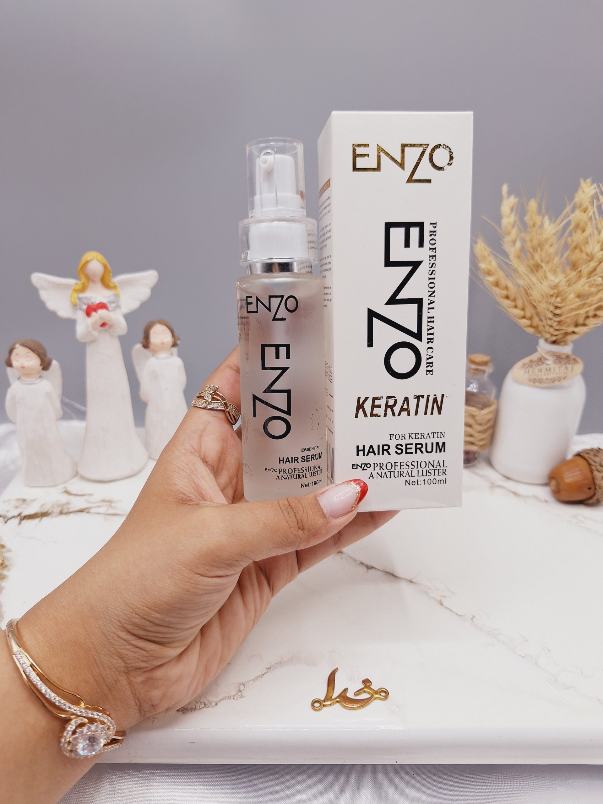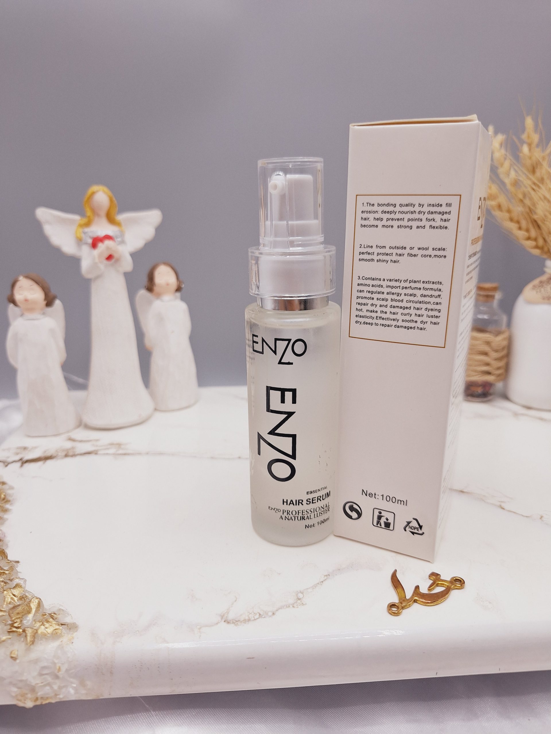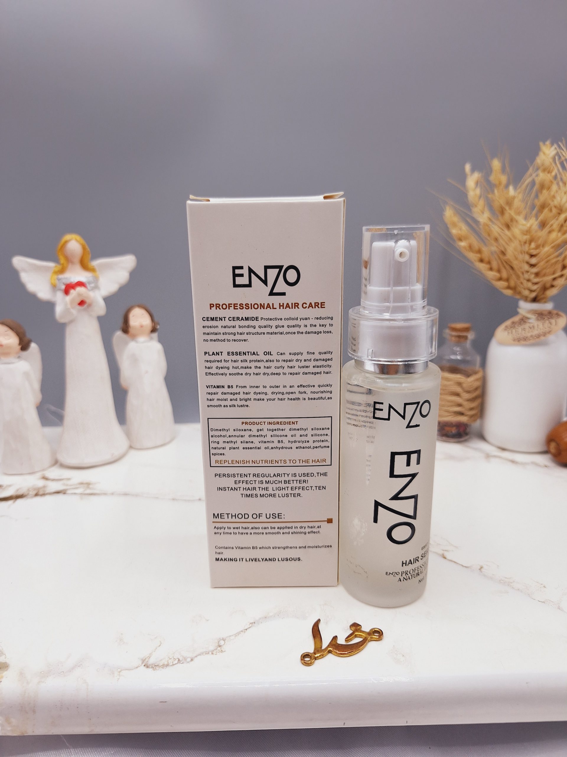 این محصول برای حالت دادن، براق کردن، محافظت از موهای آسیبدیده و جلوگیری از وز شدن موها طراحیشده است و مورداستفاده قرار میگیرد. سرم موی انزو Enzo، حاوی عصاره طبیعی کراتین برزیلی و روغن آرگان بوده که باعث درخشندگی و براق کنندگی مو میشود و در از بین بردن وز خوردگی و ژولیدگی مو و همچنین نرمی و لطافت مو و رفع خشکی و زبری آن نقش بسیار موثری دارد.