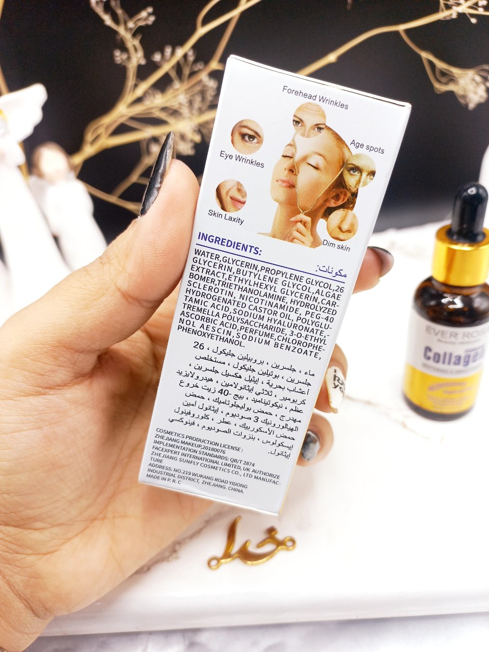 کلاژن یک پروتِئین ضروری است که به جوانی و استحکام پوست و همچنین کاهش چین وچروک که با کمک پپتید ها در این سرم صورت می گیرد. گاهی با افزایش سن، تولید کلاژن در بدن کاهش می یابد ،که می تواند منجر به چین و چروک، افتادگی پوست و سایر علائم پیری شود.این سرم می تواند به پیری پوست کمک کند. این کار با تحریک تولید کلاژن درپوست انجام می شود. سرم کلاژن همچنین می تواند به آبرسانی پوست کمک کند و آن را نرم و لطیف نگه دارد.