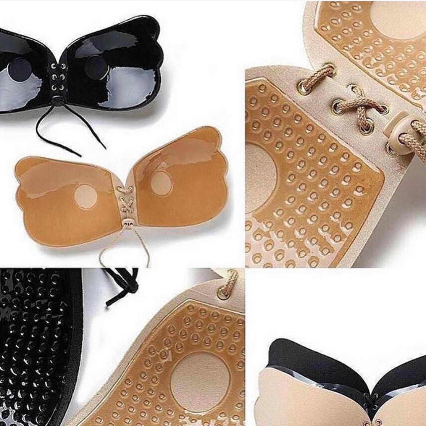 سوتین پروانه ای مناسب برای زیر لباس های باز و لباس های مجلسی که میخواین بند سوتین مشخص نباشه👌 پشت کار چسبی هست و روی سینه میچسبه وسط سینه بندی هست و با جمع کردن بندها سینه هارو میتونین بهم نزدیکتر کنین و خط سینه ایجاد بشه🤌😉