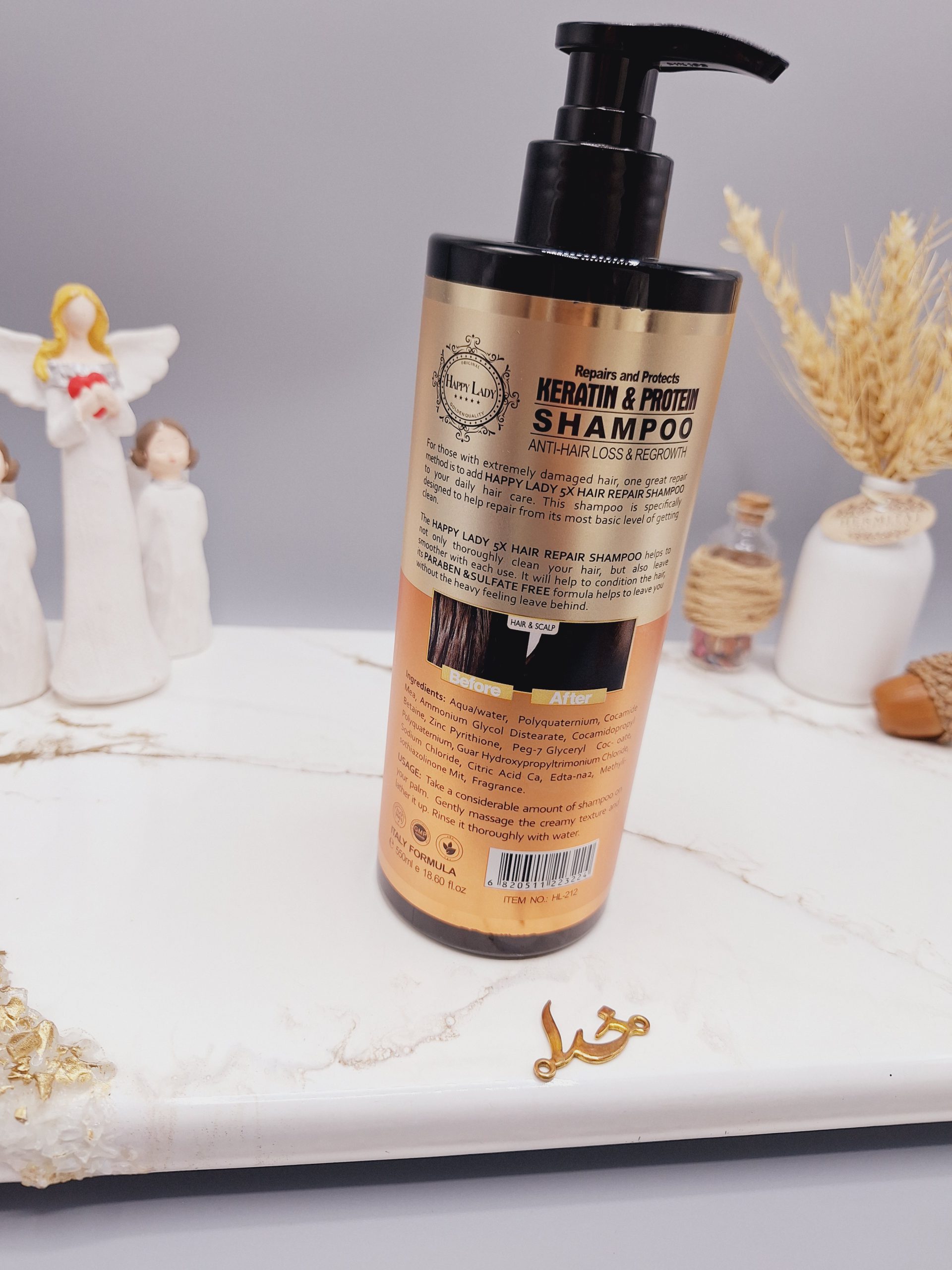 شامپو هپی لیدی فاقد سولفات و پارابن بوده و حاوی کراتین، پروتئین، روغن آرگان، کلاژن و خاویار است. این شامپو مو ضمن تمیز کردن مو و پوست سر از آلودگی و چربی ها، موها را آبرسانی و تغذیه کرده و سبب ترمیم آسیب های مو و افزیش نرمی و درخشندگی آن می شود. شامپو بدون هپی لیدی از ریزش موها جلوگیری کرده و محرک رشد موهای جدید است.