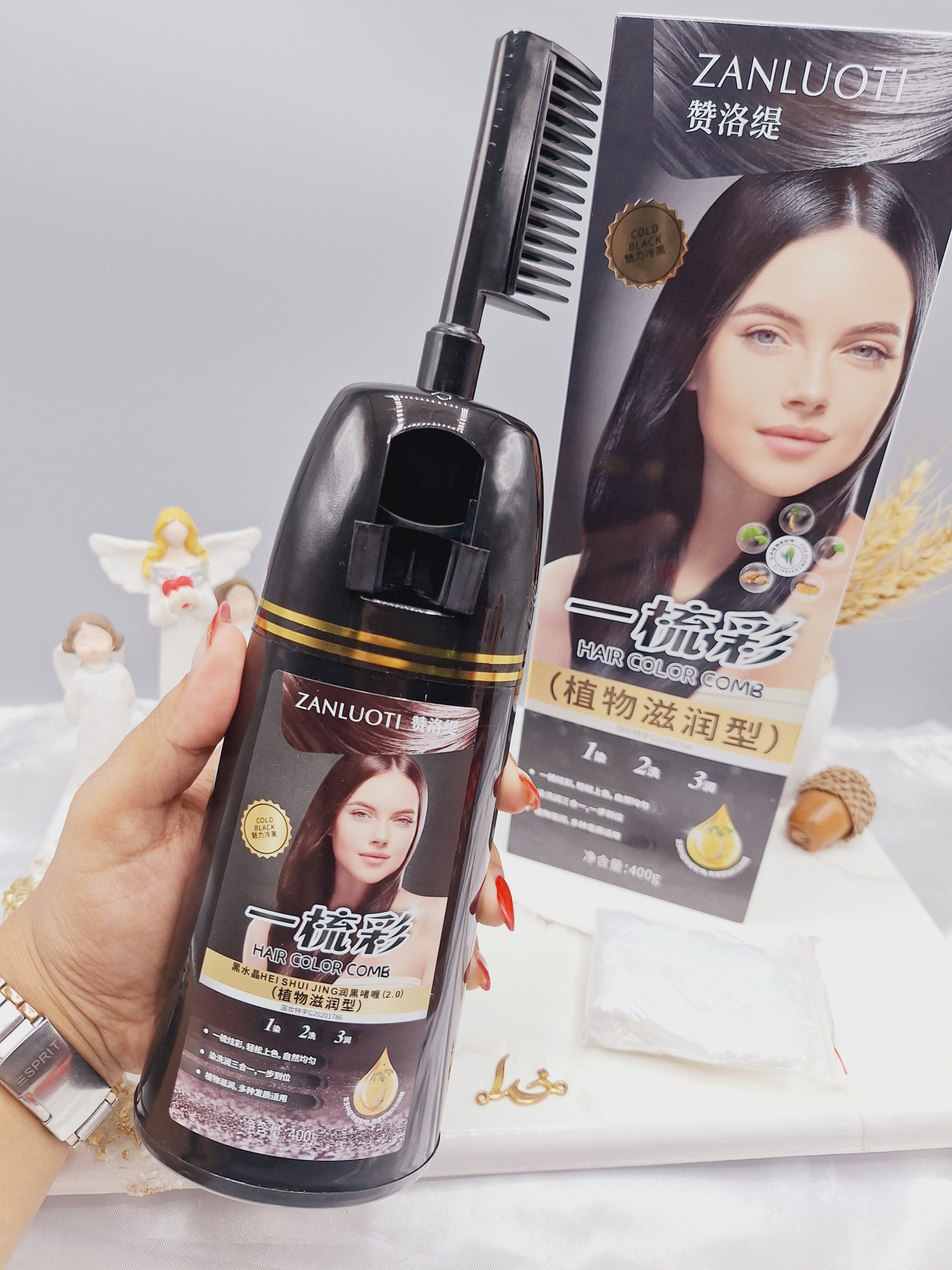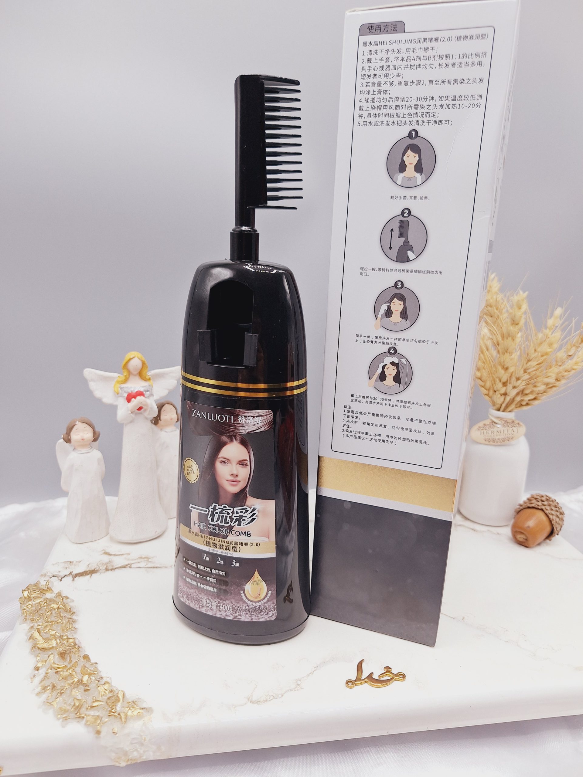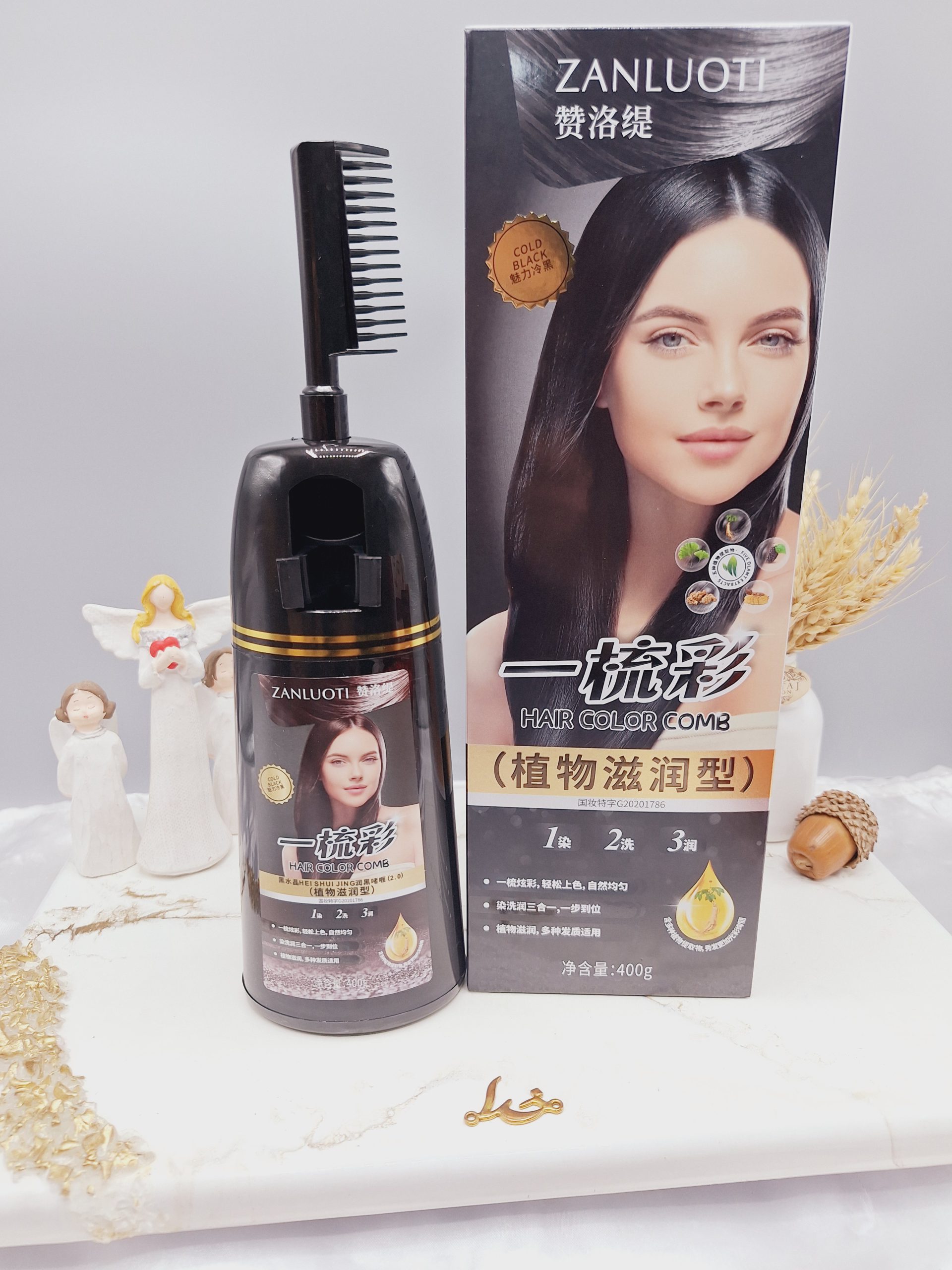 شانه رنگ مو (رنگ سیاه) حجم 400 گرم کاملا طبیعی و گیاهی برند ZANLUOTI برند 100251 دارای طبع گرم، بدون آمونیاک و مواد شیمیایی و کاملا طبیعی است.