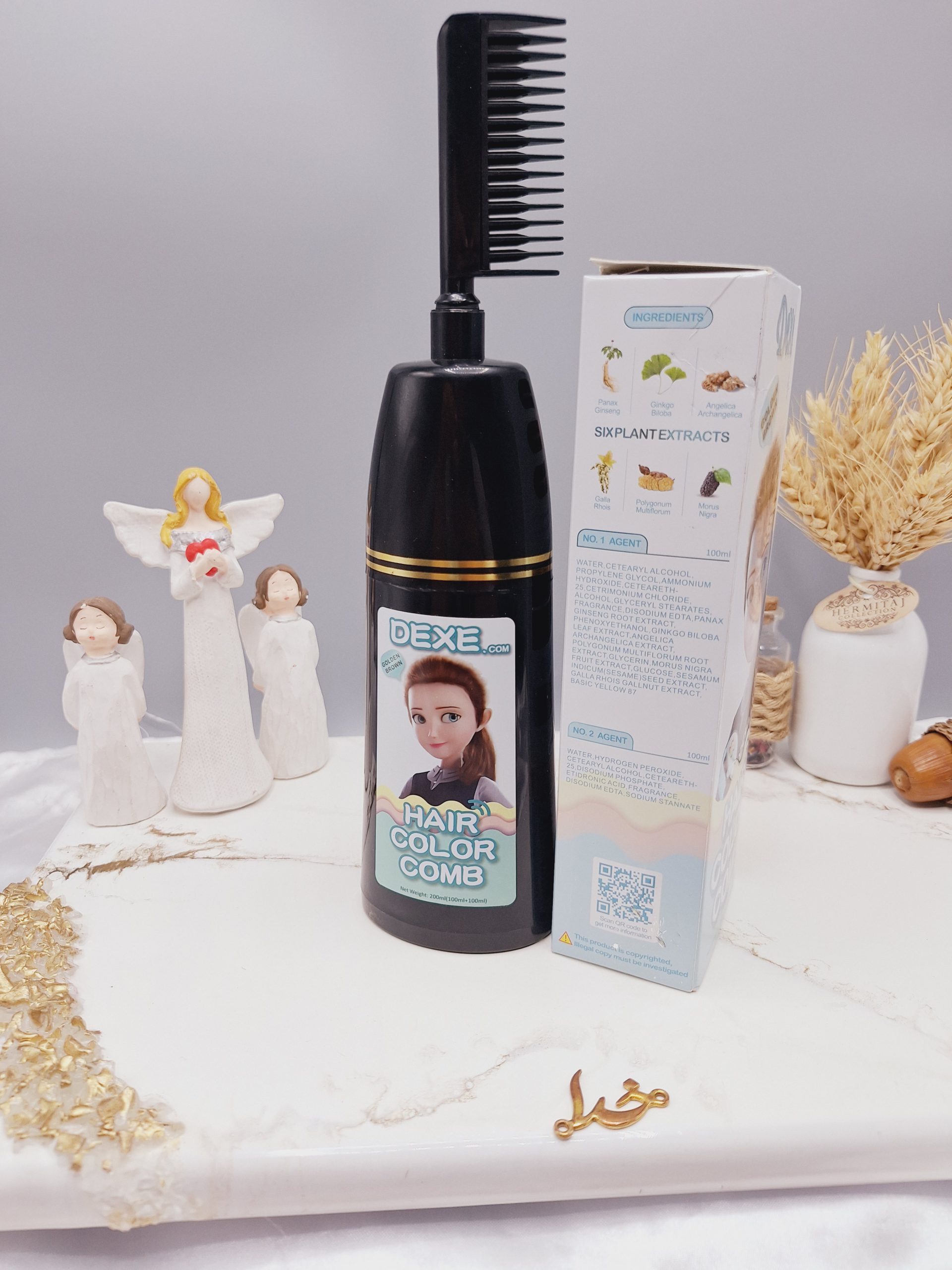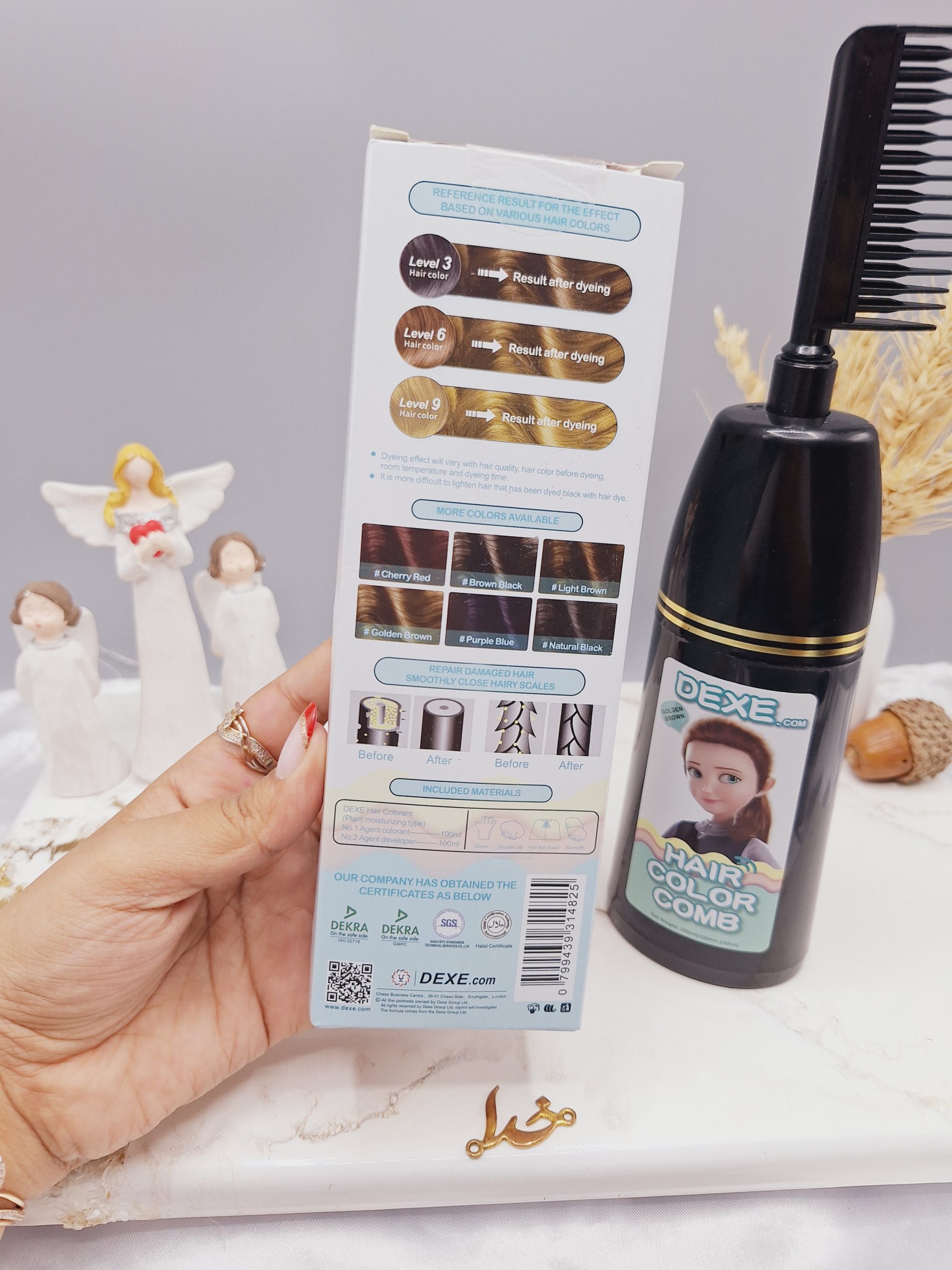 ویژگی های شانه رنگ مو رنگ قهوه ای طلایی برند دکسی Dexe کد 4825