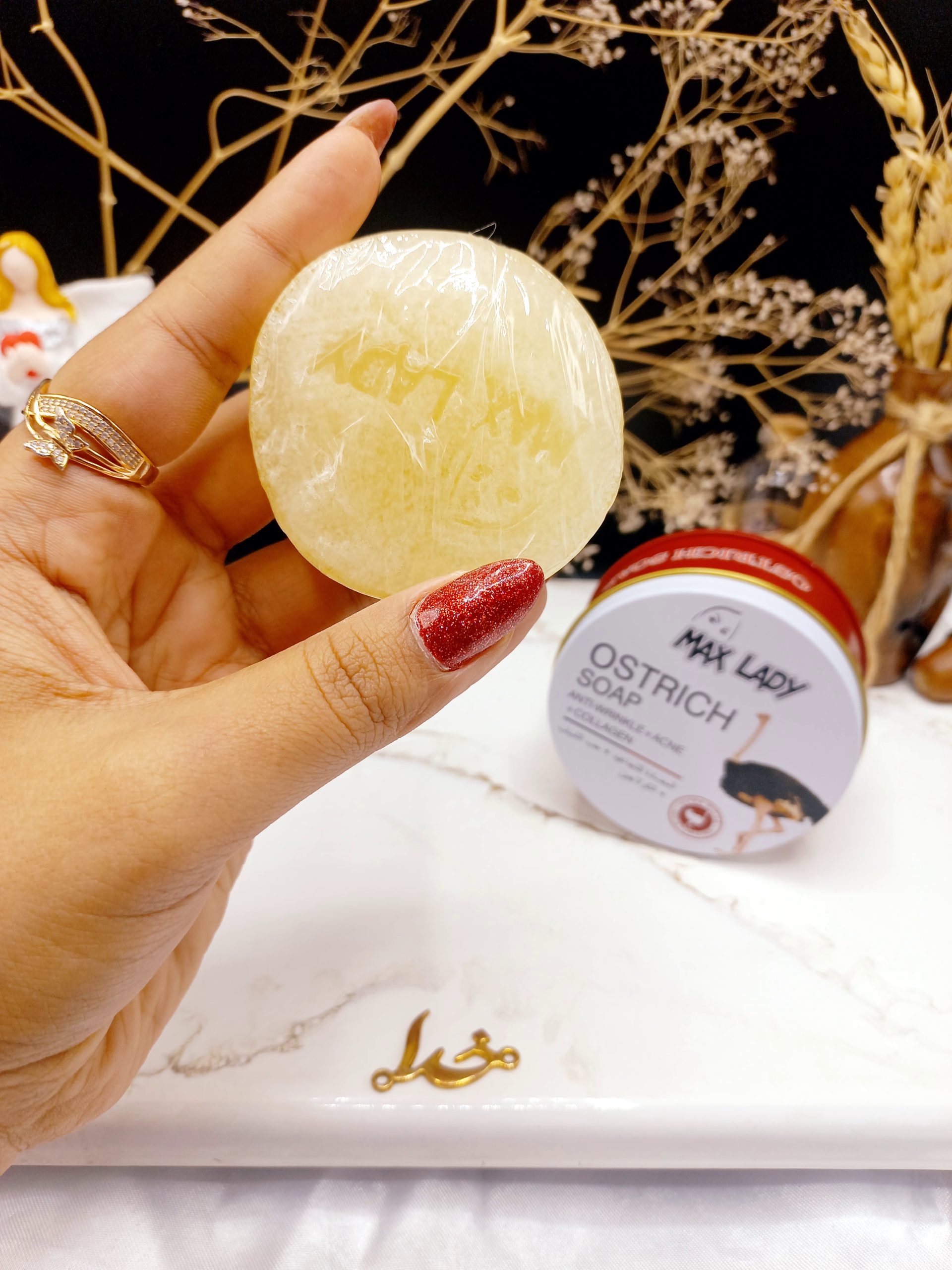 صابون شتر مرغ قوطی فلزی برند مکس لیدی MAX LADY کد 14001 دارای خاصیت ضد جوش و ضد چروک همراه کلاژن میباشد ویژگی اصلی این صابون خارق العاده کم ن مشکلات پوستی و ضد باکتری بوده و چروک های پوست را کاملا می کند و جوش صورت را کاهش میدهد