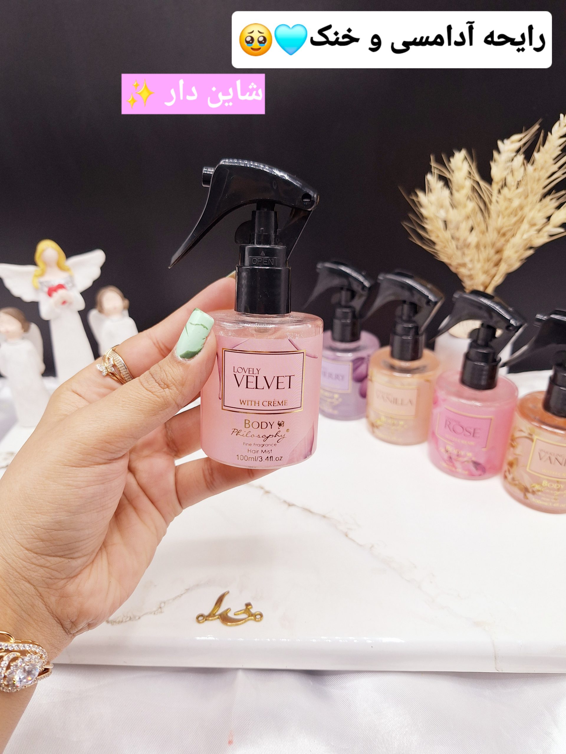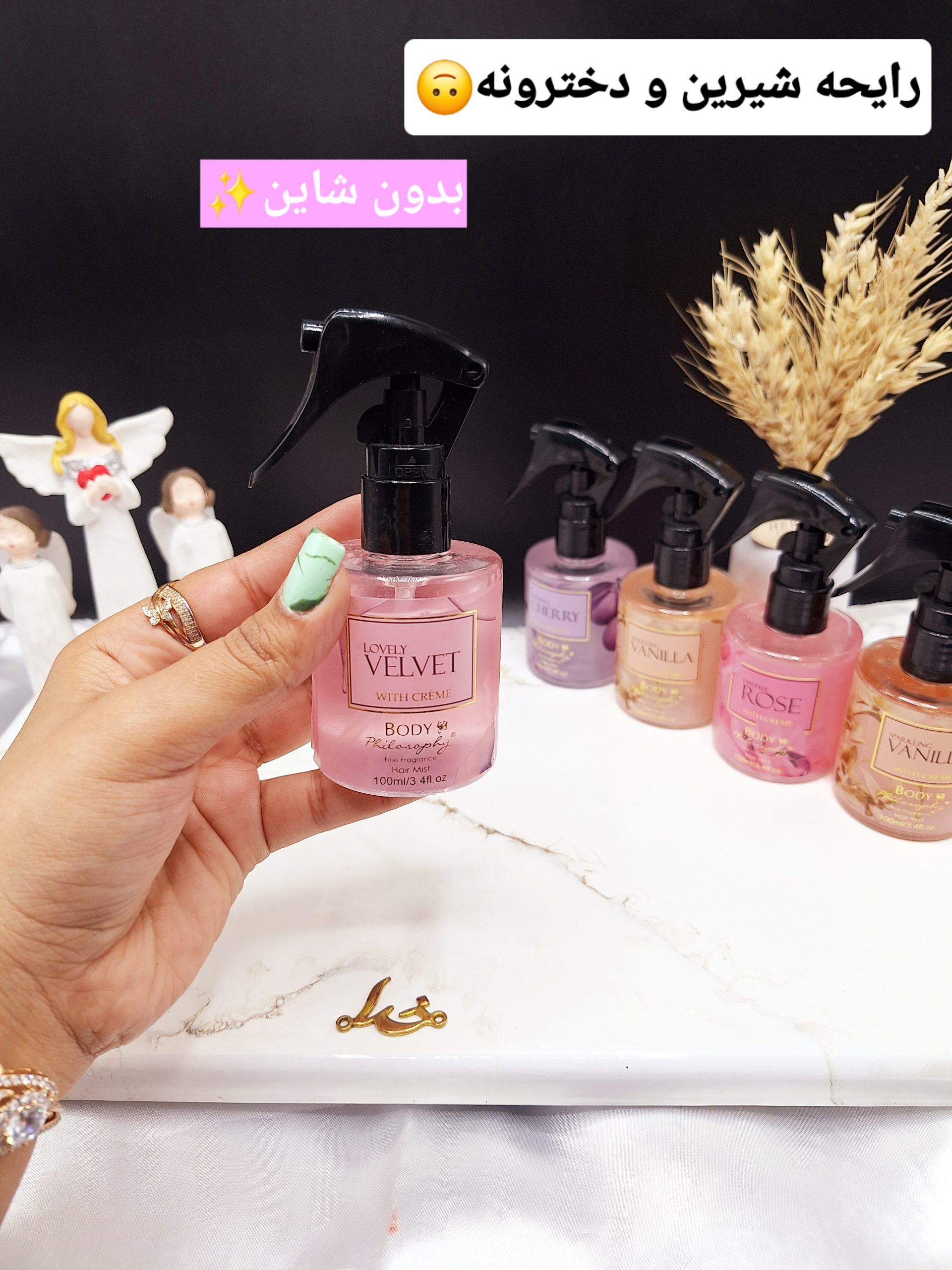 عطر مو BODY Philosophy شما کمک میکند با حرکت دادن موهای خود، رایحه ای دلپذیر را در هوا پخش کنید. برخی از برندهای معروف دنیای عطر، عطرهای با رایحه های آشنا، اما مخصوص مو تولید می کنند. عطر مو DEAR BODY در چهار رایحه زیر عطری دلپذیر به موهای شما داده و بر جذابیتتان میافزاید.
